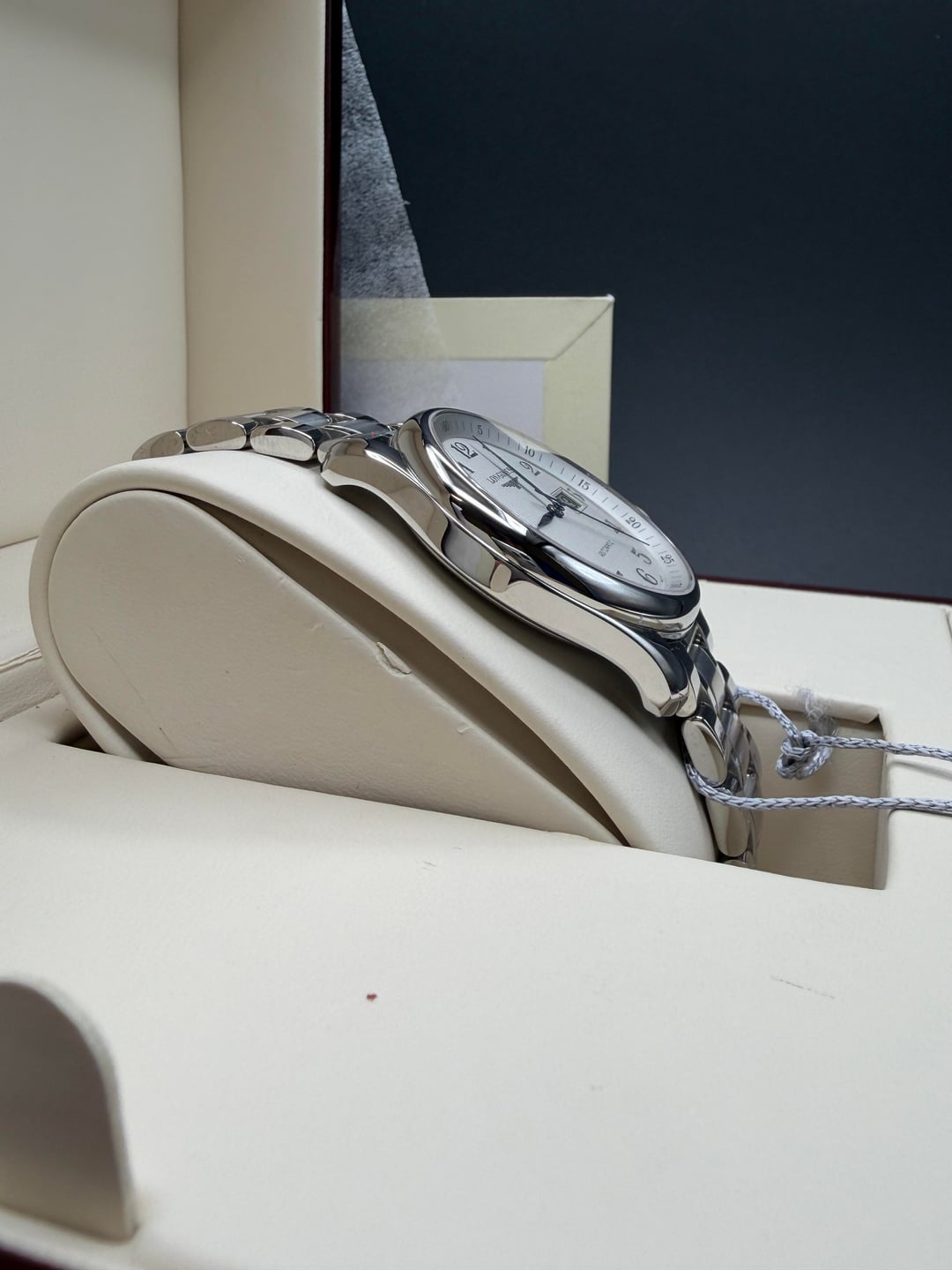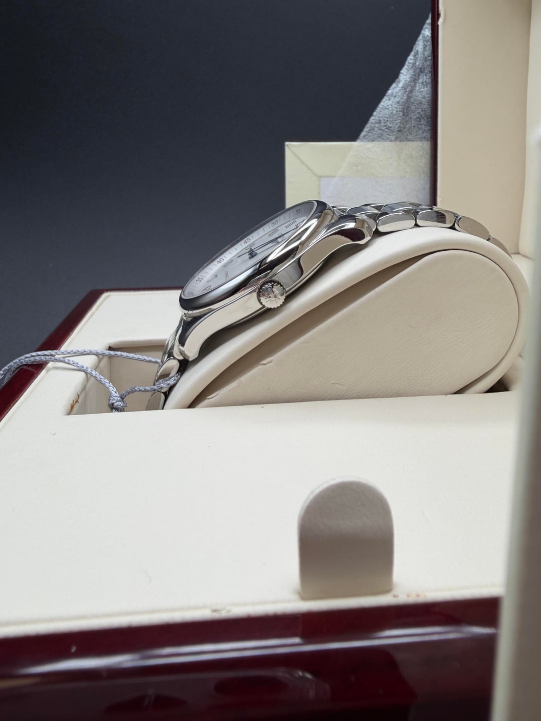 Elegant and technically refined Longines Master Collection Big Date, reference L2.648.4.78.6. The watch is in near mint / like-new condition with no noticeable signs of wear. Stainless steel case measuring approx. 40 mm. Silver dial with elegant blue steel hands, giving it a classic and timeless look. Powered by the automatic Longines Caliber L607.2 (based on ETA 2896). Features hours, minutes, seconds, and a prominent Big Date complication. Sapphire crystal and exhibition caseback with view of the movement. Full set including the watch, original Longines box, manual, and blank warranty card. Price: €1100 **Price: €1050** Payment via PayPal Friends & Family preferred. For buyers who want additional protection, the sale can also be completed via Chrono24. Located in Germany