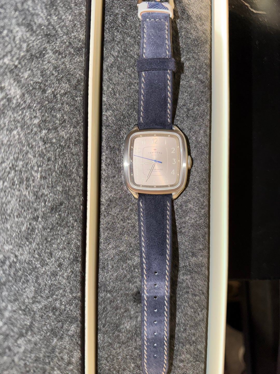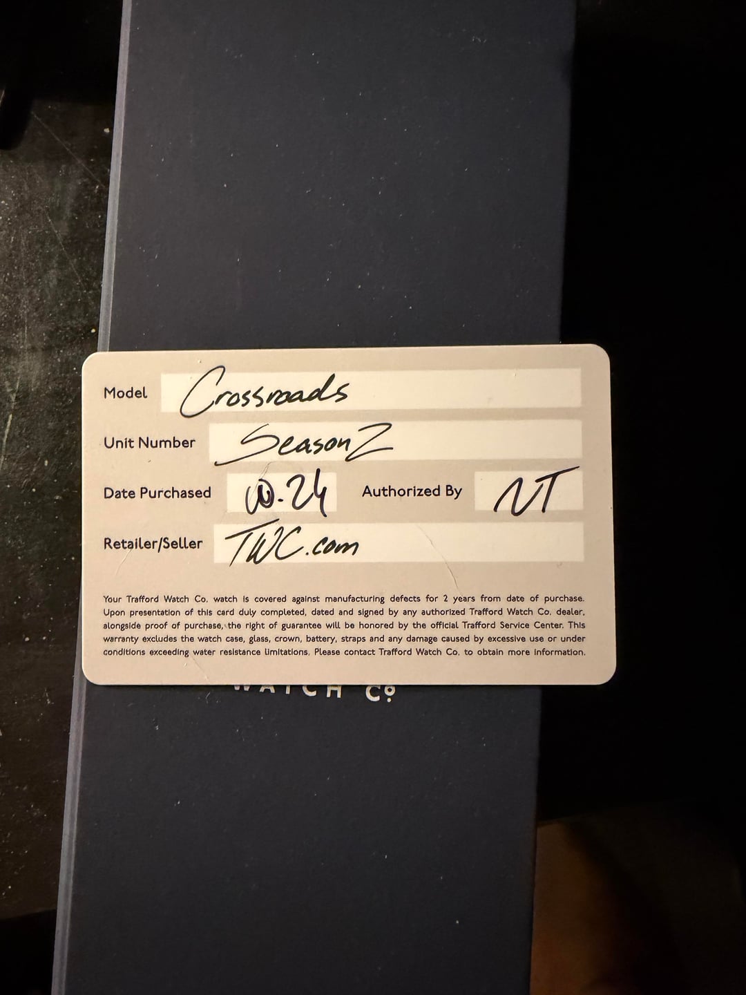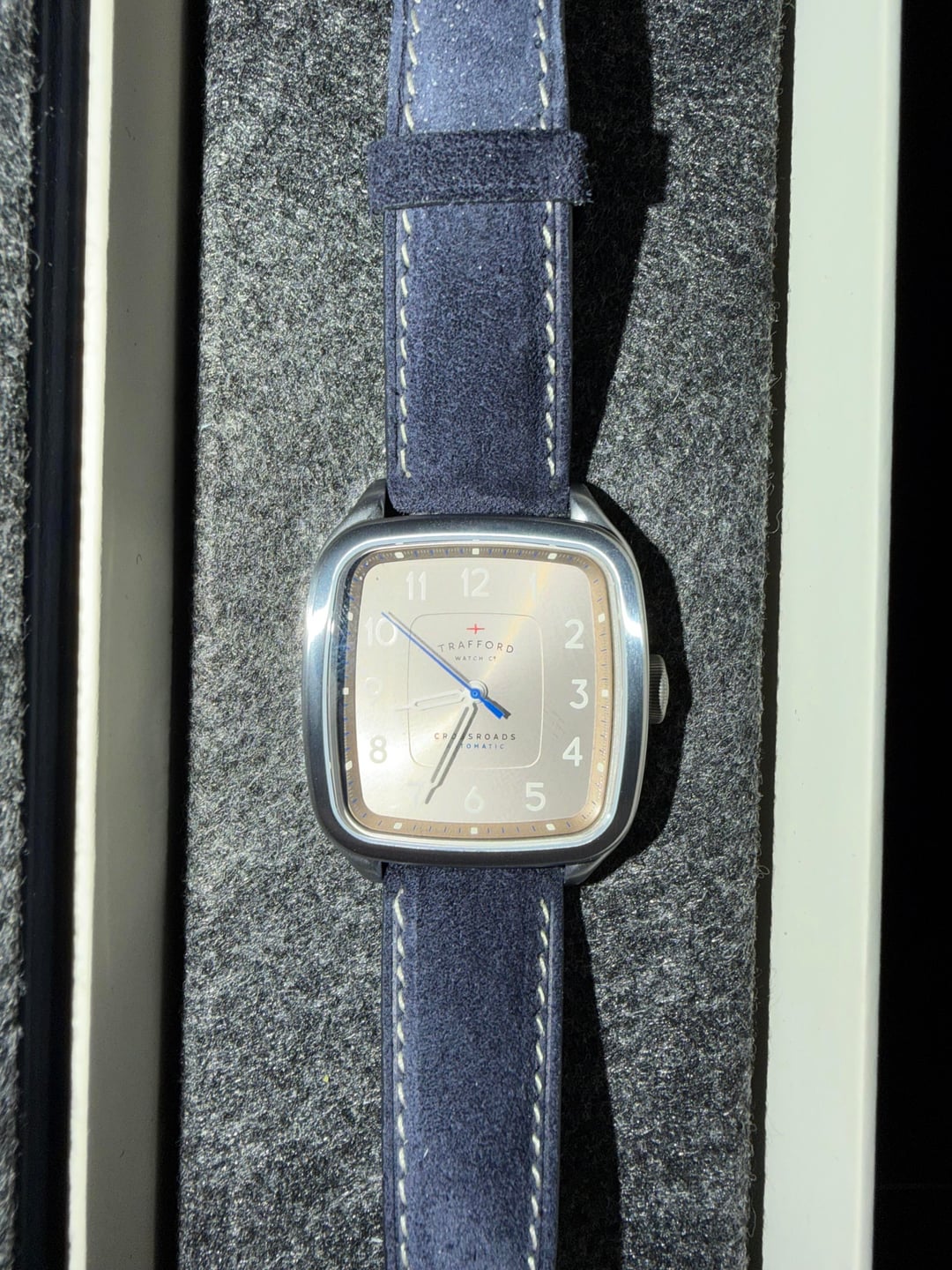Like New Crossroads. Was not wearing this frequently and decided to sell to someone who would appreciate it more. $725 + Shipping ($25) Full kit. The Trafford Watch Co Crossroads Season 2 Watch Limestone Full Kit is a stylish unisex wristwatch with a mechanical automatic movement. This watch features a silver stainless steel case with a blue leather band, suitable for casual wear. With a water resistance of 50m and sapphire crystal display, it is both functional and durable. The watch comes with papers, original box/packaging, and a manual/booklet, making it a complete package for any watch enthusiast.