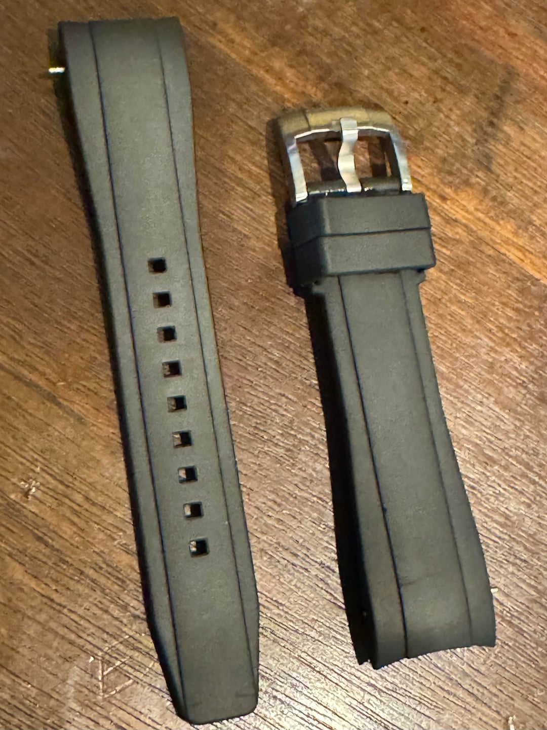 Up for sale is a curved-end rubber strap made by Everest Bands specifically for the Tudor Black Bay GMT. It also fits the Black Bay Chronograph, and was worn by me on both watches. The watches have been sold but the strap is in fantastic shape, with little to no signs of wear on the rubber and minimal if any signs of wear on the buckle. More info can be found here: [Everest Bands ](https://www.everestbands.com/products/curved-end-rubber-strap-for-tudor-black-bay-gmt-m79830rb-tang?variant=32459784585278&country=US¤cy=USD&utm_medium=product_sync&utm_source=google&utm_content=sag_organic&utm_campaign=sag_organic&nnd=CjwKCAiAjojLBhAlEiwAcjhrDn2wuN6WuHLiaMXPwl1nfAZ4IGCxOpyIoD1q24bJQ1izKZk4IWbNBBoC_mUQAvD_BwE&utm_source=google&utm_medium=cpc&utm_campaign=Shopping%20%7C%20USA%20%7C%20All%20Products%202&utm_id=23235454005&gad_source=1&gad_campaignid=23235454005&gbraid=0AAAAADfjviWCvRLnwbD_6WrN9Frqv0xS1&gclid=CjwKCAiAjojLBhAlEiwAcjhrDn2wuN6WuHLiaMXPwl1nfAZ4IGCxOpyIoD1q24bJQ1izKZk4IWbNBBoC_mUQAvD_BwE) Selling for $180, shipping to US buyers included