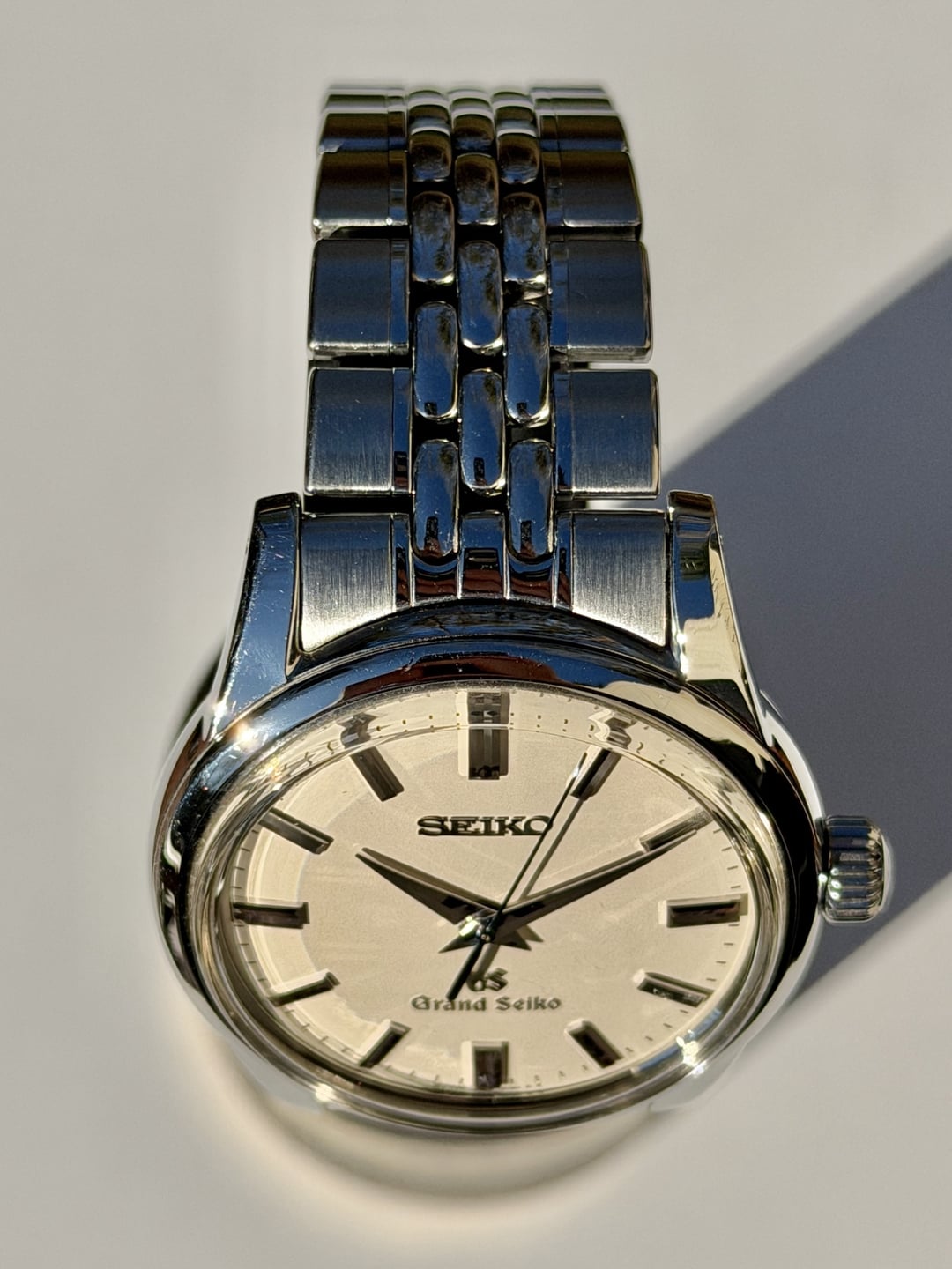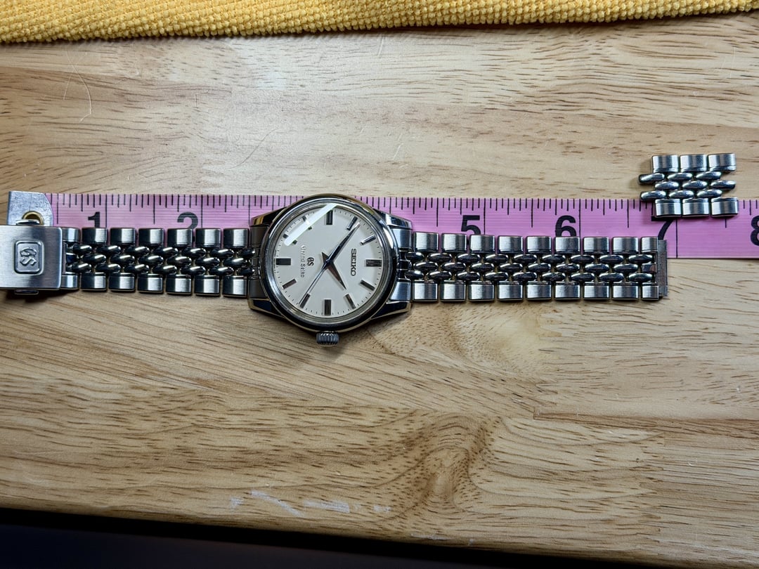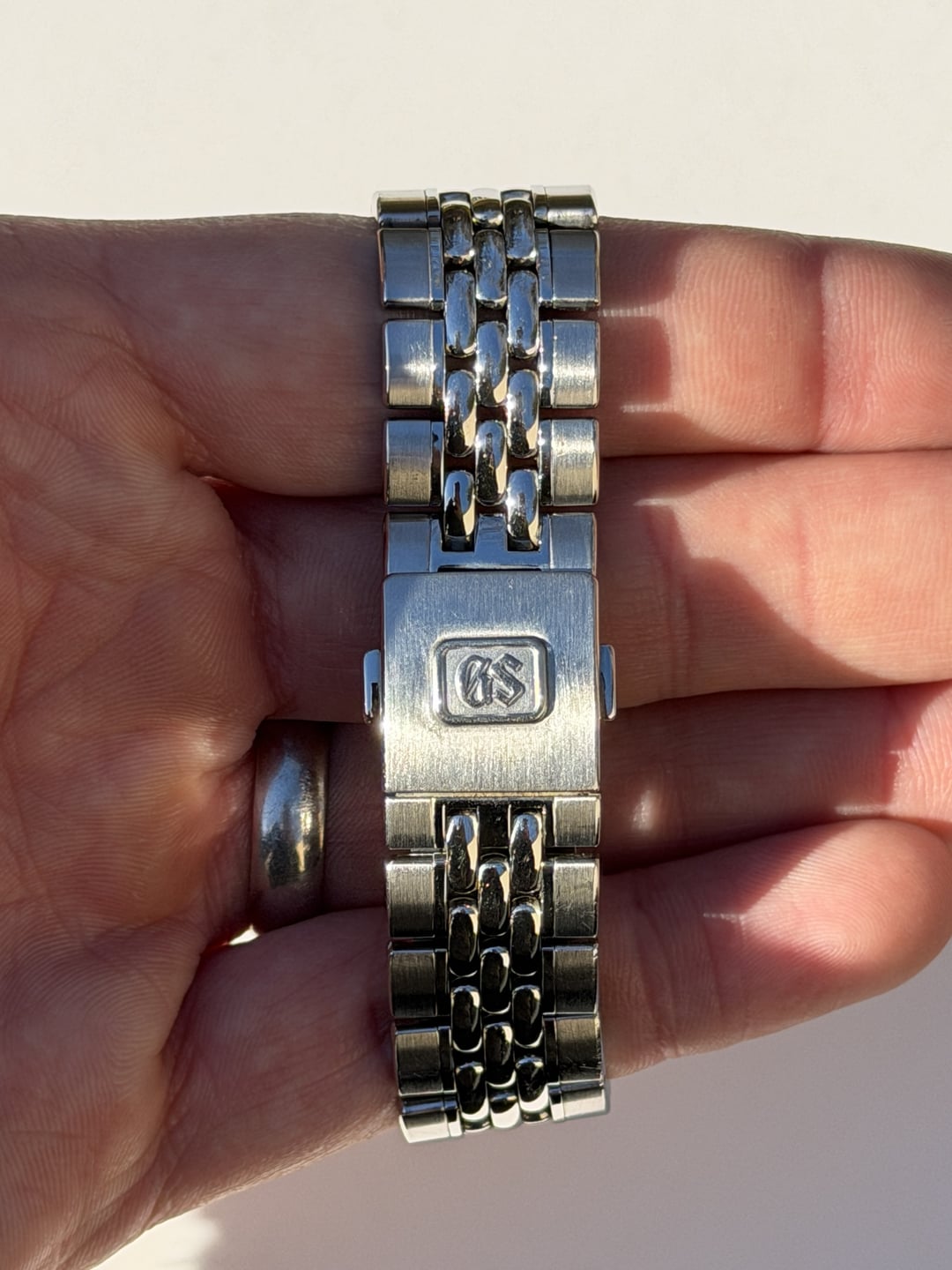 # SBGW005 Video: [https://youtube.com/shorts/hvnY2GpdSW4?feature=share](https://youtube.com/shorts/hvnY2GpdSW4?feature=share) For sale is this beautiful Grand Seiko SBGW005 manual wind with cream dial and beads of rice bracelet. This piece is something like a slightly more casual SBGW001/SBGW231 with its blued seconds hand and bracelet. The Elegance case is fully Zaratsu polished and so are the hands and dial markers, and they sparkle under light reflected by the high "top hat" crystal. The case is a very well proportioned 37.5mm in diameter without the crown, with a 44.3mm lug to lug lenth and 11.6mm thickness. The lug width is 19mm. This example is in excellent condition and comes with the inner and outer Grand Seiko boxes, GS timing certificate, and guarantee paper. The watch is in excellent running condition per timegrapher (see photos), and bracelet measures just over 7.5" laid flat as shown. **Imgur album:** [https://imgur.com/a/sbgw005-vGMTUfa](https://imgur.com/a/sbgw005-vGMTUfa) **Timestamp**: [https://imgur.com/50pc9l8](https://imgur.com/50pc9l8) I’m asking **$2,595 including fully insured shipping in the US**, paid via wire, Zelle, or Venmo F&F. I am happy to do a video call to show the watch. I will ship internationally and only charge the difference in cost on top (Wise accepted for international payments). I’m not interested in trades. Feel free to reach out with any questions!