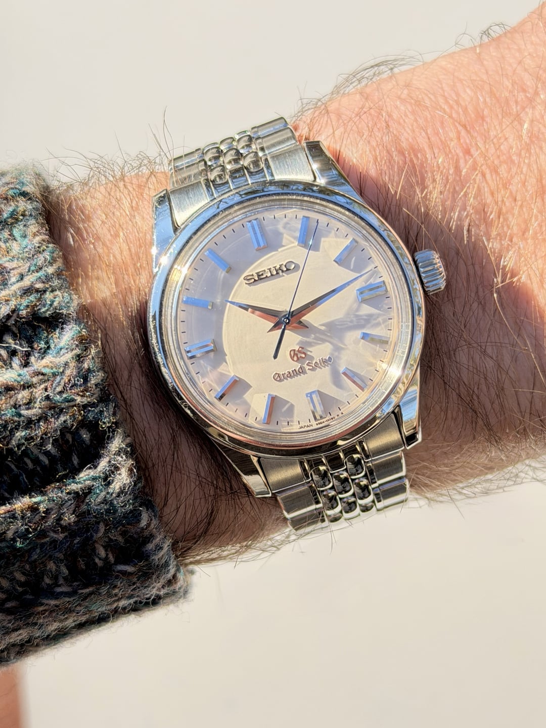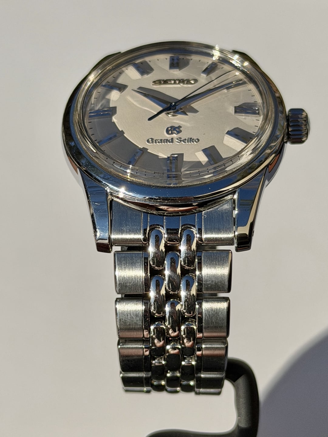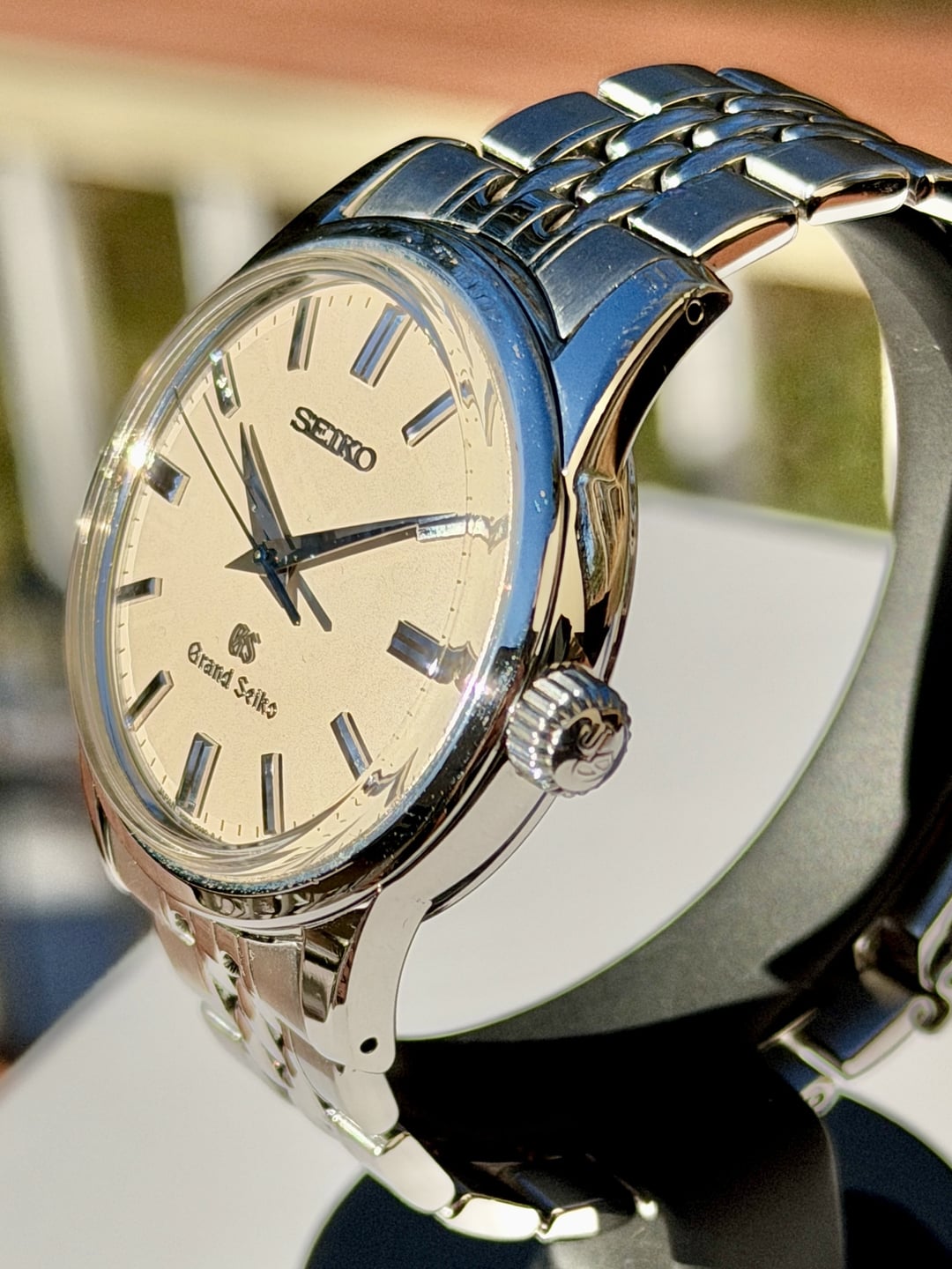 # SBGW005 Video: [https://youtube.com/shorts/hvnY2GpdSW4?feature=share](https://youtube.com/shorts/hvnY2GpdSW4?feature=share) For sale is this beautiful Grand Seiko SBGW005 manual wind with cream dial and beads of rice bracelet. This piece is something like a slightly more casual SBGW001/SBGW231 with its blued seconds hand and bracelet. The Elegance case is fully Zaratsu polished and so are the hands and dial markers, and they sparkle under light reflected by the high "top hat" crystal. The case is a very well proportioned 37.5mm in diameter without the crown, with a 44.3mm lug to lug lenth and 11.6mm thickness. The lug width is 19mm. This example is in excellent condition and comes with the inner and outer Grand Seiko boxes, GS timing certificate, and guarantee paper. The watch is in excellent running condition per timegrapher (see photos), and bracelet measures just over 7.5" laid flat as shown. **Imgur album:** [https://imgur.com/a/sbgw005-vGMTUfa](https://imgur.com/a/sbgw005-vGMTUfa) **Timestamp**: [https://imgur.com/50pc9l8](https://imgur.com/50pc9l8) I’m asking **$2,595 including fully insured shipping in the US**, paid via wire, Zelle, or Venmo F&F. I am happy to do a video call to show the watch. I will ship internationally and only charge the difference in cost on top (Wise accepted for international payments). I’m not interested in trades. Feel free to reach out with any questions!