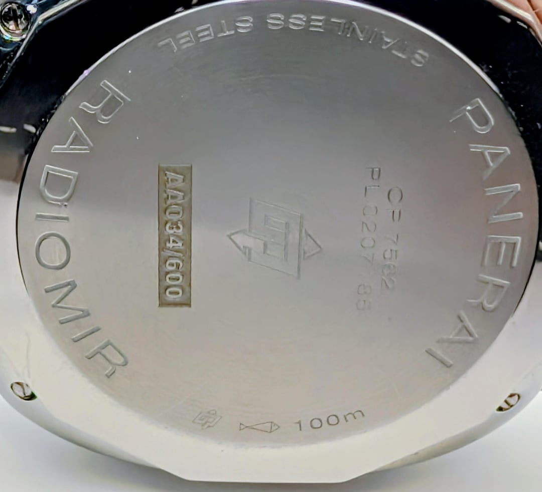 A Radiomir classic, this Pam fits any style and any situation. Armed with amazing lume and extra goodies, this particular option was purchased in late, 2025, and offers all sorts of advantages. Features: 45mm 100m water resistance Sunburst dial with Arabic numerals Screwdown crown Includes: Outer box, travel case Extra strap (with tags, priced $400) Hang tags Manual, warranty card (open date) Warranty confirmed through 9/2033 Original purchase receipt available upon request Condition: Dial and crystal both clean Caseback has light scratches Case has light scratches Strap and clasp are in mint condition Second strap in mint condition I am a verified seller across several platforms. Please reach out with any questions or offers. Florida residents subject to 6.5% sales tax Selling for: $3999+ label