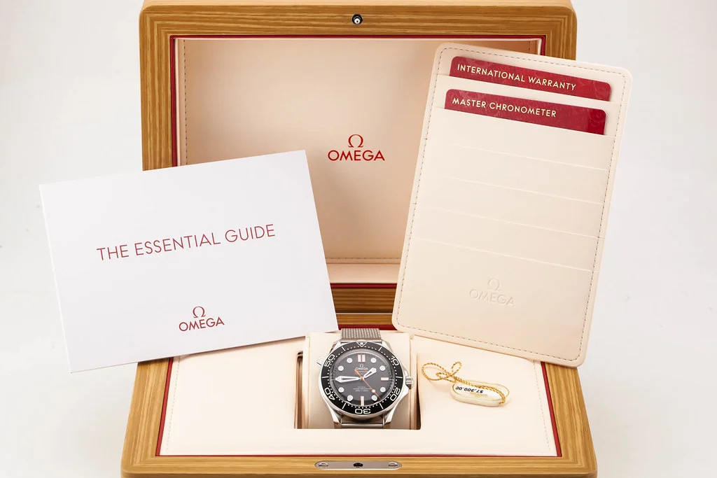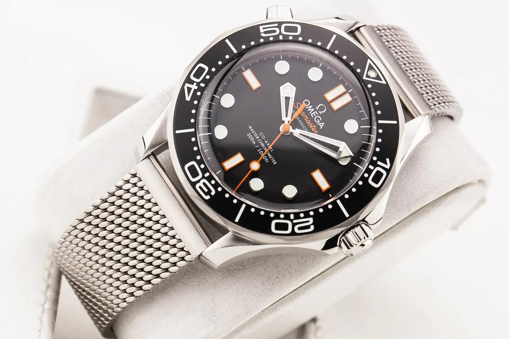 Up for sale is a brand new Omega Seamaster 300 42mm Black Aluminum Dial & Bezel with Orange Accents on Mesh Bracelet, reference # 210.30.42.20.01.018. It comes complete with all boxes, papers, booklet, hang tag and Omega Warranty Card dated November 2025.
