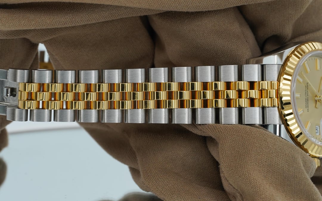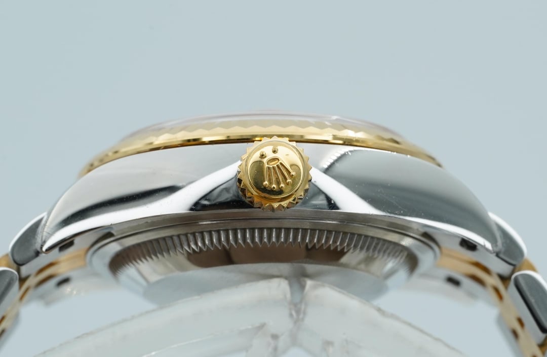 | Rolex 36mm DateJust Two Tone 18K Gold / Steel Watch w/Ivory Pyramid Dial (16013) rtuccio (4215) |