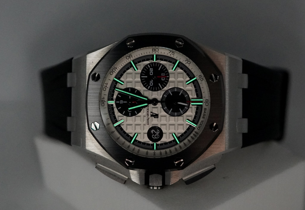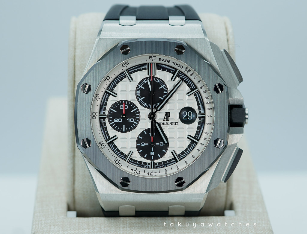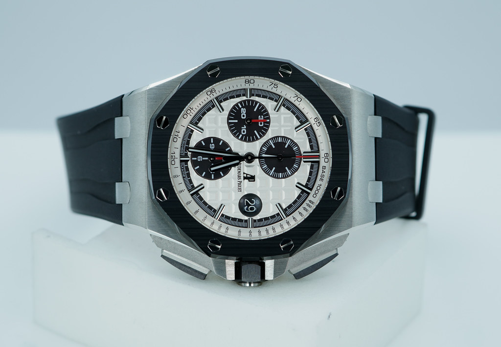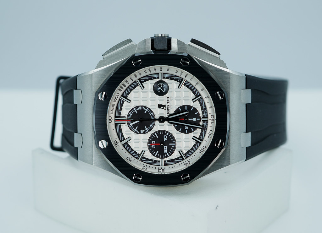 Hi, Selling An Excellent Condition & Very Beautiful 44mm Audemars Piguet Royal Oak Offshore Chronograph Stainless Steel with Black Ceramic Bezel & White Panda Dial. It's on Black Rubber Strap with Tang Buckle. Purchased from Audemars Piguet USA Authorized Dealer in 09.2014. The Watch had Full Services by APSC on 03.2022. Watch Running Excellent with Non Issues. Full Set.