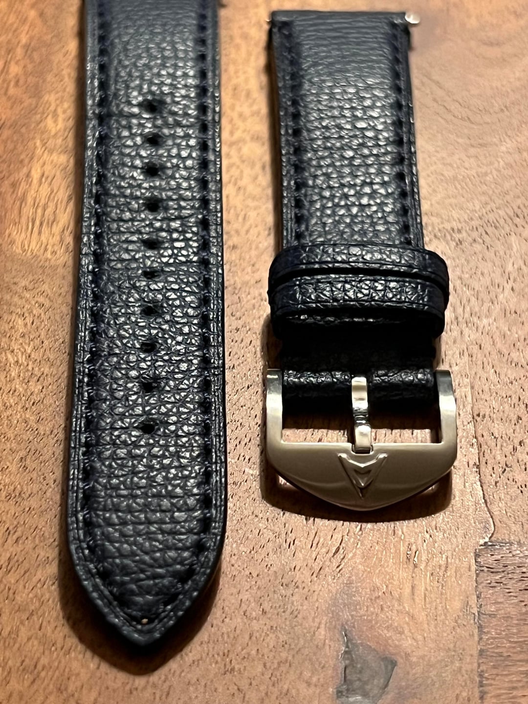 Tried on but never actually worn. Farer's wonderful Granolo leather strap. Beautiful, deep grain to the leather and an excellent pin buckle with brushed and polished finishing. 20mm lugs. $60 shipped CONUS