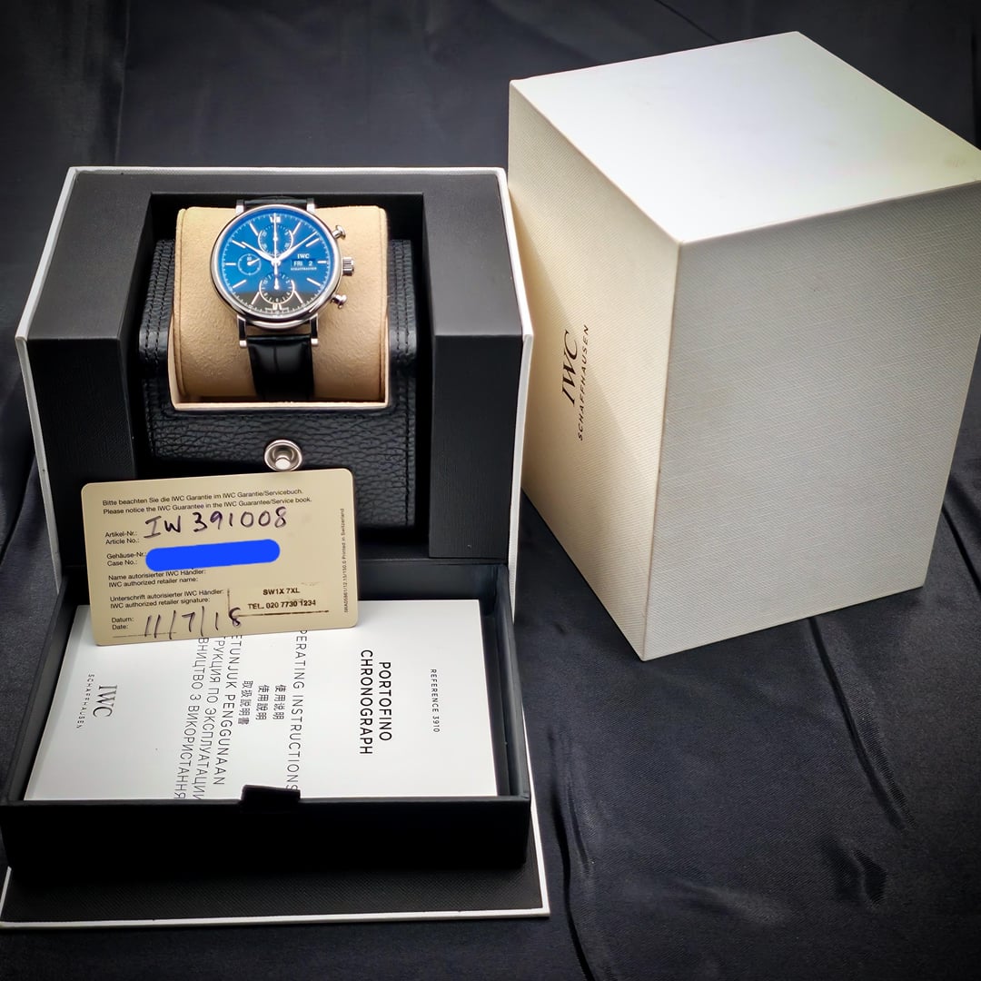 ![Thumbnail [WTS] IWC PORTOFINO CHRONOGRAPH BLACK DIAL - IW391008 - VERY GOOD - BOX/PAPERS 7](https://cdn-cf.watchpatrol.net/120x120/img/full/81f7c73c010bb264700bfd2343955d9d5e8619e6.jpg)