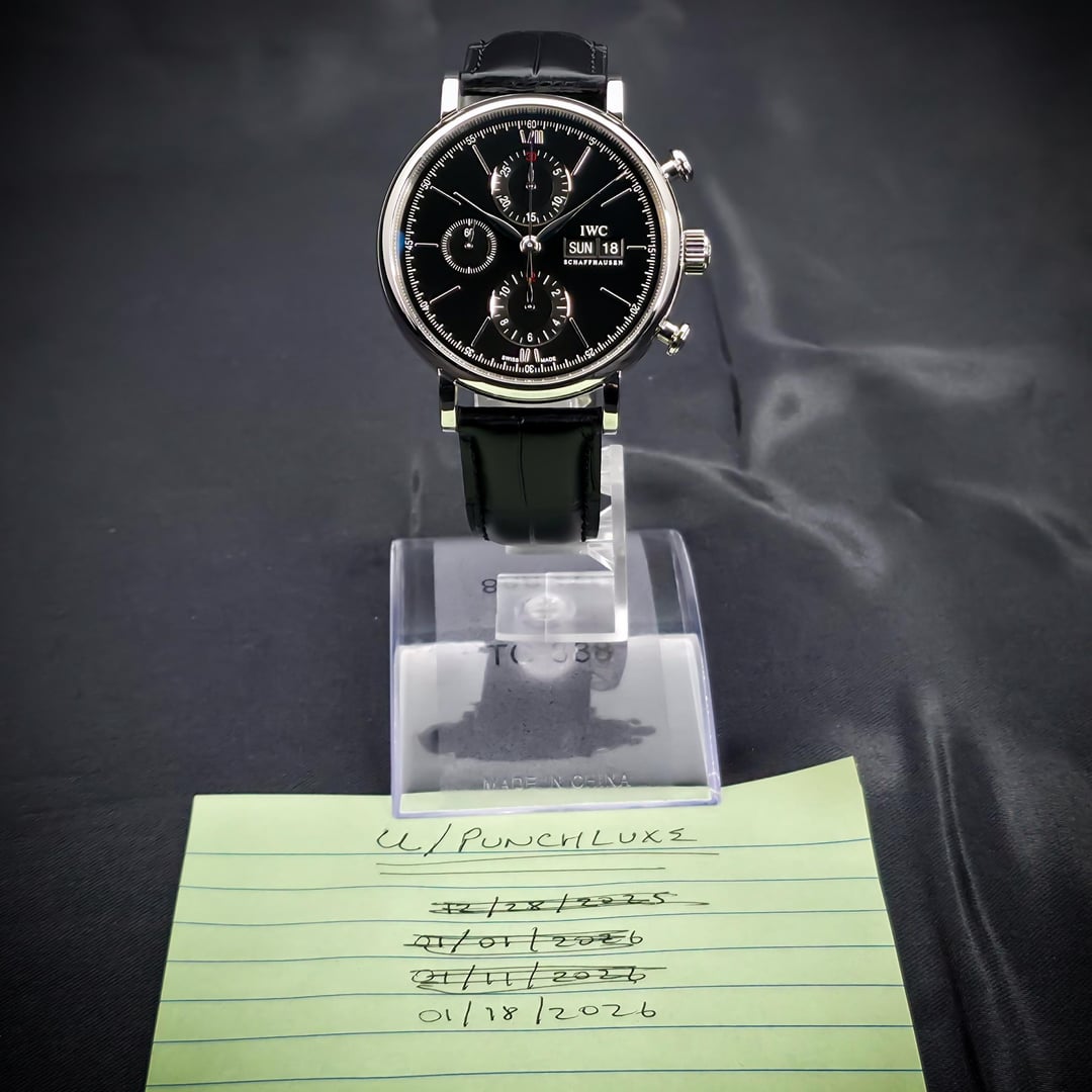 **✅ AVAILABLE NOW ✅** 🕰 **IWC Portofino Chronograph | Ref. IW391008** 🕰 💎 Timeless elegance meets sporty chronograph functionality — featuring a sleek black dial, polished silver bezel, and classic black leather strap, perfect for both formal and casual occasions 💎 **Price: 💰 4,041 shipped** 🔹 C0nditi0n: Very G00d 🔹 Includes: Box & Papers 🔹 Reference Number: IW391008 🔹 Case: 42 Steel 🔹 Dial: Black 🔹 Bezel: Silver 🔹 Bracelet: Black 🔹 Strap: Leather 🔹 Movement: Automatic Chronograph 📍 Location: New York, US 🚀 Shipping: Fully insured overnight ✅ Solid References Available 📲 Follow us on IG: u/punchluxe Trades are welcomed! 📎 Sales tax applies or reseller certificate required