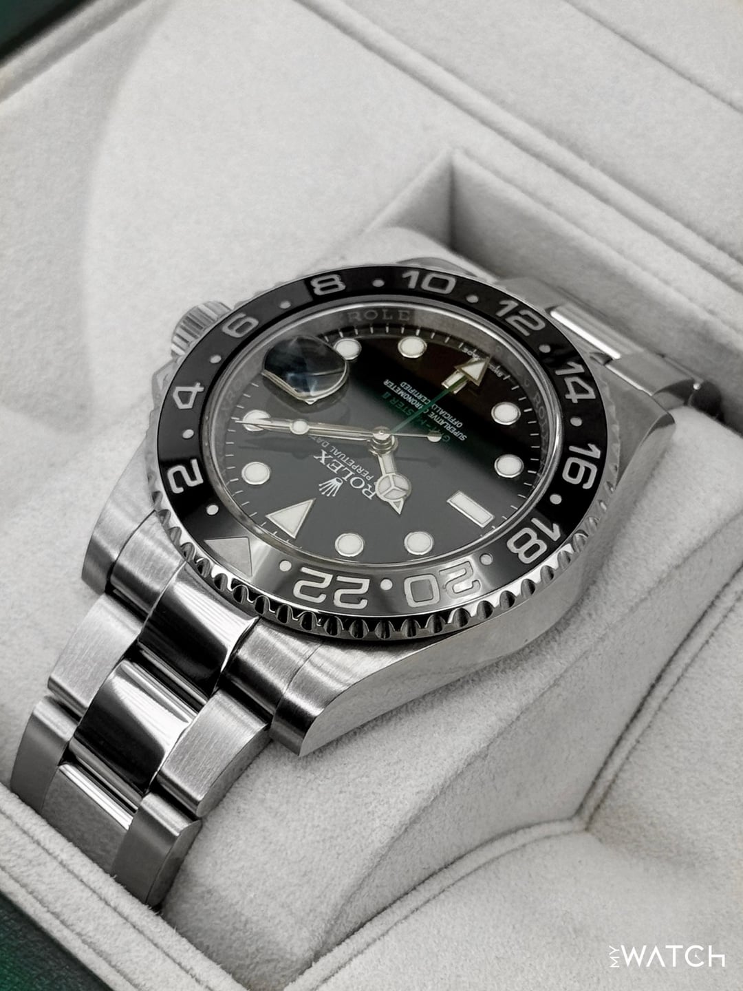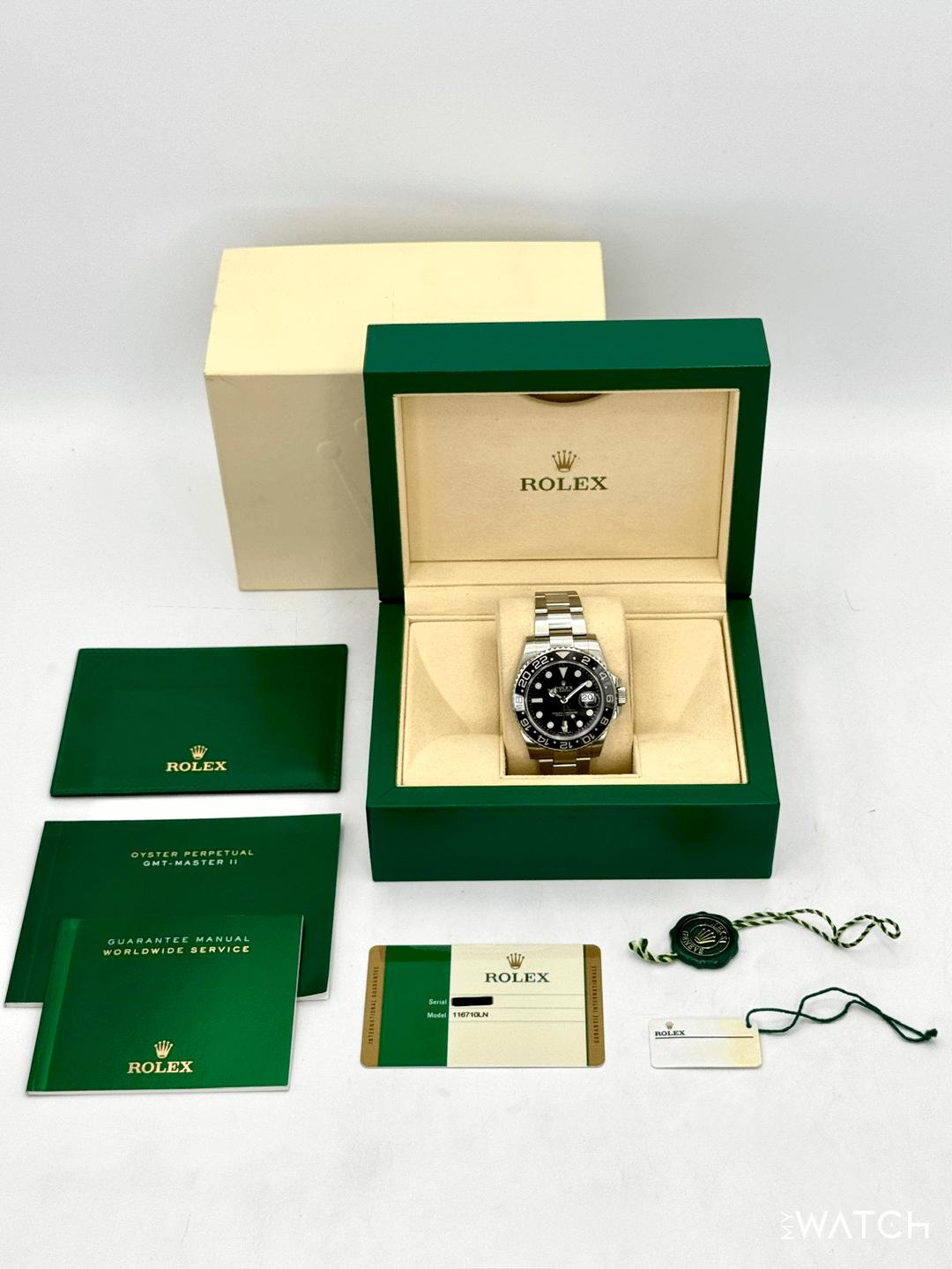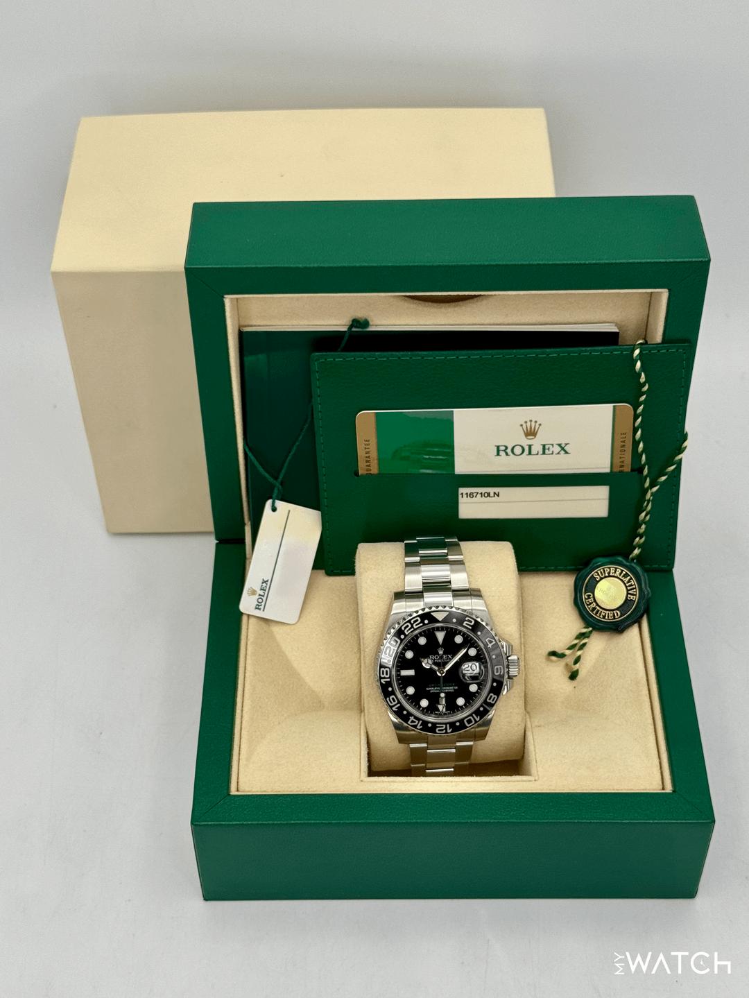 🔵**2016 Rolex GMT-Master II 40mm 116710LN Stainless Steel Black Dial** 🔵**TRADE or SELL us your luxury watch, all brands considered. Message me details.** **Includes the following:** **✔️Original Rolex Double boxed** **✔️Box and Papers - Yes** **✔️Warranty card dated 2016** **✔️Manual and Warranty booklets** **✔️Green and White Hang Tags included** **✔️Size: 8.0inch wrist (Full Links)** **✔️Watch is in excellent overall condition. Please see photos for details.** **✔️**[**Trades**](https://mywatchllc.com/pages/sell-rolex-watch) **welcome** Business Name: **My Watch LLC** LOCATION: Oak Park, Michigan ✔️[MyWatchLLC.com](http://mywatchllc.com/) for current inventory ✔️Google Business Listing [https://g.co/kgs/Cmd6FPW](https://g.co/kgs/Cmd6FPW) ✔️Business Hours M-F 9-6 ✔️Facetime/Video chat/calls welcome to view the watch interested. ✔️Contact: 248-422-0909 via text or call for quickest response. 🟢TERMS: Visit [MyWatchLLC.Com](http://mywatchllc.com/) for payments accepted 🟢REFERENCES/REVIEWS: We are well reviewed on all platforms from google, trust pilot, rolexforums, additionally we have 300+ reference in multiple FaceBook watch groups, reference checks welcome. 🟢SHIPPING: If you are not local, we offer Fully Insured FedEx overnight shipping in the USA for a fee. International shipping available. [https://mywatchllc.com/products/2016-rolex-gmt-master-ii-40mm-116710ln-stainless-steel-black-dial-3](https://mywatchllc.com/products/2016-rolex-gmt-master-ii-40mm-116710ln-stainless-steel-black-dial-3)