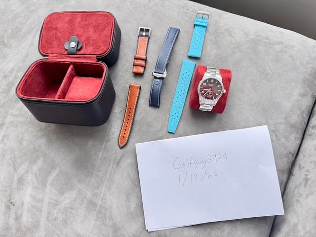 Selling a Nomos Sport Neomatik 39 - Tabac Working great and dated around end of 2023. Comes with a dual watch case, a number of straps including a 19mm Artem, 20mm brown strap, 22mm blue (which doesn't fit this watch but it is included). I am asking $1799 shipped CONUS only via PayPal F&F or Zelle shipping from Connecticut. NO TRADES