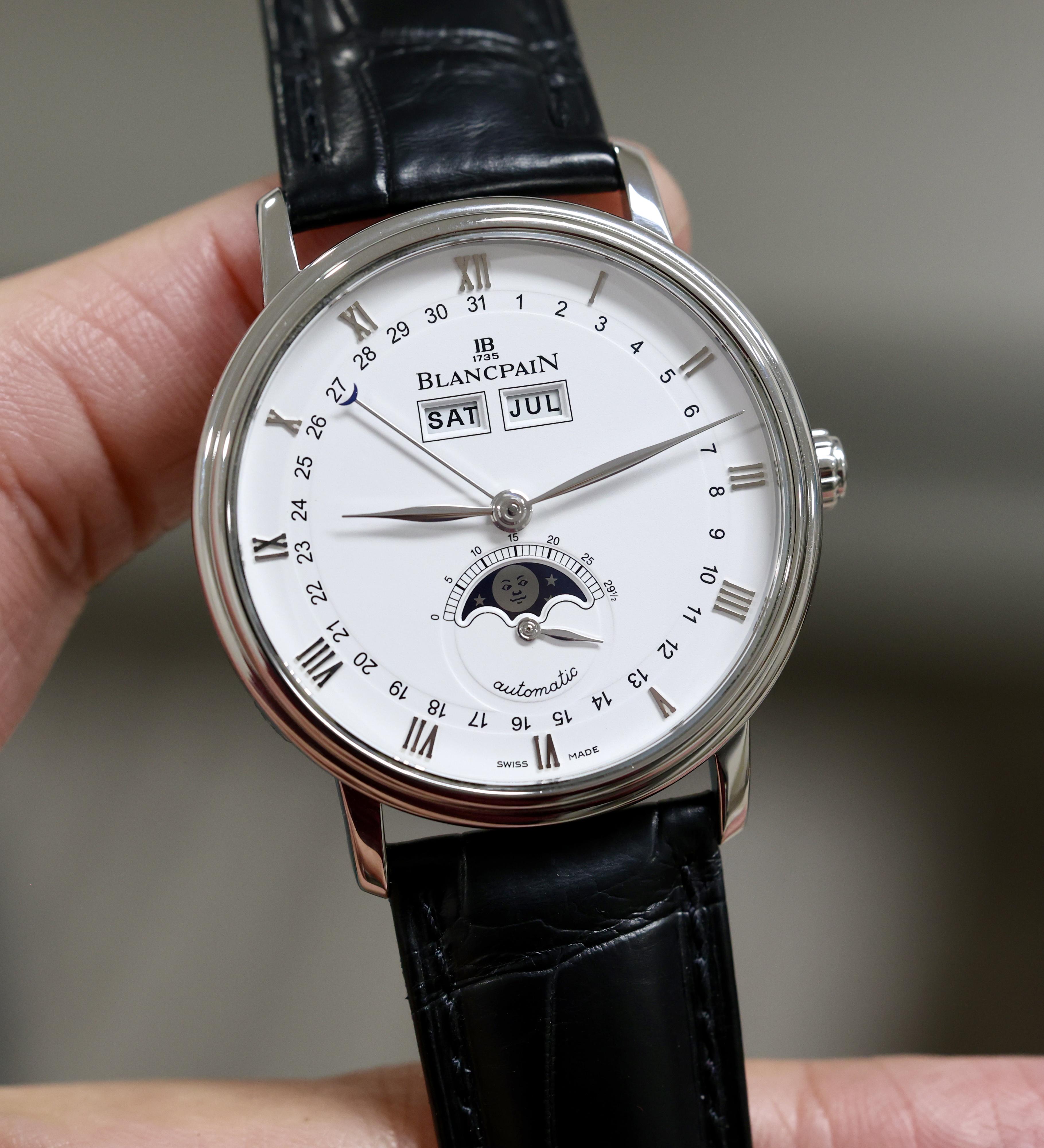 Hello All - I am putting for sale - Blancpain Villeret Moonphase & Complete Calendar 38mm Mens Watch Reference: 6263-1127a-55b 📷 More Pics: [https://www.dropbox.com/scl/fo/9y0uf2y4wnh9kkiqyc3g5/AHjMUJUOcObtAeyJcW6agjU?rlkey=3d80hwdfjlvdavwz6gol3cd8e&st=xtyyp7mo&dl=0](https://www.dropbox.com/scl/fo/9y0uf2y4wnh9kkiqyc3g5/AHjMUJUOcObtAeyJcW6agjU?rlkey=3d80hwdfjlvdavwz6gol3cd8e&st=xtyyp7mo&dl=0) 📆 Timestamp: [https://www.dropbox.com/scl/fi/t3uhkzzkaonqud3dbhuag/Photo-Jan-20-2026-6-38-57-PM.jpg?rlkey=z0d6rhbhpp29viae0ium11ufm&st=i2wsopgi&dl=0](https://www.dropbox.com/scl/fi/t3uhkzzkaonqud3dbhuag/Photo-Jan-20-2026-6-38-57-PM.jpg?rlkey=z0d6rhbhpp29viae0ium11ufm&st=i2wsopgi&dl=0) I am asking $5250 + shipping . Watch located in NJ USA. \*\*Link to my other listings: [https://www.watchrecon.com/?query=watchex\_enterprises&last\_days=0](https://www.watchrecon.com/?query=watchex_enterprises&last_days=0) I am very comfortable doing a facetime to show the watch if needed. Please PM me for any questions that you may have. I am certain it will go to a good home. Thanks for looking. \*\* 🛡️Buy with Confidence!! 700+ references. \*\* ⭐️Checkout my profile for other amazing watches. \*\* 📦All packages are shipped Fedex with insurance. \*\* 🌎Shipping accepted globally.
