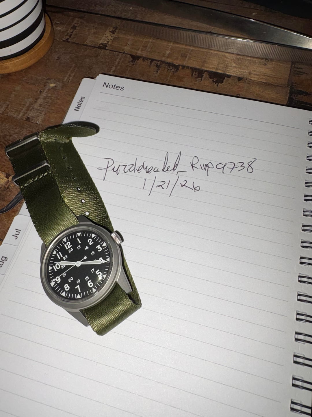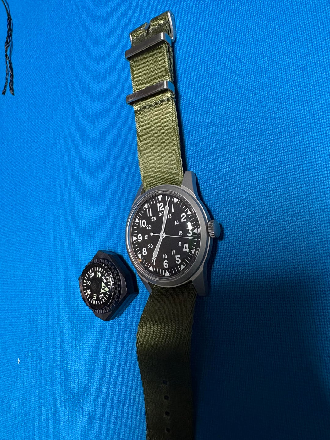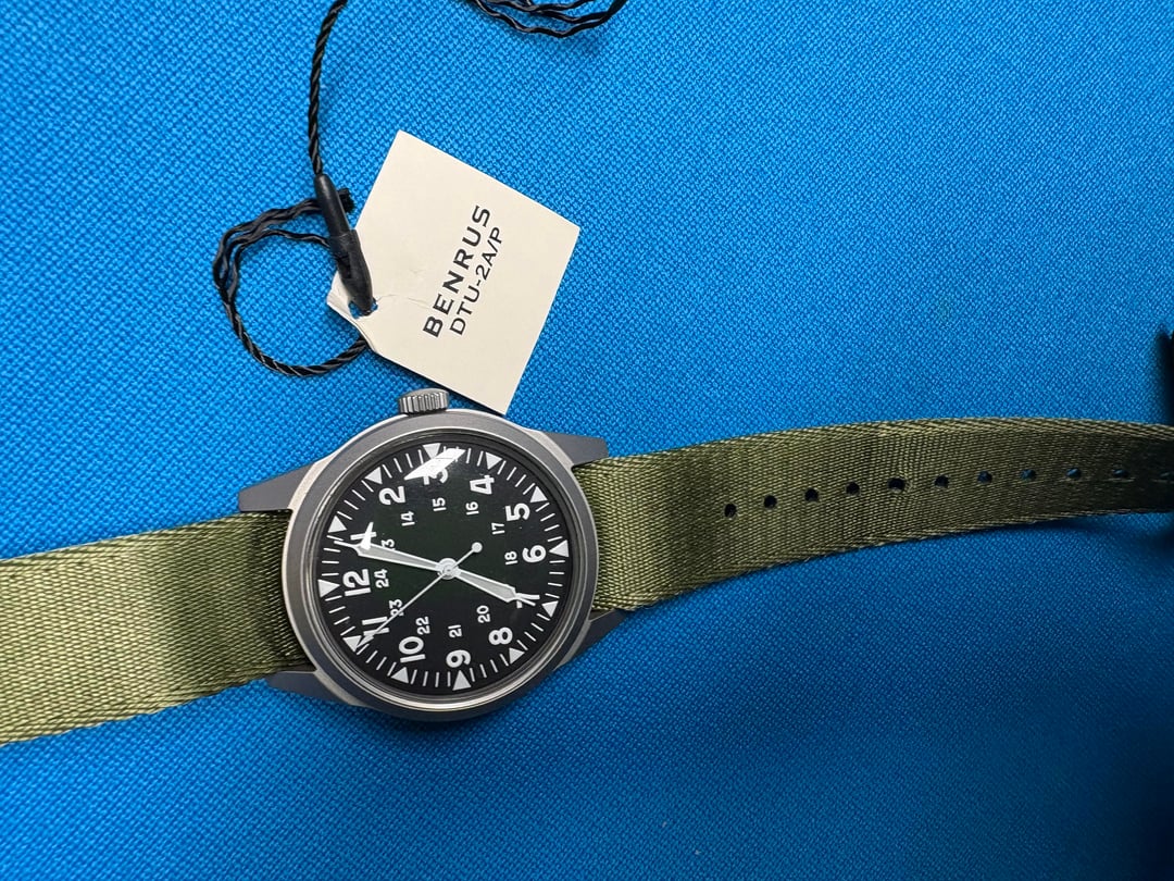 Catch and release . New Benrus DTU 2A/P; 39mm for sale. Brand new unworn by previous seller and only worn for one week for me. Classic field watch look with history to back it up. The Benrus DTU-2A/P was a military spec watch issued to troops in Vietnam. Benrus was the first contractor to nab the MIL-3818B contract for a field watch from the U.S military. Specs: Benrus DTU-2A/P Field Watch Specs Case Diameter: 39.5mm Crystal: Acrylic Case Thickness: 12.8mm Lume: Super-LumiNova Lug-to-Lug: 47.6mm Strap: Seatbelt NATO Lug Width: 20mm Movement: Sellita SW2000 Water Resistance: 50m Price: Price $200 -PayPal.