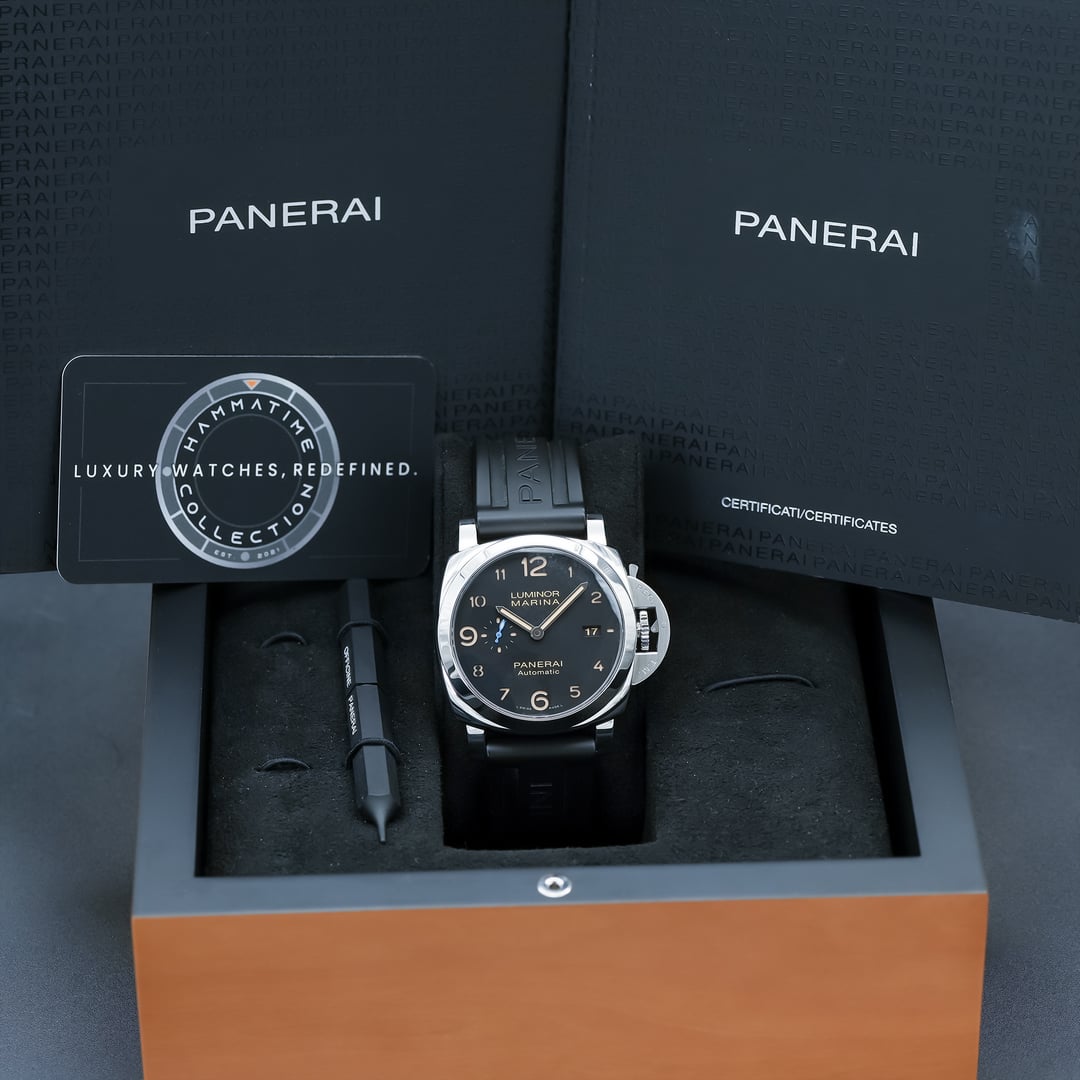 **FOR SALE: Panerai Luminor Marina PAM01359 44mm 2018 Box & Papers** The Panerai Luminor Marina PAM01359 is a clean, modern take on the classic Luminor design, delivering that unmistakable Panerai DNA with a more contemporary dial layout. The 44mm steel case has the traditional cushion shape, crown guard, and strong wrist presence Panerai is known for, while the black sandwich dial with beige lume gives it a rugged, vintage-inspired look. Powered by the in-house P.9010 automatic movement with a 72-hour power reserve, it offers excellent reliability along with Panerai’s quick-adjust hour hand for fast time-zone changes. This 2018 example is in Excellent condition and comes complete with box and papers. **Details:** • Reference: PAM01359 • Size: 44mm • Water Resistance: 300m • Movement: Panerai Calibre P.9010 automatic • Power Reserve: 72 hours **What’s Included:** Everything you see in the pictures comes with the watch. Any timepiece not still under the manufacturer’s original warranty includes a one-year service warranty beginning on date of purchase from us at no additional charge. **Condition:** This timepiece is in Excellent condition. Pictures are shot with a high-resolution DSLR camera and are an accurate reflection of the condition. The movement is running well and is not in need of servicing. **Yours for $5,400** We’re new to Reddit but have hundreds of 5-star reviews and references on other platforms. Reach out via DM or call/ text us at (571) 445-4697 if you’re interested. Thanks for looking!