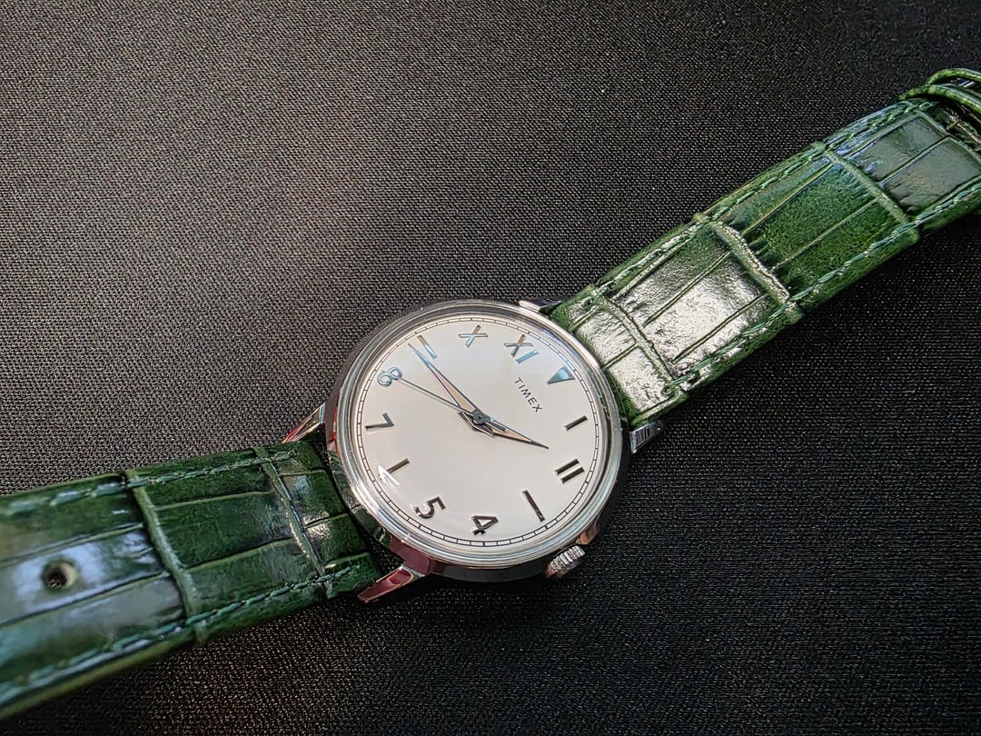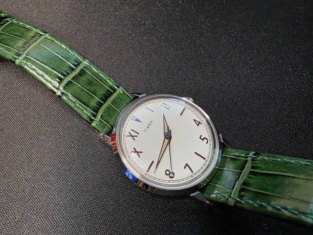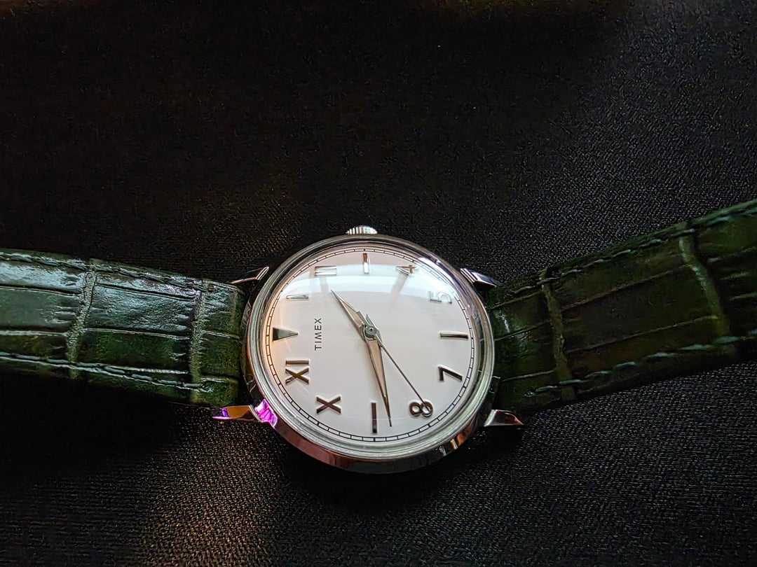 For sale is my Timex Marlin TW2U96700. In like-new condition. Worn twice since purchasing a couple of months ago. Strap has never been worn. I had it on a different strap. This is a handwind watch, and 34mm. I have a 7 1/" wrist, and it wore nicely. Only selling because I have too many watches I dont wear. Comes as a full kit, with all original packaging. Price: $215 Price includes insured shipping to CONUS only. Prefered payment via PP F&F or Zelle - or you can pay PP G&S (you cover fee).