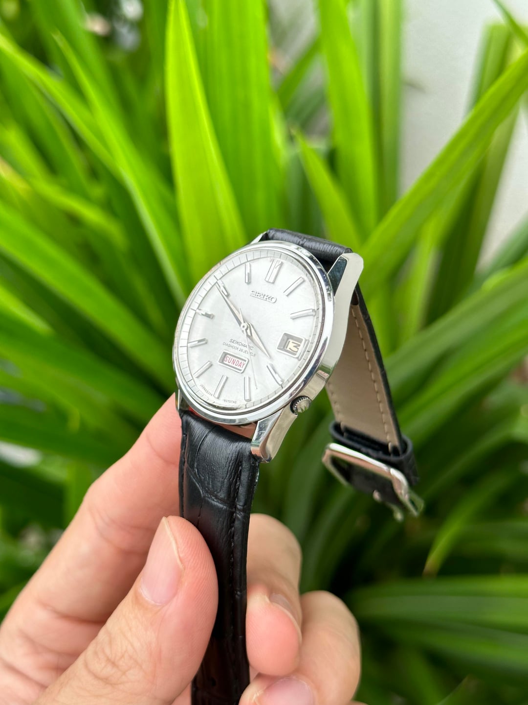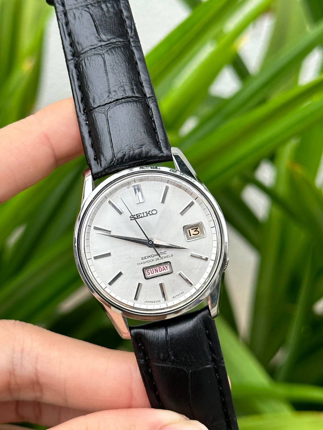 Up for sale is my Seikomatic Weekdater 6206-8040 dating from 1966. This is pre-Grand Seiko debut model, it shares some of the design features of the Grand Seiko 62, features the Diashock 26 jewels. It has a unique way of showing the day, above the six o’clock, which looks better then the contemporary method. The crown is located at the four o’clock, and is recessed to the point of unnoticeable. • Movement: 6206-8040, 18000bph Automatic movement • Production Year: October 1966 • Original beautiful dial • Quickset date is working properly. English only day wheel, conventional day adjustment. • Acrylic box shape crystal free from scratches • Stainless steel case no polish, Dimensions of Case: 36 x 42mm, thickness 10mm, lug width 19mm • Performance: +/-15s per day, serviced January 2024 • Come with brand new black crocodile strap Timestamp: https://photos.google.com/share/AF1QipNucqlynuO6YeHluuQfTAQdF5Nriugu8ainPqDGuqgp5YxlEH6udQb_aZJVYagUbA?key=X3h6eHBzb3R2NGVEcFRYYllKbHRXWlRqWUlFUHdR Album: https://photos.google.com/share/AF1QipNus5Nx6ghbj-SI2ZLAfG6k8NpDiJbMnmvc8Nm19moBuDvJ9m_B7iyLUc1NwRL9kQ?key=UjUzcUxEN2JCYkR5cjFJSE5qLXp3UEpZRHRFX25B I’ve been selling watches in this sub years now, please check my transaction flair. I’m asking for USD 399 Net via PayPal F&F or direct wire including DHL Express Worldwide shipping with tracking number. Thanks! DHL Express -> US conus, Europe, Australia: 3-5 days DHL Express -> UAE Dubai: 1-2 days