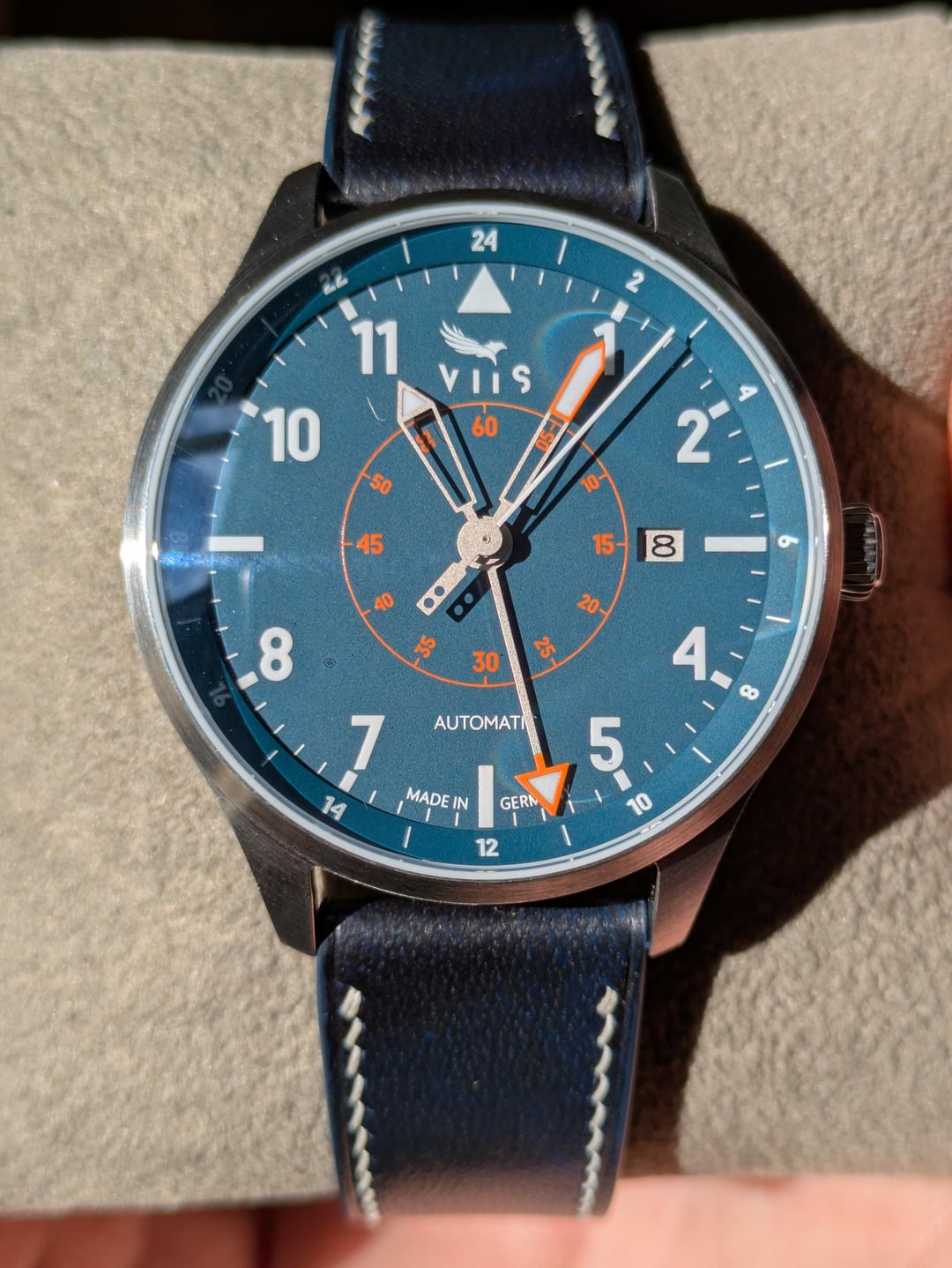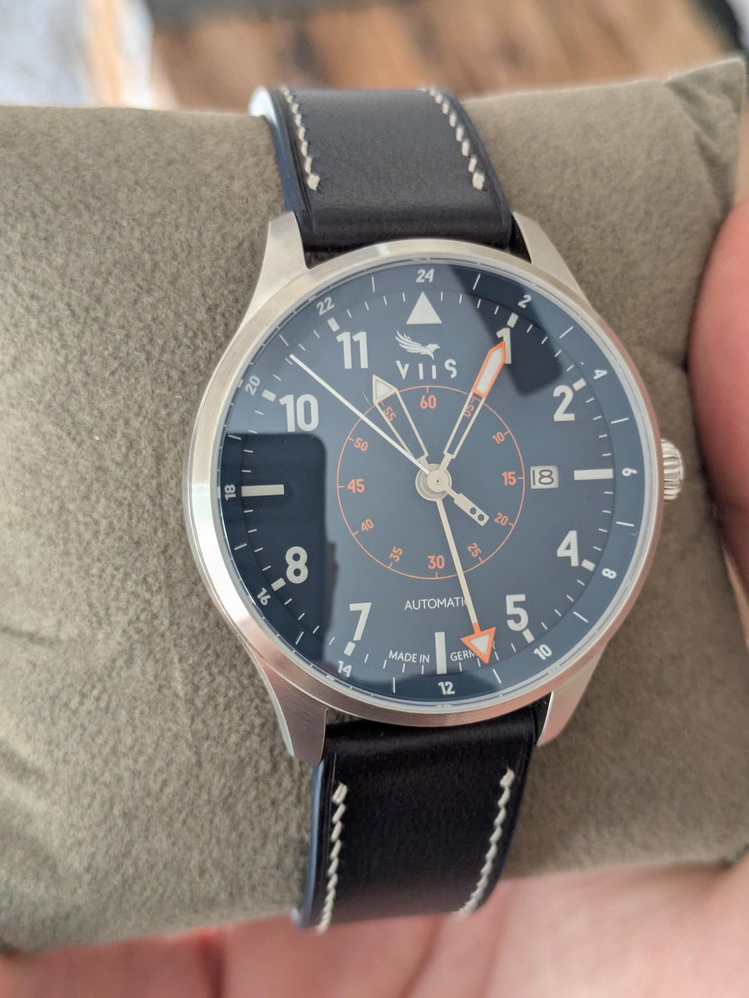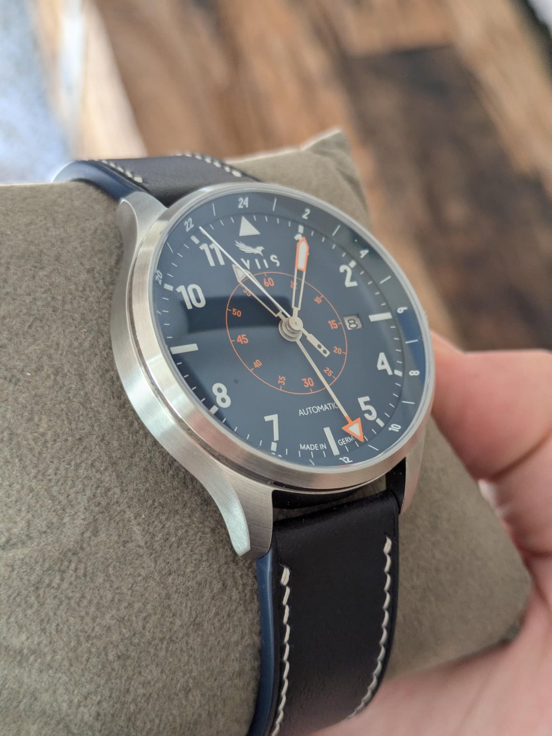 **Viis Flieger in Adriadic blue** For sale is my Viis Flieger in Adriadic blue. Watch has been worn twice, it's inmint condition. Full Set I had my strap maker create this beautiful blue leather strap for it, and it includes the original orange rubber strap which is brand new. This is one of the best value pilots watches from any microbrand. It's extremely nice and keeps great time. My "one in one out" rule is the only reason I'm selling this one. 📜 Includes: Full set - Watch, boxes, warranty card in my name (original owner) 💵 Price: $520 shipped 📍 Location: San Diego 🔒 Authenticity: 100% guaranteed 📦 Domestic Shipping (CONUS) preferred 🌍 International Shipping: Can be negotiated, you pay the cost 💳 Payment: Paypal F&F, Venmo or Face-to-face deal in San Diego I have excellent ratings here on Reddit and can provide additional references at your request. Happy to facetime and show the watch. Please PM me with any questions or additional picture requests. \*\*\*Please check out my other listings!\*\*\* Thanks all!