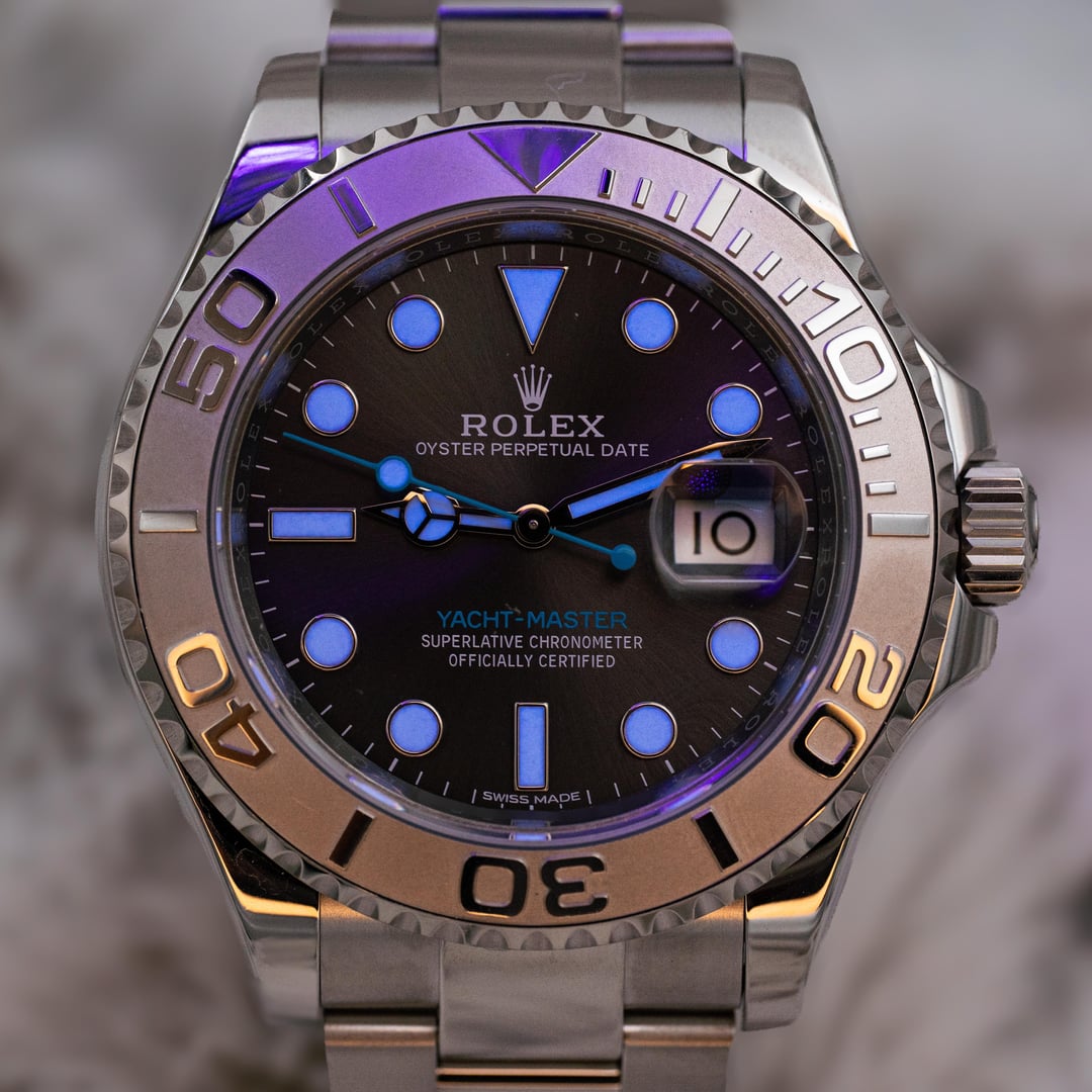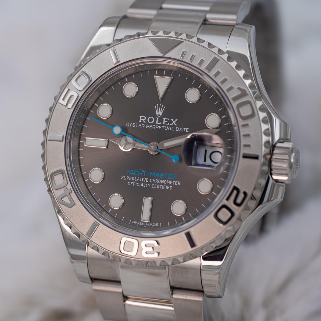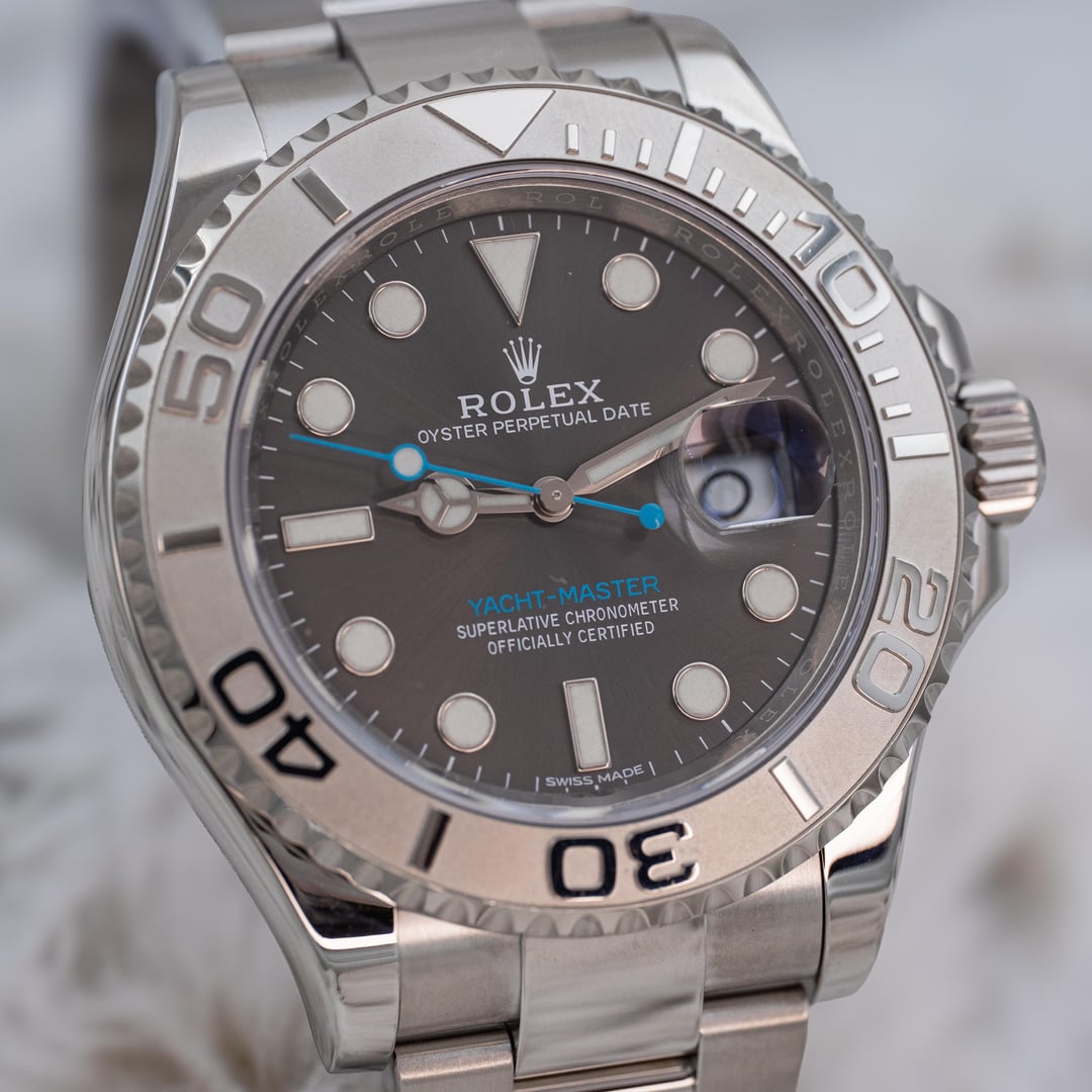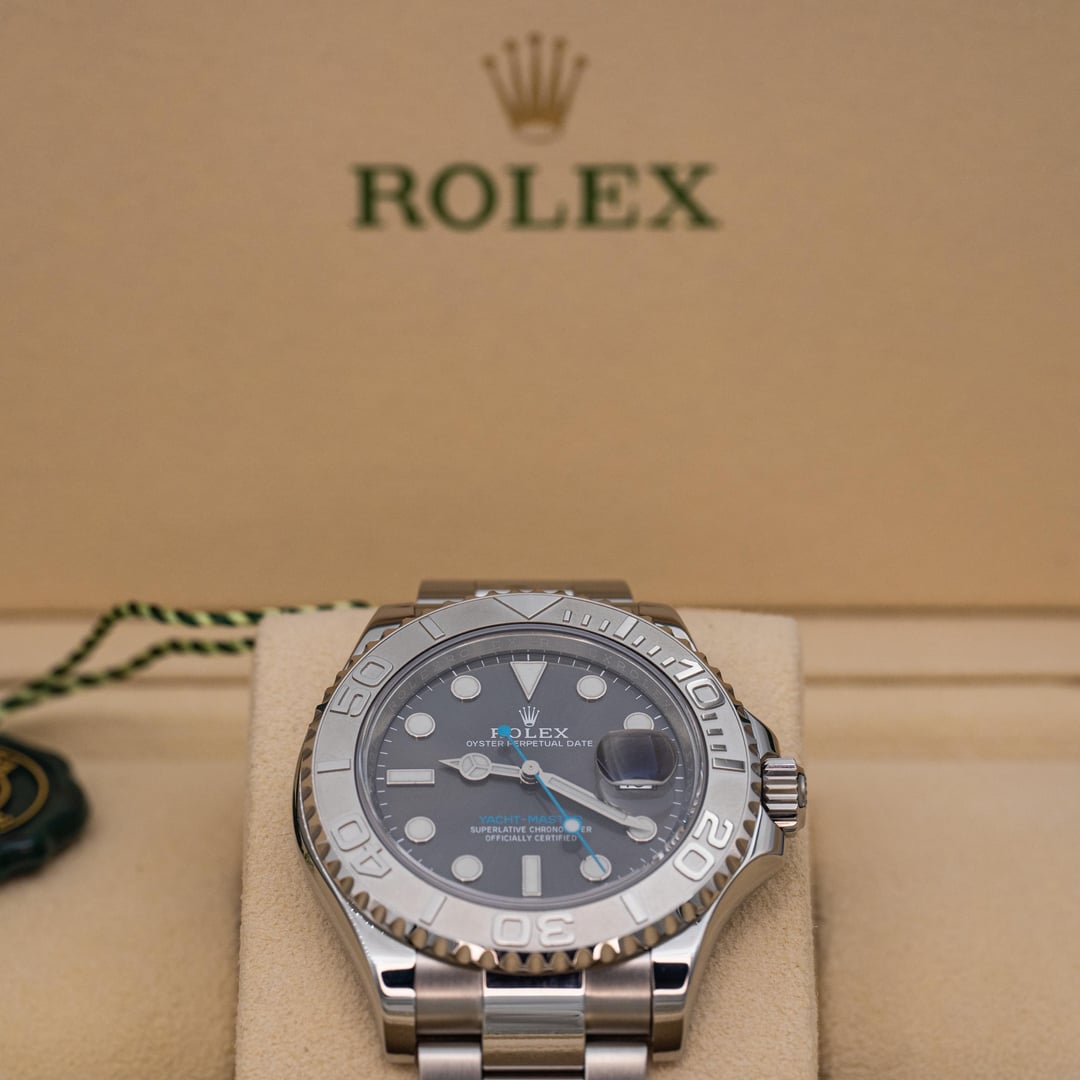 2019 Rolex Yacht-Master 40 116622 Grey Rhodium Dial Platinum Bezel Steel B+P Price: $13,600 Experience modern luxury with the Rolex Yacht-Master, featuring a mesmerizing grey rhodium dial that delivers crisp clarity and effortless sophistication. The platinum bezel, Tiffany colored seconds hand, and Oystersteel case create a seamless blend of strength and refinement, engineered for precision in every moment. This 2019 116622 reference is a tremendous value compared to the updated 126622 reference and is a great addition to anyone’s collection. Elevate your lifestyle with a watch that embodies power, performance, and unmistakable presence. We are a trusted dealer of pre owned timepiece with hundreds of references and can make sure that you receive the best experience possible when purchasing a luxury timepiece. This watch is in excellent condition, fully linked, and is from 2019. The crystal is in good condition, and the case, clasp, bracelet, and bezel show very little signs of wear. This watch comes with the outer box, inner box, card holder, international warranty card, guarantee manual, green chronometer hangtag, white serial hangtag, bezel protector, and the Yacht-Master user manual. It is running beautifully and ready to go! I use a macro lens so please keep in mind that the imperfections you might see appear amplified in the photos and are sometimes not visible to the human eye. This watch dresses well in almost any setting, casual and professional. Get this beautiful pre-owned timepiece before its gone! IG - WatchWealthCo Website: [www.watchwealthco.com](http://www.watchwealthco.com) imgur link with timestamp: [https://imgur.com/a/2019-rolex-yachtmaster-rhodium-dial-116622-box-papers-id2Zcxs](https://imgur.com/a/2019-rolex-yachtmaster-rhodium-dial-116622-box-papers-id2Zcxs)