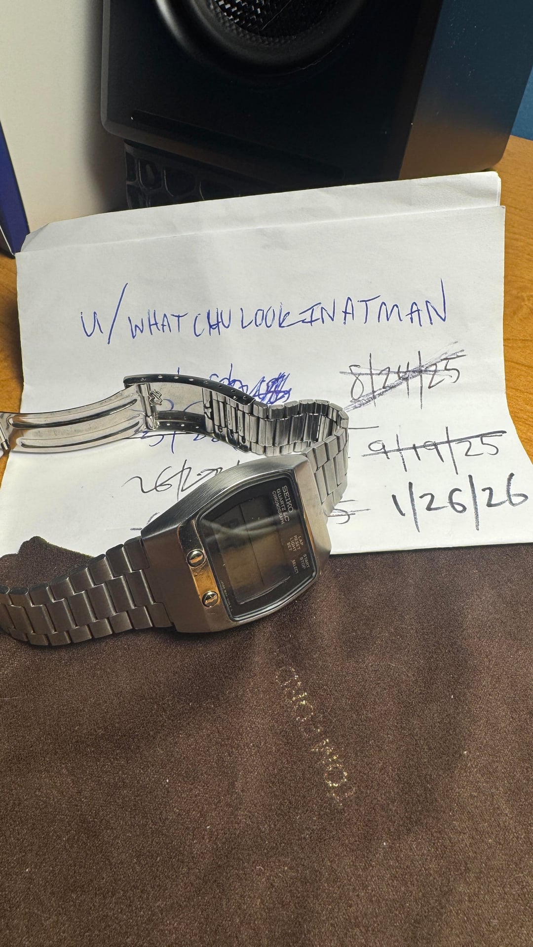 One more vintage watch that needs a new home. This watch is from 1977 and is in fantastic shape for it's age. All buttons, pixels, and the light work great. The only bad things I can say is the button cover is a bit messed up but is still usable. And there is a few specs of dust under the glass...the module can be removed and glass cleaned if needed. $115 TYD. Paypal, Venmo, and Zelle work for me. Add $5 if using Paypal G&S.