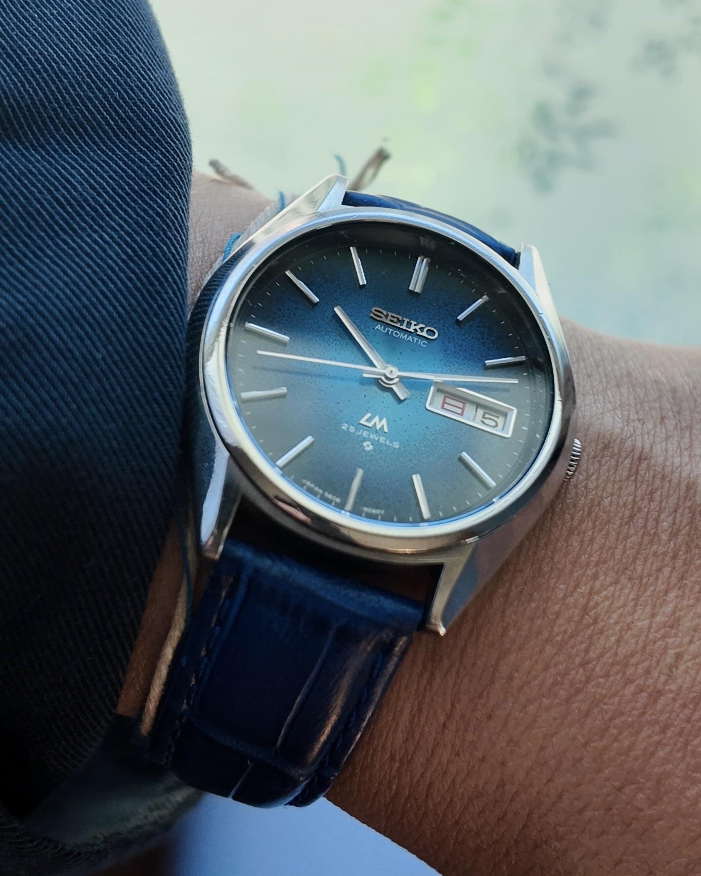 Seiko Lord Matic 5606-8030 JDM Kanji The Lord Matic series offers a ton of vintage value as it has a lot of the same attributes as King and Grand Seiko but more affordable. These are typically Suwa factory productions that ran from the 1960s-1970s. Based on serial number 844### this one is either 1968 or 1978. While the gradient Pacific blue dial is the start of the show, the modern futuristic case is not only ahead of its time but still en vogue today. Overall honest wear but no severe damage. The watch is keeping healthy time and running appropriately for age a specification but a service would be optimal for long term wear. __________________________________________ Timestamp Pix videos and timegrapher: https://drive.google.com/drive/folders/14SIbJ4TuccVfgBaL-GekC5946g5VoPPC?usp=sharing Specifications: 36mm case X 18 lug width X 41h X 9.4 with acrylic Box and papers: no ________________________________________ - video is the best way to view the watch if in-person test drive is not available. Due to the different characteristic of the cameras and gadgets used, the color of the watch you purchase may not be the same as shown on this website or on our Instagram. * will consider trades that make sense but please consider time, shipping, and trade value—not market. * All sales final unless the watch is misrepresented or lost in transit (always fully insured) * Link to [feedback here](https://www.reddit.com/r/WatchExchangeFeedback/search?q=soycowboy&restrict_sr=1&sort=new) & [watchcharts here](https://watchcharts.com/repcheck/user/soycowboy?source=reddit&type=feedback) * Asking a *negotiable* **$360** via bank wire, Zelle, venmo, or possibly Applepay with super strong references or if I know you. Price includes fully insured Fedex shipping in the USA— hand delivery in most of the Los Angeles or Orange County areas with drinks or coffee on me ;). Cheers, Stephen