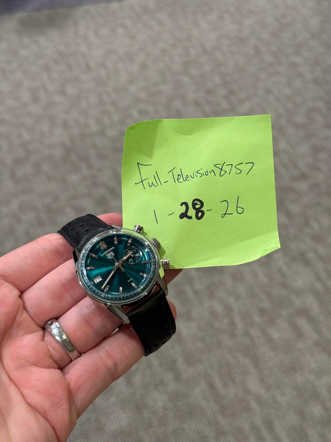 ![[WTS] Tag Heuer Carrera Chronograph 39mm Glassbox Green Dial CBS2211-0 with Box 8](https://cdn-cf.watchpatrol.net/600x600/img/full/e2c6380611345b05df80126ffcf681f08a05250e.jpg)