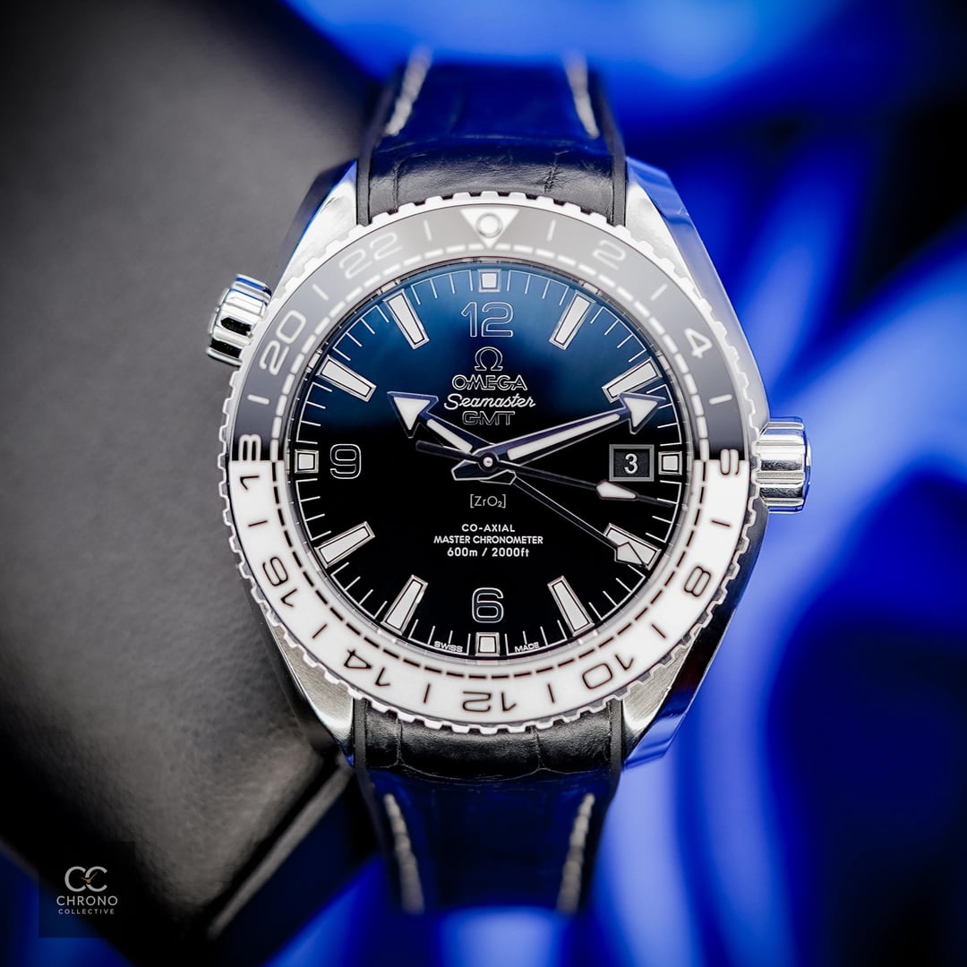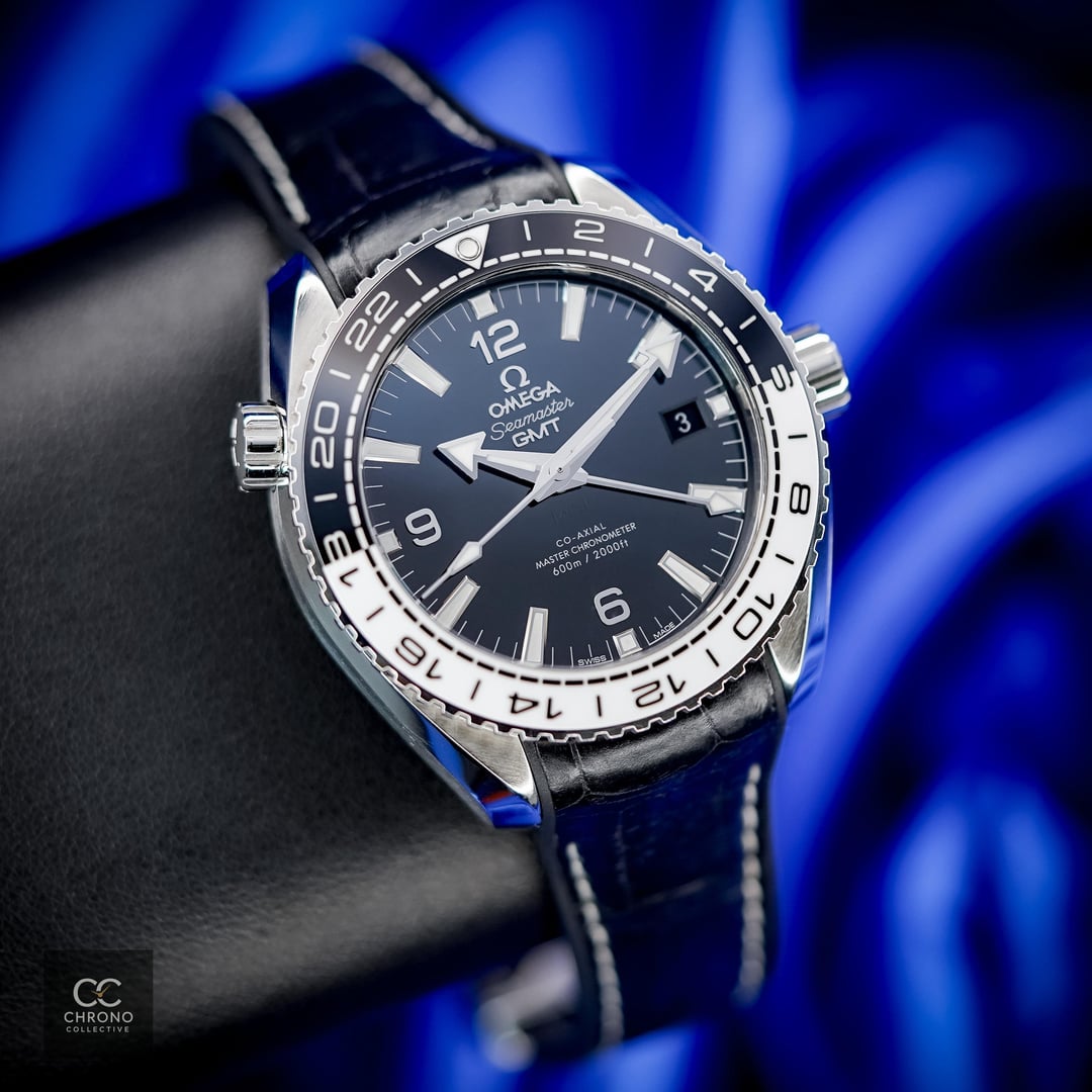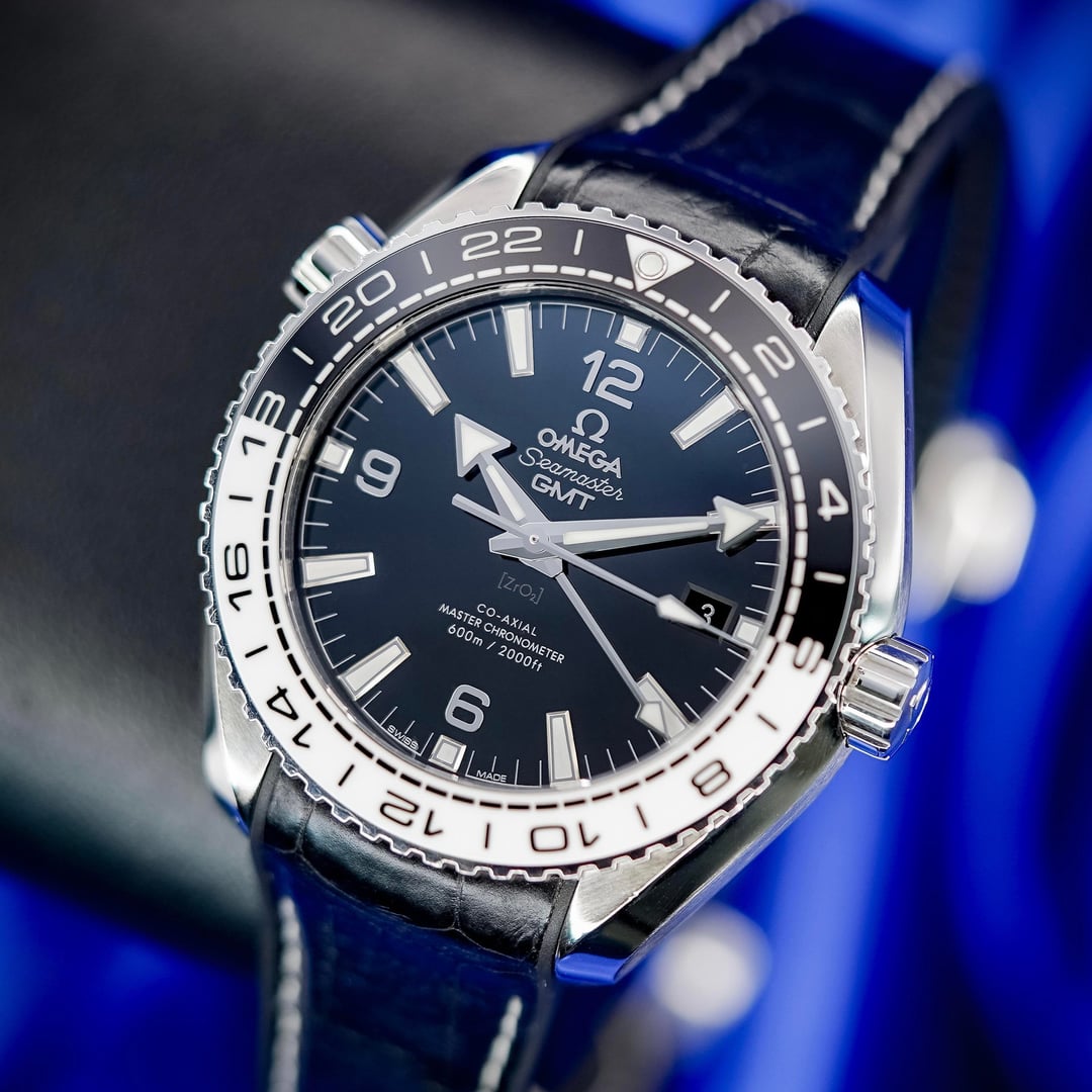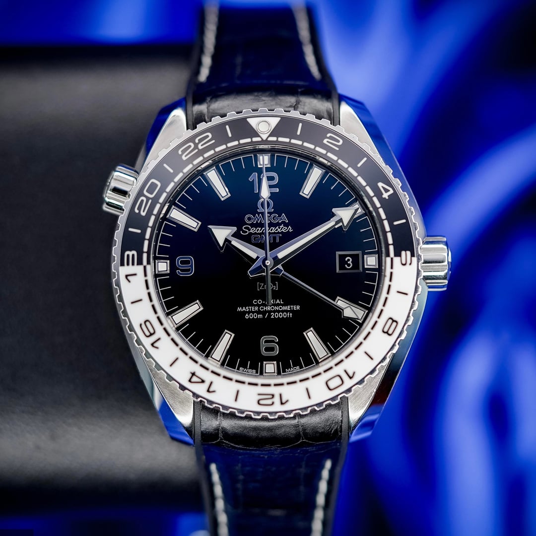 TIMESTAMP: https://imgur.com/a/KoXGDIw Up for sale is my Omega Seamaster Planet Ocean GMT with the black/white “Oreo” bezel. This is the 43.5mm version with the black dial and ceramic bezel, reference 215.33.44.22.01.001. It’s a great modern Planet Ocean with strong wrist presence but still very wearable. $6,395 with fully insured shipping included (CONUS) The watch is in excellent condition and very clean overall. No scratches, dings, or marks to note on the case, bezel, crystal, or clasp. It’s currently on a leather strap, which is also clean and in great shape. Includes the inner and outer boxes, papers, and booklet. I’m happy to provide additional photos or do a FaceTime call if helpful.