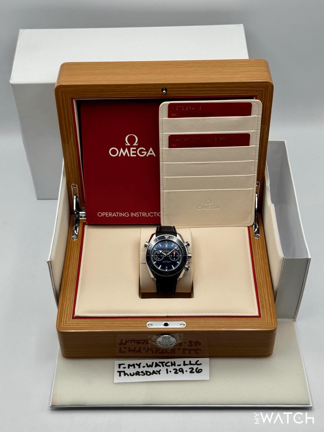 🔵**Omega Seamaster Planet Ocean Chronograph 45.5mm 215.33.46.51.03.001 Stainless Steel Blue Ceramic Dial** 🔵**TRADE or SELL us your luxury watch, all brands considered. Message me details.** **Includes the following:** **✔️Original Omega Double boxed** **✔️Pictograms and Master Chronometer Cards with leather holder** **✔️Operating Instructions** **✔️Size: Blue Alligator Leather Strap with fold over clasp** **✔️Watch is in excellent overall condition. Please see photos for details.** **✔️Trades welcome** Business Name: **My Watch LLC** LOCATION: Oak Park, Michigan ✔️[MyWatchLLC.com](http://mywatchllc.com/) for current inventory ✔️Google Business Listing [https://g.co/kgs/Cmd6FPW](https://g.co/kgs/Cmd6FPW) ✔️Business Hours M-F 9-6 ✔️Facetime/Video chat/calls welcome to view the watch interested. ✔️Contact: 248-422-0909 via text or call for quickest response. 🟢TERMS: Visit [MyWatchLLC.Com](http://mywatchllc.com/) for payments accepted 🟢REFERENCES/REVIEWS: We are well reviewed on all platforms from google, trust pilot, rolexforums, additionally we have 300+ reference in multiple FaceBook watch groups, reference checks welcome. 🟢SHIPPING: If you are not local, we offer Fully Insured FedEx overnight shipping in the USA for a fee. International shipping available. [https://mywatchllc.com/products/omega-seamaster-planet-ocean-45-5mm-215-33-46-51-03-001-blue-dial](https://mywatchllc.com/products/omega-seamaster-planet-ocean-45-5mm-215-33-46-51-03-001-blue-dial)