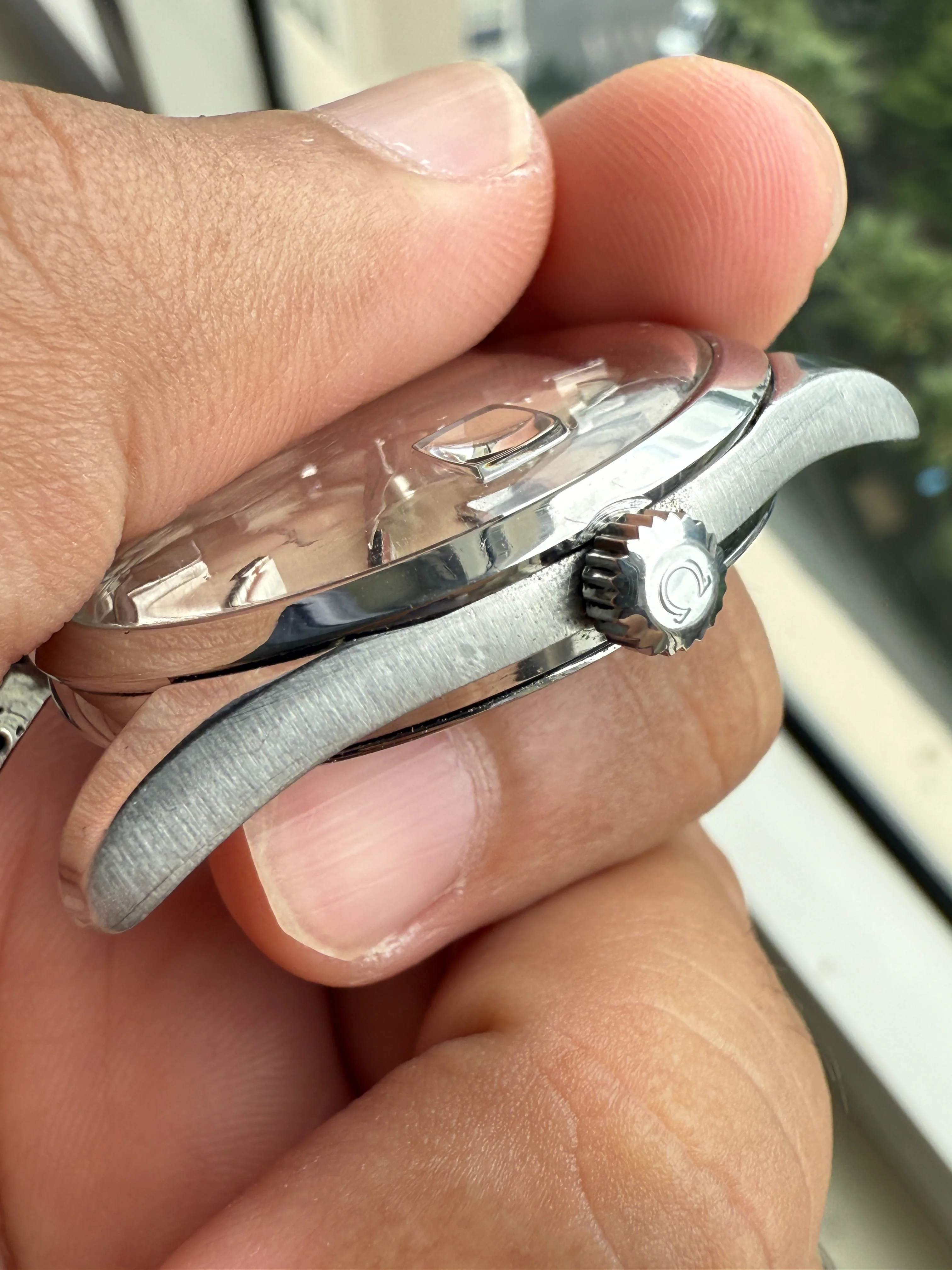 - Case: The diameter is 35mm without the crown. Original case is in good condition, retains all the brushed surfaces. Original Omega knurled crown.