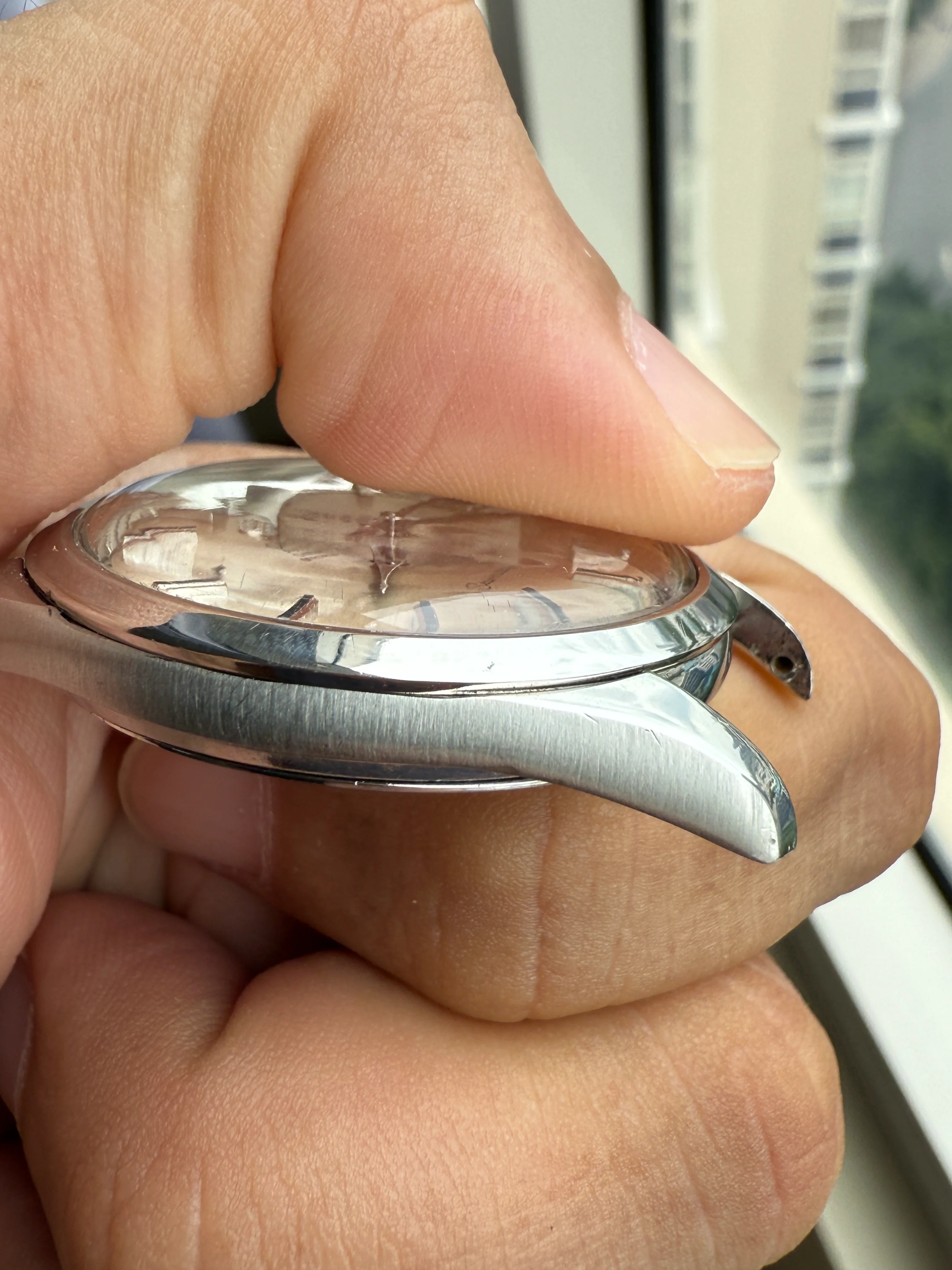 - Dial: Original white sunburst dial with black painted hour markers; date-aperture frame at 3; dauphine hands; prints, hands and hour markers are all good.