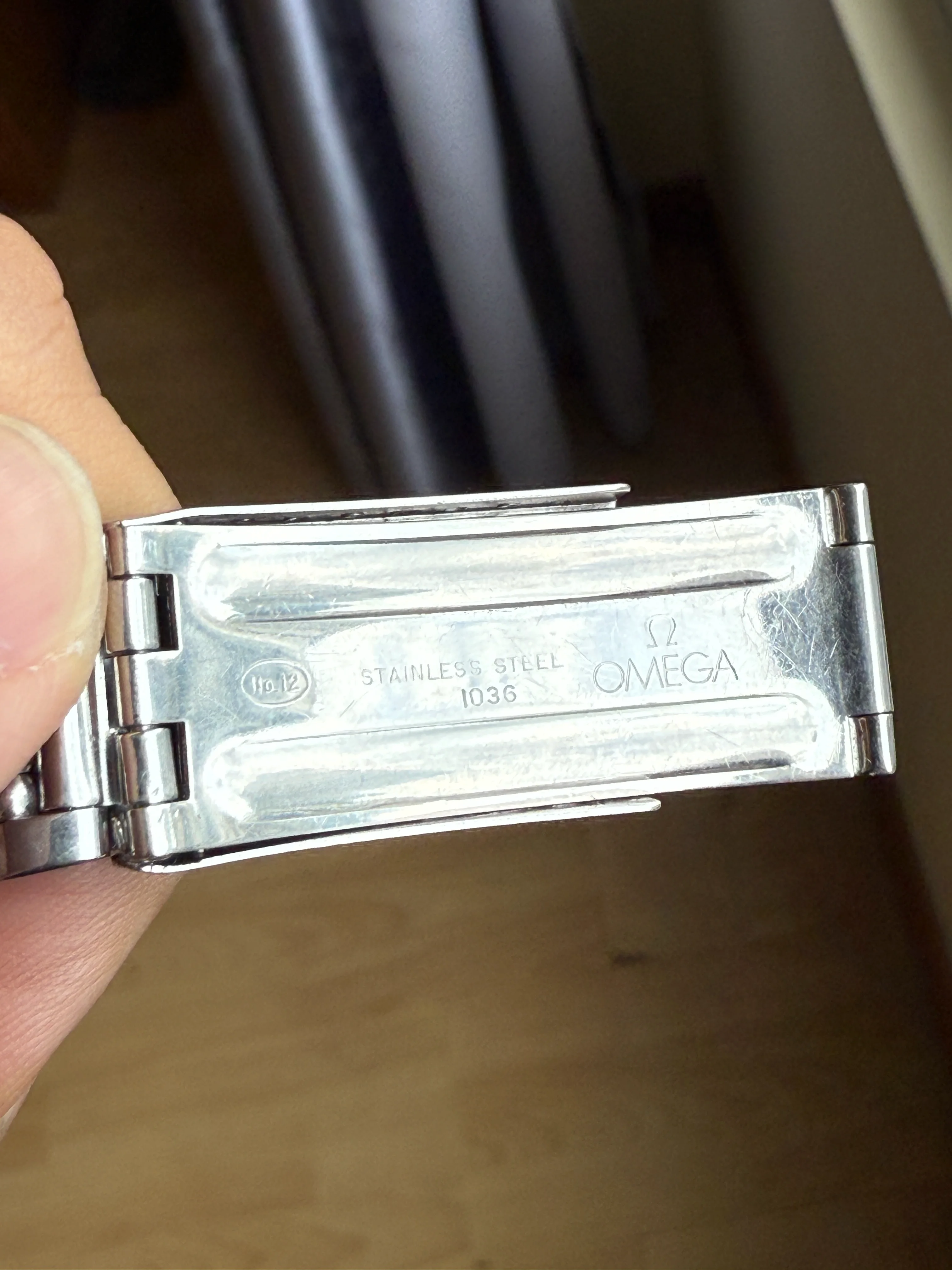 - Bracelet: Omega bracelet reference 1036 with 511 end-links in good condition; triple fold clasp featuring micro-adjust with Omega logo. There is a bonus blue rubber strap.