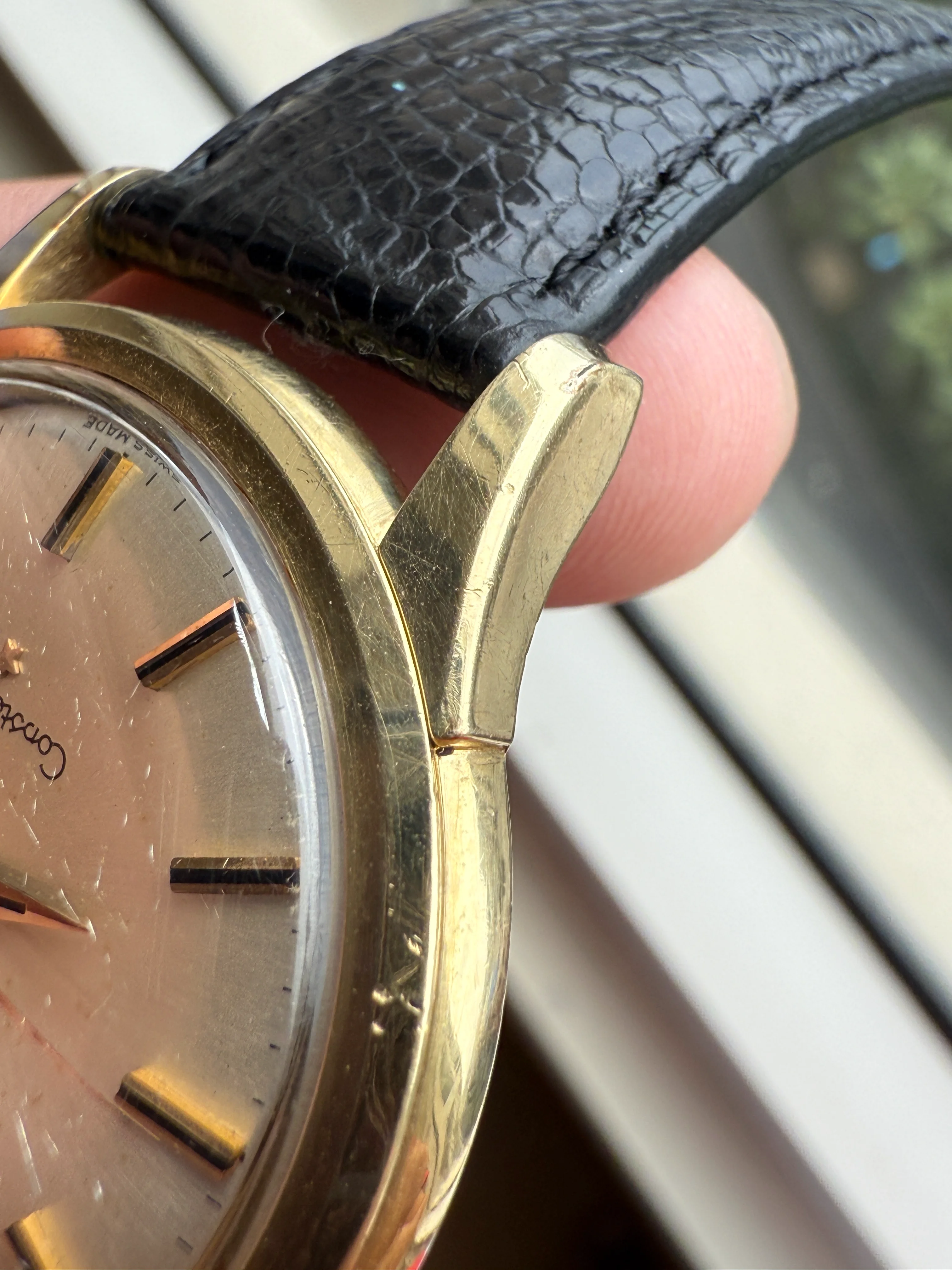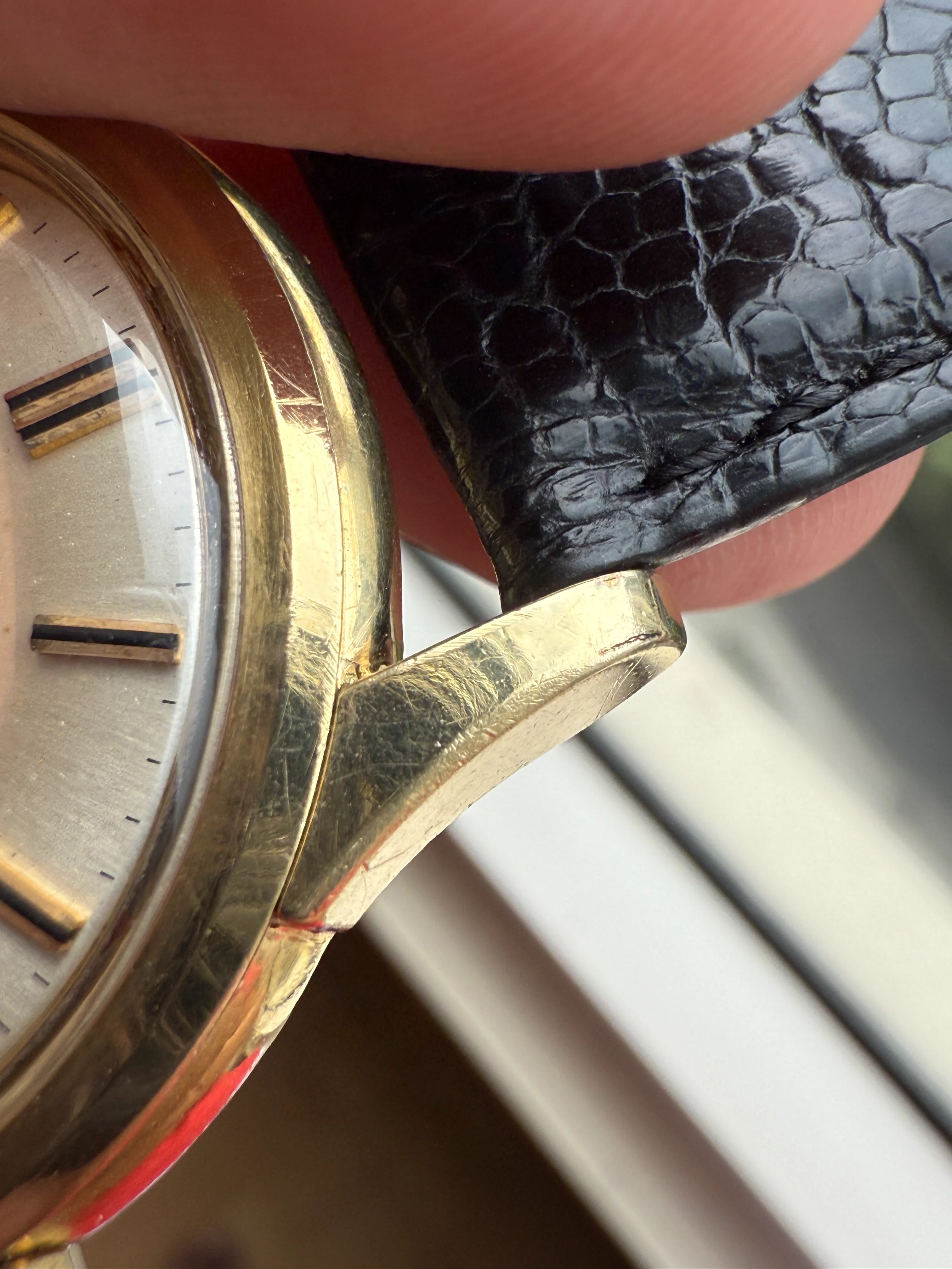 - Case: The diameter is 37mm without the crown. Original case in good condition, hairline scratches all over, some clearly scratches/chips on the bezel at 8’ and 10'. Lug size is 19mm. After market decagonal Omega crown.