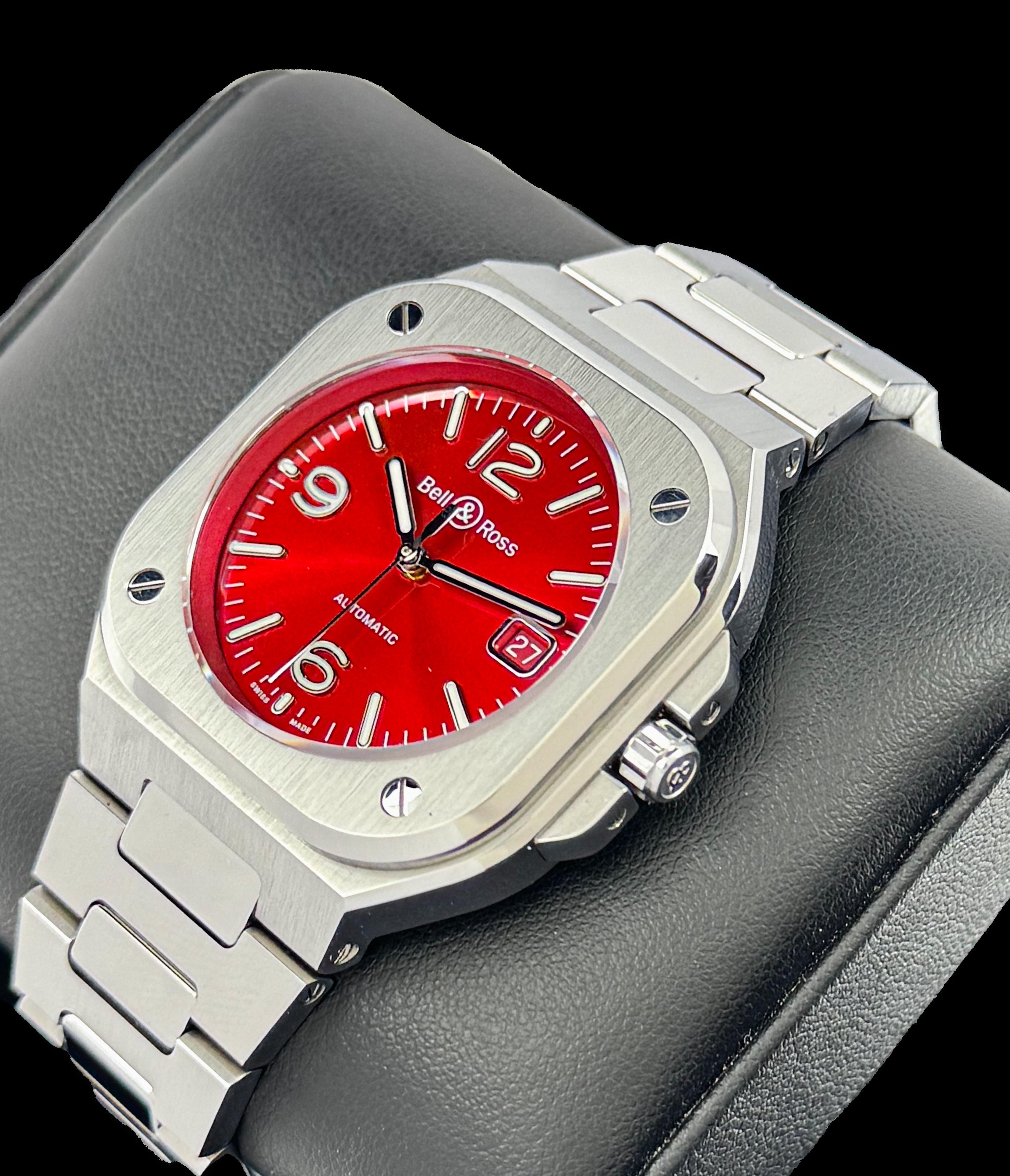 **Very rare 2021 Bell & Ross BR05A-R-ST/SST Limited Edition (99 units)** **99 units produced / 40mm / SS bracelet full links / outer box / inner box / warranty card / manual / eWarranty was registered Feb 202**2 **Note: cushion is a little flaky, some very minor marks on bracelet and due to the two tone metal combo (brushed / shiny) I have opted not to have it polished, the timepiece shows very well in current state. Bezel & crystal are clean, runs strong.** Fun fact: This variant was released in December 2021 exclusively for the Japanese market, drawing inspiration from the Hinomaru (Japanese national flag) with its vibrant red sunburst dial symbolizing the rising sun. Time / date stamp: [https://imgur.com/a/6mU6r7F](https://imgur.com/a/6mU6r7F) Photo Album: [https://imgur.com/a/w5xB7Uk](https://imgur.com/a/w5xB7Uk) **No US comps on any platform (3 total worldwide in JP)** **3950 + ship** **Charlotte NC** **Plenty of references**