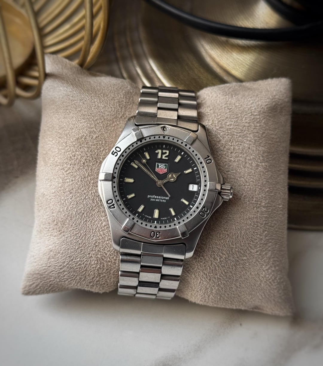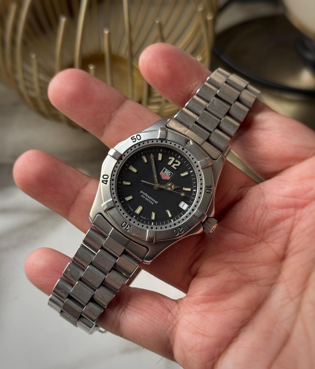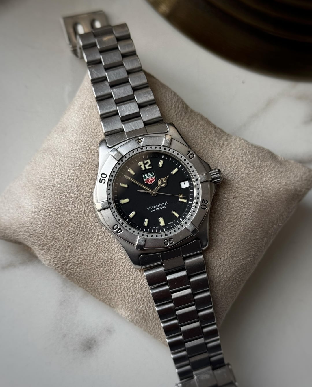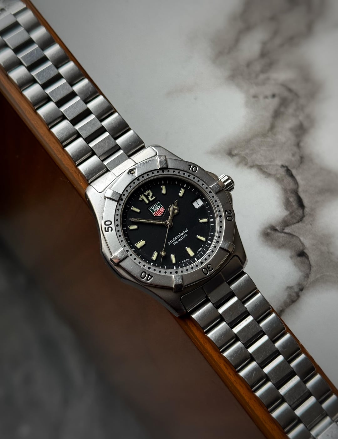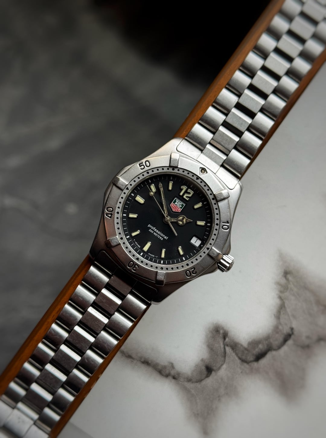 [WTS] Tag Heuer Professional WK1110 - Original Bracelet only for 375$ 🚢 Shipped Up fo sale is a tag heuer professional reference WK1110 featuring a stainless steel case with a case size of 38mm. Condition of the case is good no major dents or dings just a few hairline scratches overall. Dial is clean with a beautiful matte finish, however the hands lume shows signs of aging. Tag signed crown and clasp. Comes on its original bracelet which is 6.8 inches in length and 7.8 with diver’s extension. Sapphire crystal. Quartz movement working perfectly fine with no malfunctions and keeping accurate time as it should. Watch only! Asking 375$ shipped via UPS(US Tarrif will be covered) will be shipped in 2-3 days Payment through Wise / Paypal F&F/ Crypto.