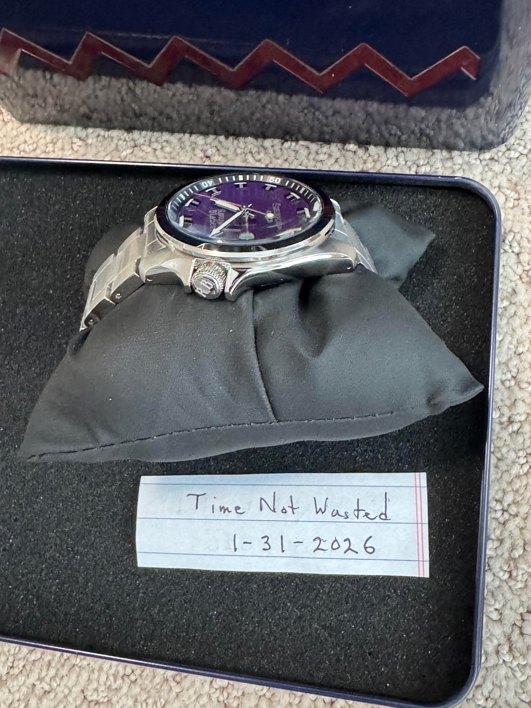 From my personal collection. Seiko 5 Sport Rowing Blazers Purple Limited Edition. In very good condition and Full Kit. Original purchased in August 2025. Again, pre-owned and very good condition. Case Size: 40mm Case Material: Stainless steel with exhibition Rowing Blazer caseback Crystal: Hardlex Movement: Automatic with manual winding capability 4R36 Functions: Time, date Dial Variants: Purple Strap/Bracelet: Stainless steel and with additional textile strap Limited edition to 888 pieces Priced to SELL: $499 shipped Payment: Venmo or Zelle Buy with confidence. Currently, 167 perfect transactions on Reddit and counting. Happy to FaceTime with Seiko in hand.