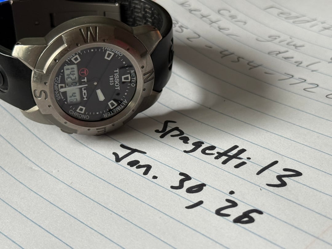 Tissot T-Touch Titanium. This is the original Z 252/352 model that started the tactile trend. It's a great "tool watch" that feels incredibly light on the wrist thanks to the titanium construction. • Condition: Good pre-owned condition. The titanium bezel has some character marks/scuffs from regular use, but the sapphire crystal is flawless. • Functionality: 100% working. Touch sensitivity is responsive, and the compass/altimeter calibrate correctly. • Specs: 42mm diameter, 30m WR, EOL (End of Life) indicator. • Price: $160