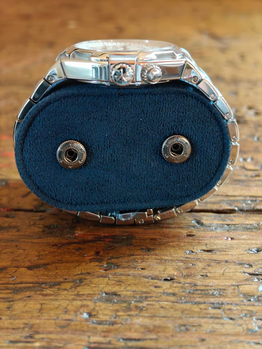 Up for sale is a **Vacheron Constantin Overseas Dual Time Ref. 47450** with the crisp and highly desirable **white dial**. This reference remains one of the strongest value plays in the entire luxury sports watch category — dual time, AM/PM indicator, date, power reserve, and classic Overseas finishing. This example includes **papers from 2013**, fits between a **7 and 7.25-inch wrist**, and **runs well**. Clean, presentable, and ready for daily wear or rotation in any serious collection. 📐 **Specs**: – Ref. 47450 – White dial – 42mm stainless steel case – Dual time, AM/PM, date, power reserve – Automatic movement – Fits 7–7.25” wrist – Papers from 2013 – Running well 📦 **Terms**: – **15,800 shipped & fully insured** – Wire or Zelle only – Trades welcome — RLX, AP, Omega, IWC, Panerai, etc. – Plenty of references available – Located in Massachusetts – Happy to provide timestamped pics or video call to confirm condition 🔥 One of the best values in the Holy Trinity sports watch world — Overseas pedigree, dual‑time functionality, and a clean white dial at a killer price. 📲 Follow along for more drops: **Instagram: @ajkwatches** | **Website:** **ajkwatches.com** DM with intent or comment below. Serious offers only. #VacheronConstantin #Overseas #47450 #DualTime #HolyTrinity #TradesWelcome