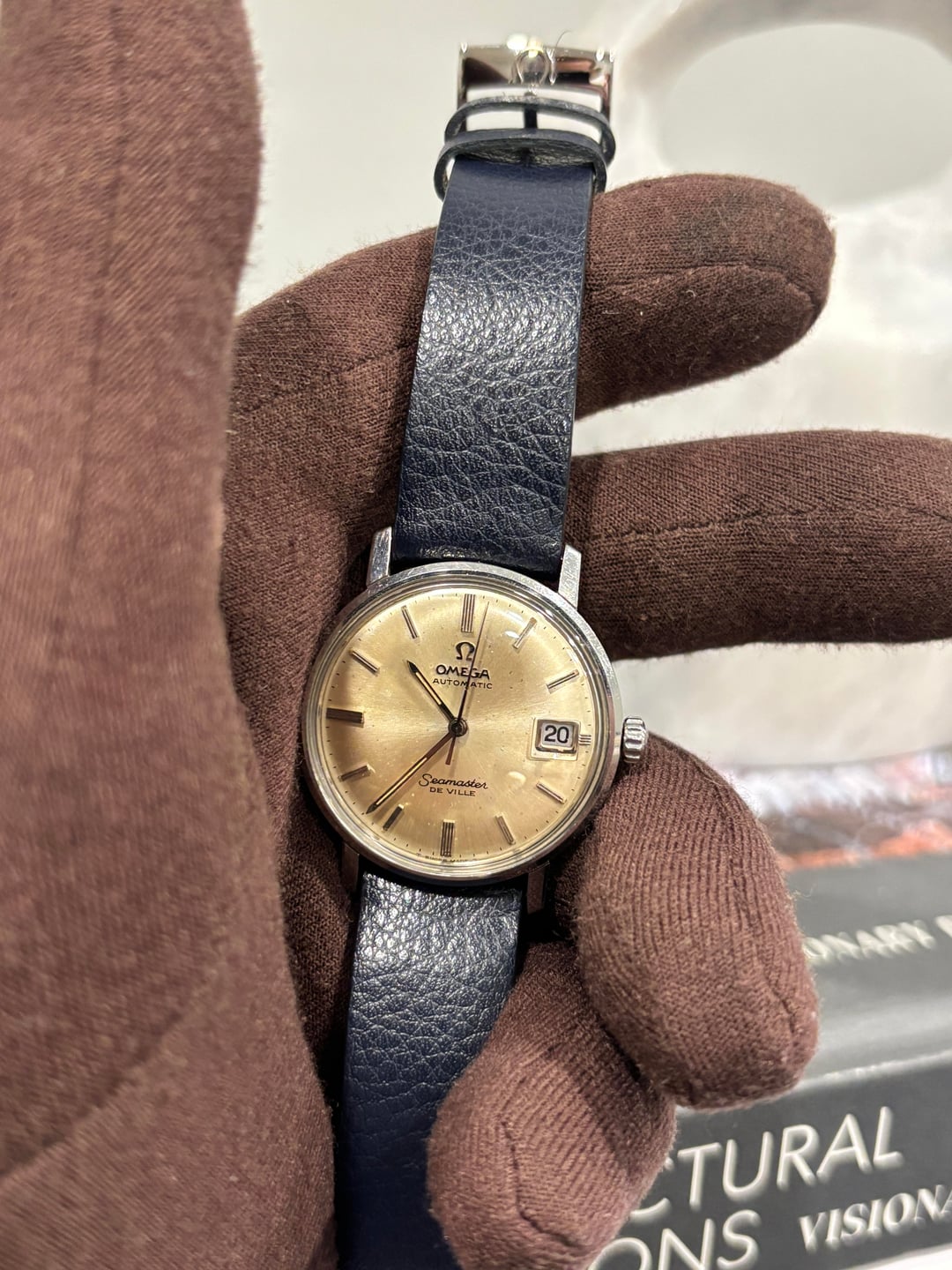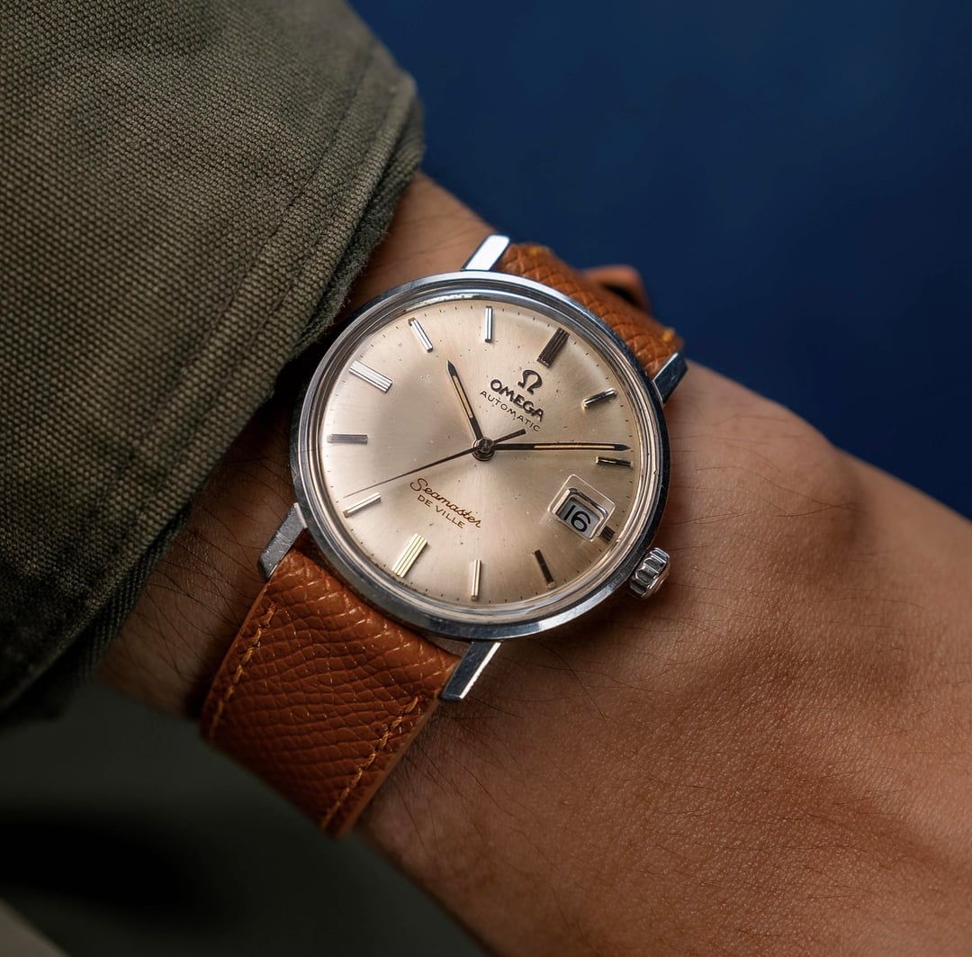 **Hello Watchex,** Up for grabs is a timeless **Omega Seamaster De Ville** — a classic slice of 1960s elegance. This example features a beautiful **salmon / honey dial** with minimalist applied indices that catch the light in all the right ways. The dial really comes alive, shifting between warm yellows and soft pinks depending on lighting. This reference comes from the transitional period when Omega was blending sporty reliability with dress-watch refinement under the Seamaster De Ville line — and it shows. It’s a reliable, no-nonsense vintage daily that still oozes charm and class. I’m clearing out part of the collection to go all-in on a 5-digit Rolex GMT — hate to let this one go, but chasing a bigger fish. The wrist shot shown is from u/Eddie2311, an excellent and well-known vintage Omega seller here on Reddit, whom I purchased this watch from approximately 3 months ago. His wrist size, as noted in the original post, is 17cm (6.69 in), and the watch wears beautifully at that size. I’m including his photos to help give a better sense of the dial’s character and how the color shifts in different lighting. Including an additional brown strap, both straps are aftermarket. **Condition:** Good vintage condition. The dial shows light patina and age-consistent marks that add warmth and character. Case appears unpolished with nice, sharp lines. **Movement:** Omega automatic **Cal. 562** — serviced and running strong. **Dimensions:** * Diameter: 34.5mm * Thickness: 10.2mm * Lug-to-lug: 40mm * Wrist reference shown: 17cm (6.69 in) **Timestamp:** [https://imgur.com/a/XXDeIR6](https://imgur.com/a/XXDeIR6) 💵 **Price:** $830 delivered USPS Priority (CONUS). FedEx available for +$20 💲 **Payment:** PayPal F&F or Zelle 🚫 **No trades at this time** Thanks for looking!