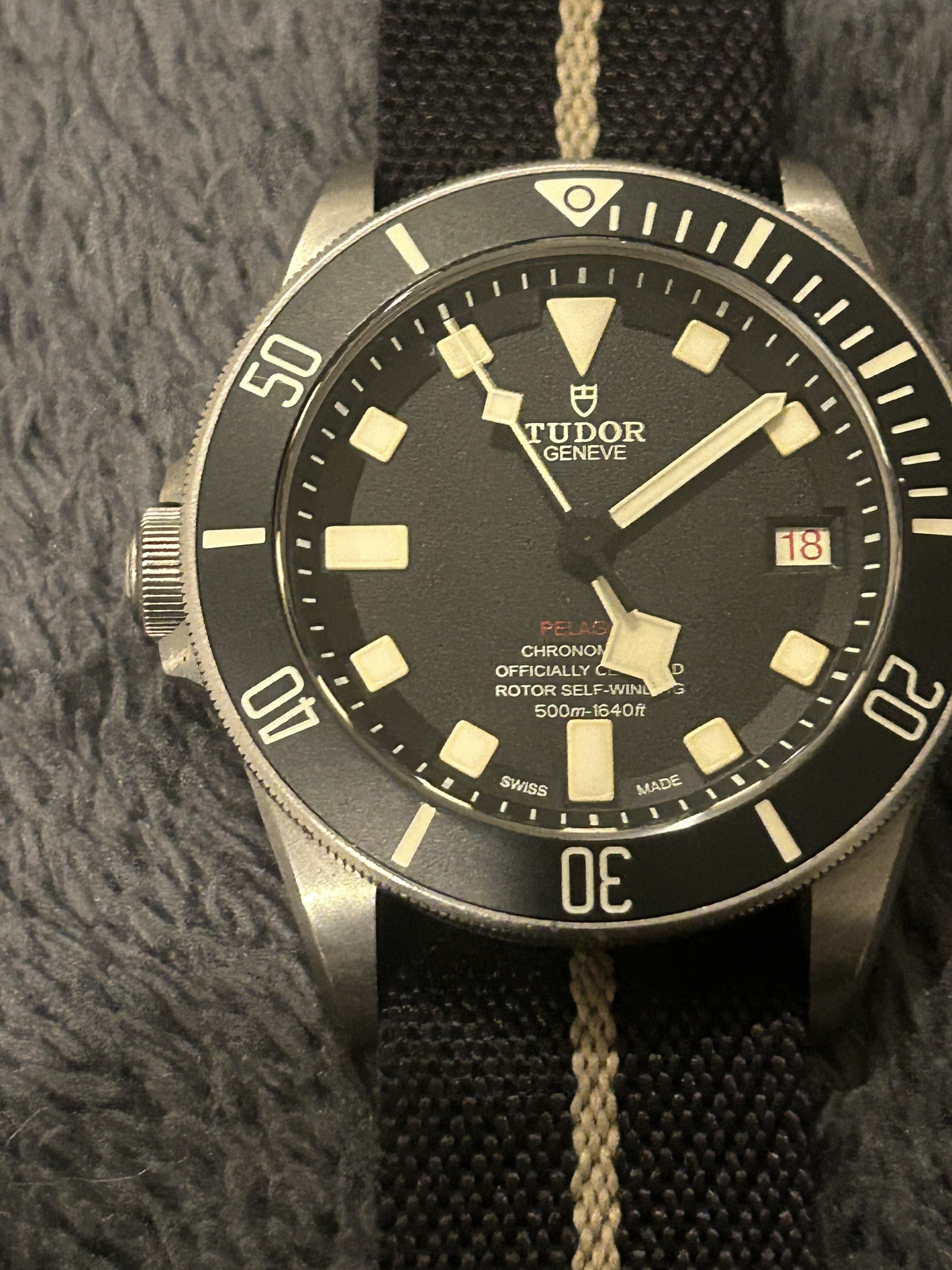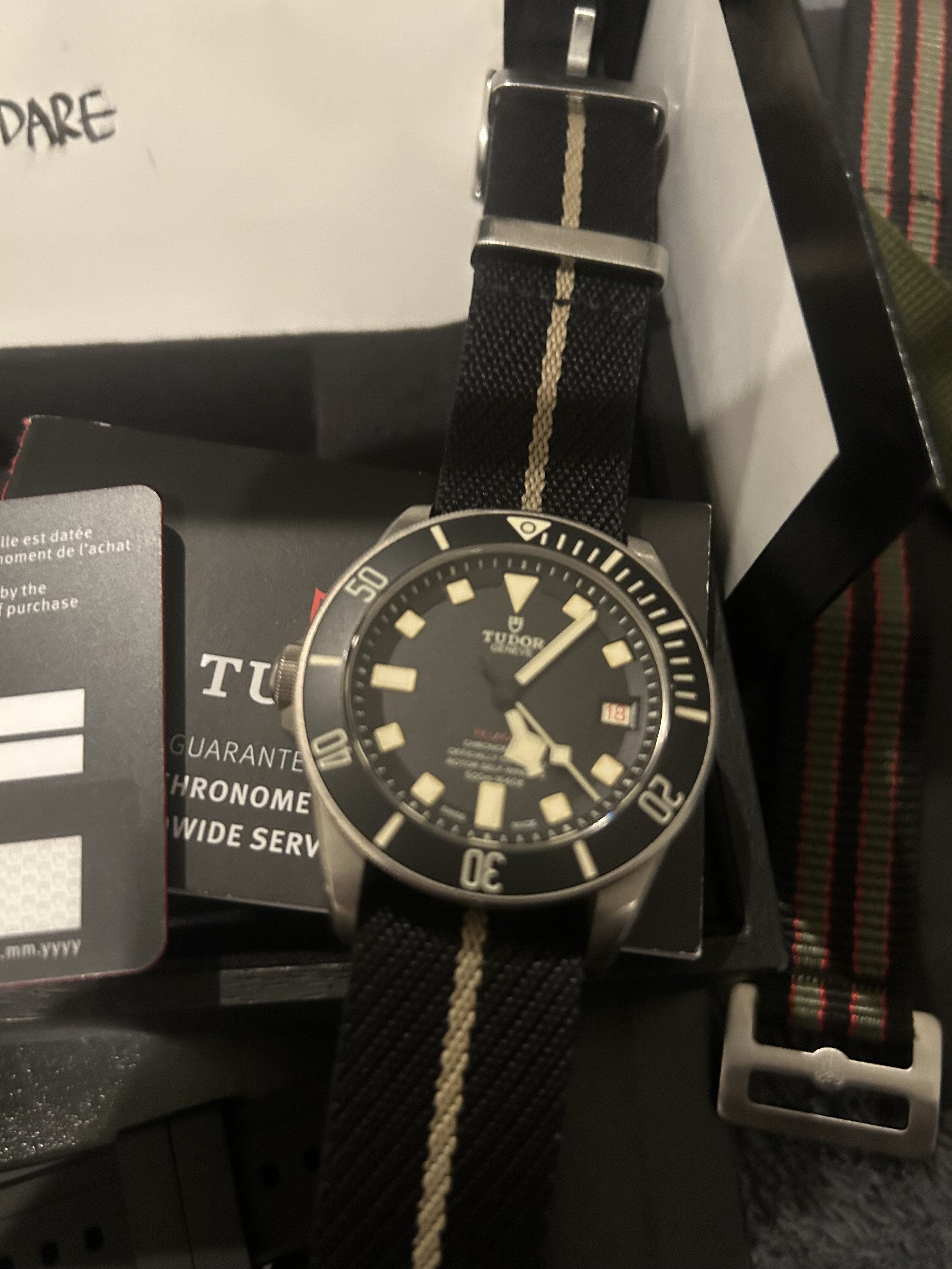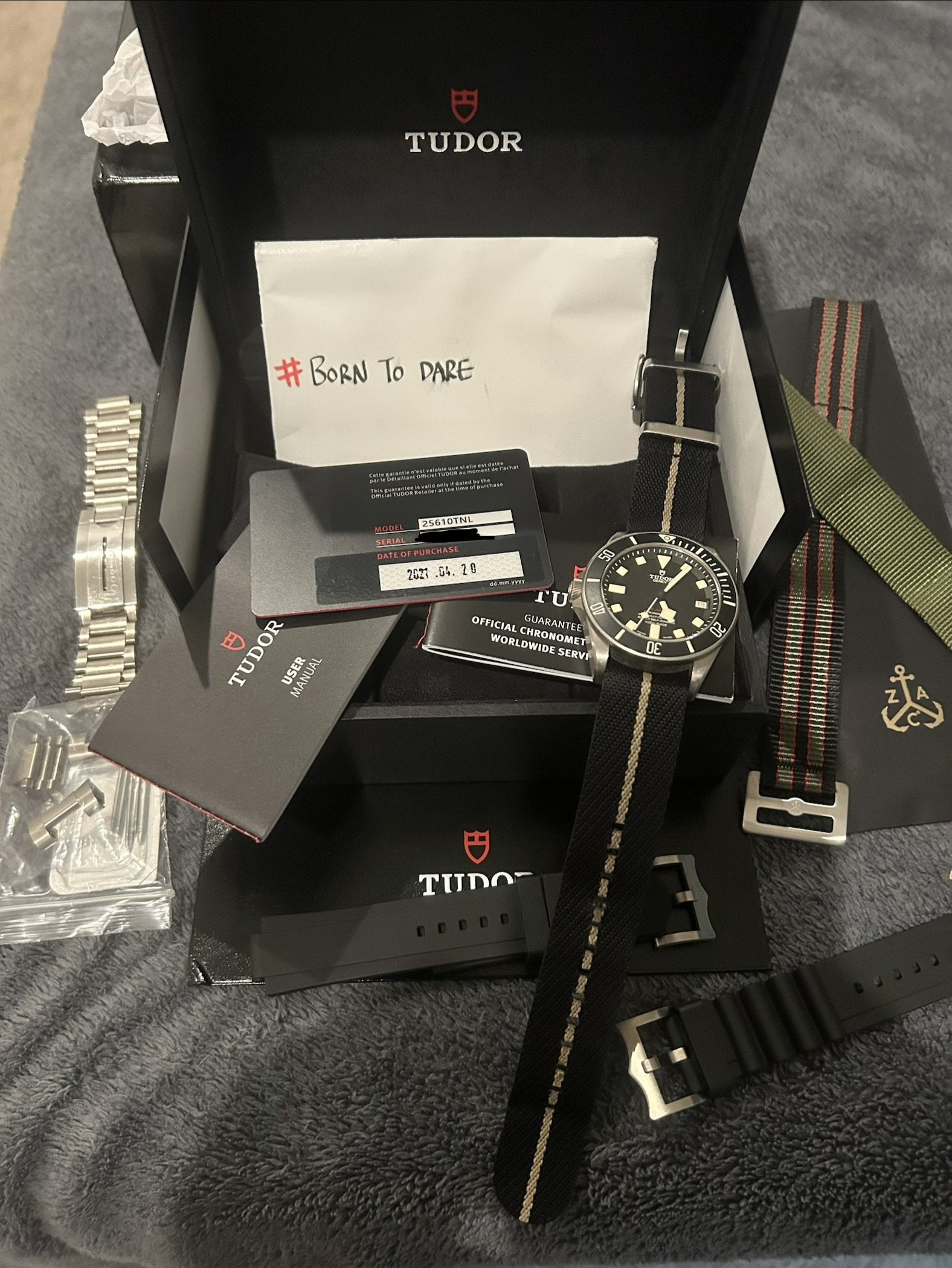 FSO…my 2021 dated Tudor Pelagos LHD TItanium. Reference 25610TNL. Full kit, double box, card, manual, bracelet, links, rubber dive strap with extension and a couple NATOs to include a like new ZA OTAN Connery strap. Some light wear marks and desk diving on the bracelet. The rubber is unworn. Has some light wear and desk diving marks but nothing severe or excessive. Awesome watch that functions as it should. Raising funds to chase the grail. NOW $3350 OBRO net to me and I’ll cover CONUS shipping with insurance. Overseas buyers must provide their own label. Willing to FaceTime, talk, and/or text with anyone serious. Will meet local buyers F2F. Plenty of pics and videos upon request. I have good feedback here and on multiple facebook groups as “Son of Fergus”