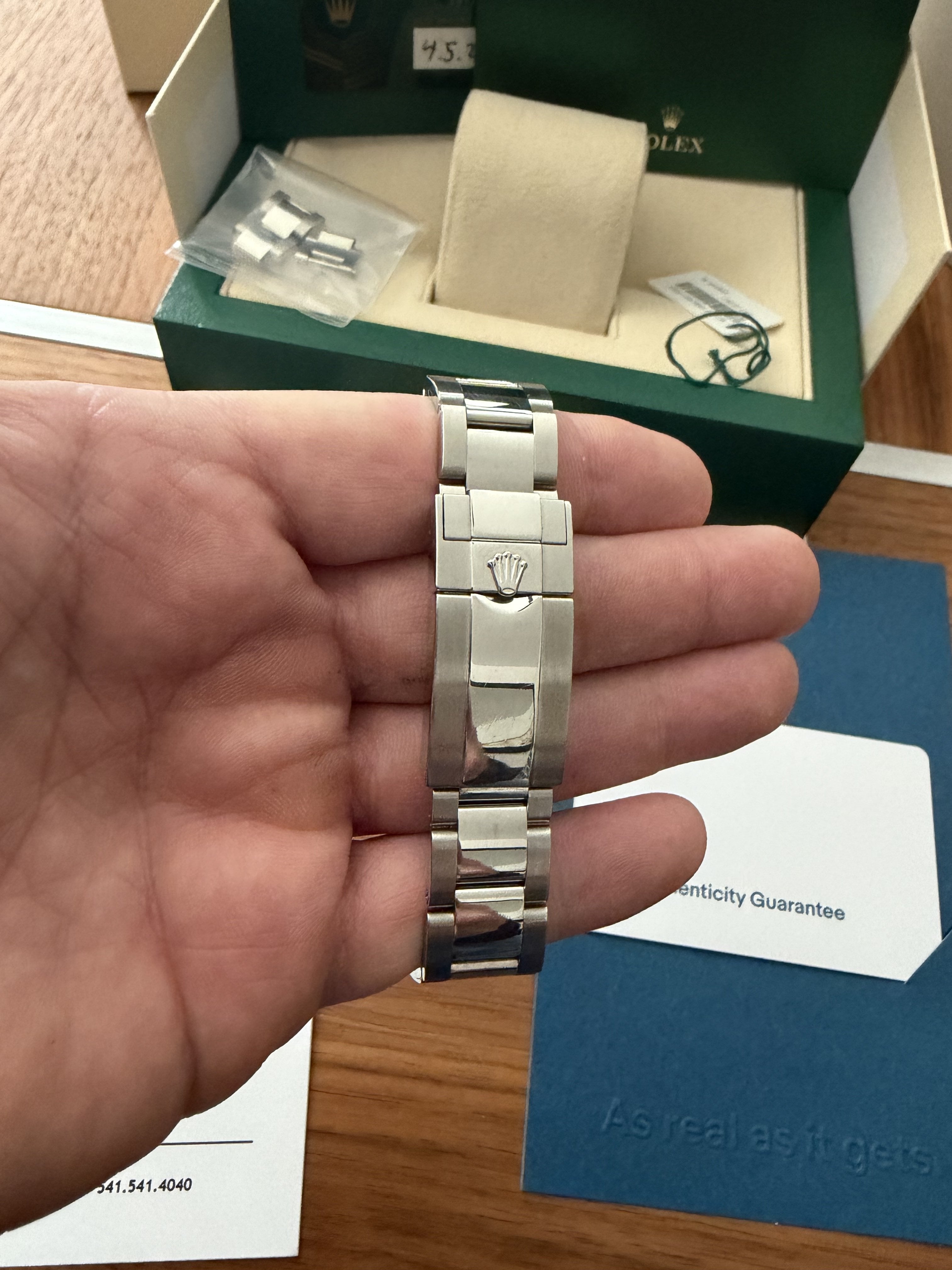 - Box/Papers: YES, all boxes, papers, warranties, instructions are included. Rolex warranty card dated 2023