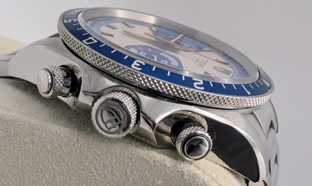 The Monte Carlo inspired heritage Chrono blue combines a retro 70s look with a beautiful color way and chrono functionality. It's the best of all worlds for a limited edition run.