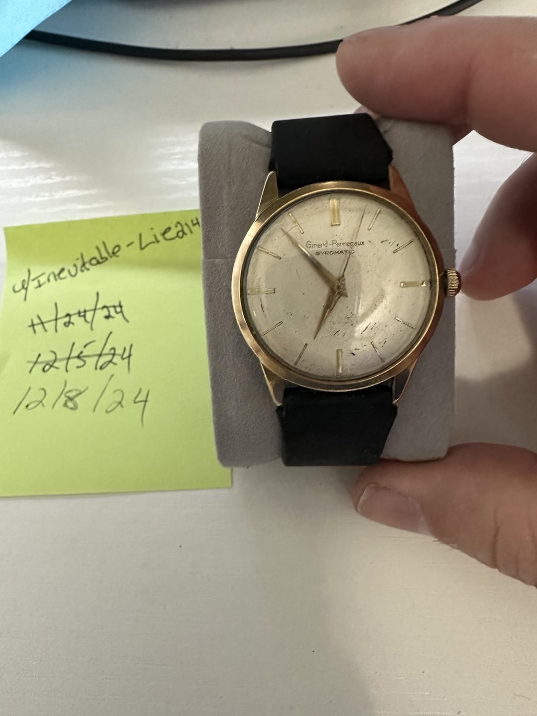 Vintage GP Gyromatic. Case in ok shape dial has some wear. Watch is running and keeping decent time. This one will need a service soon though as it can be hard to set the time. Asking $299 shipped sold as is