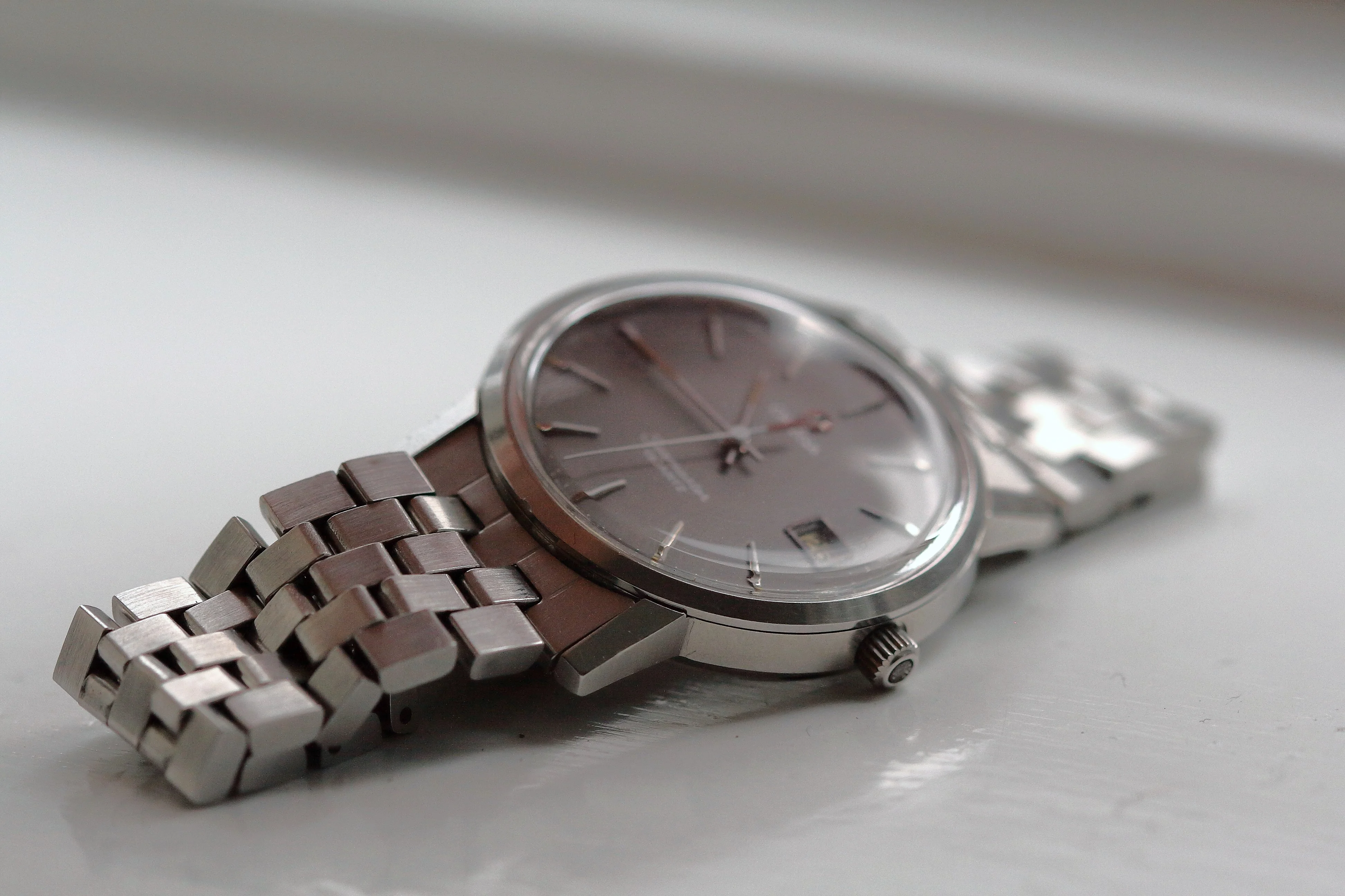 The 35mm steel case and (full length) bracelet are in very, very good shape, they do have some tiny marks here and there but most importantly for this reference still retain the very sharp edged finish. I originally bought this one due to the super sharp case and bracelet which really are outstanding. The special unsigned crown for time and date setting is functioning perfectly.