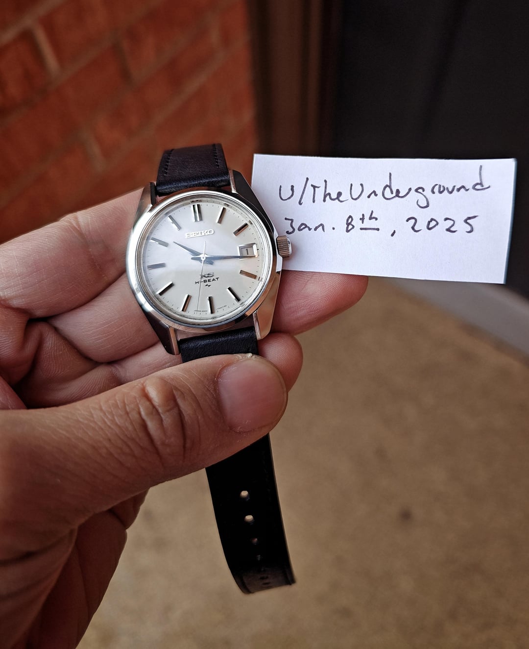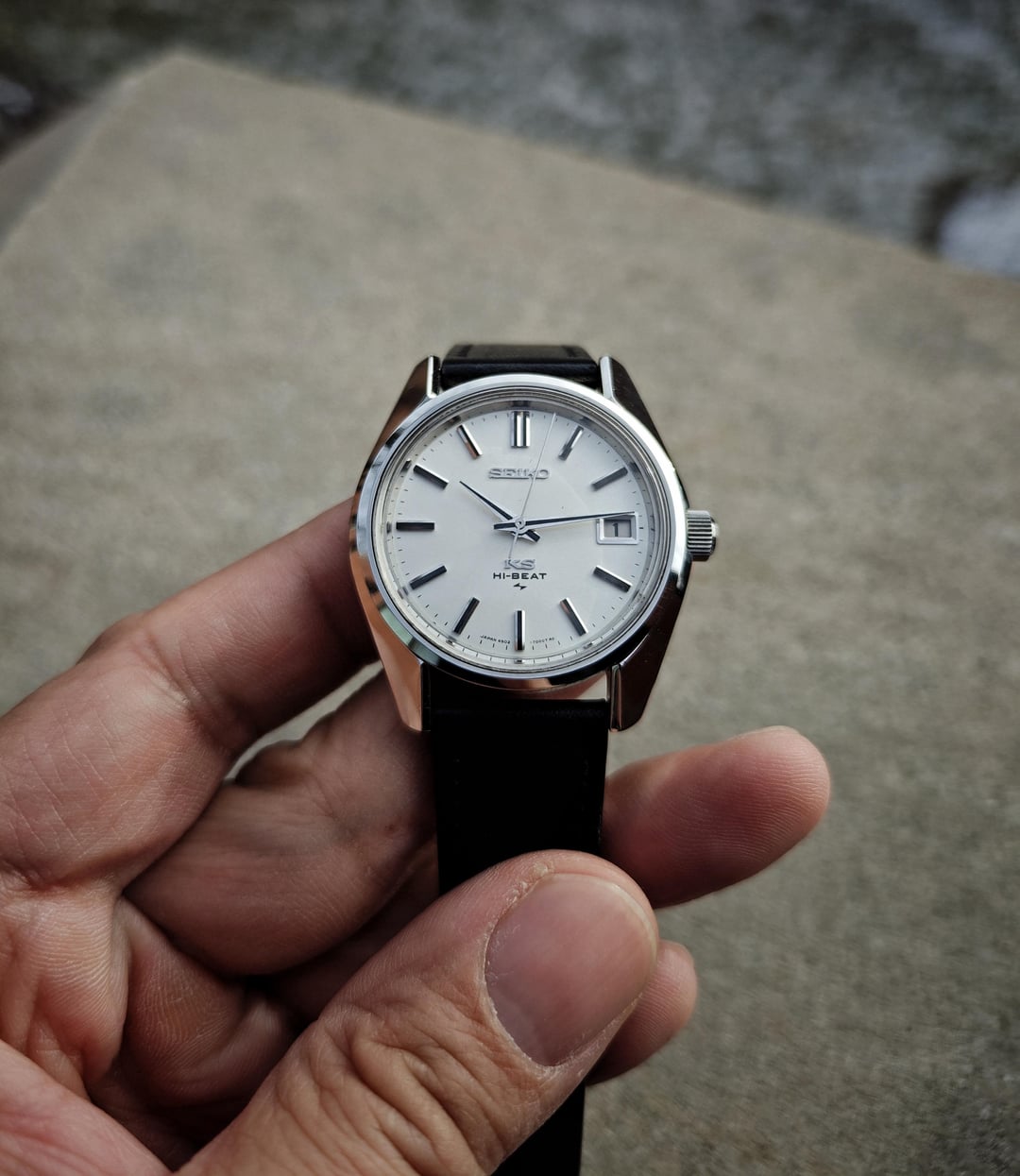 For sale is a **King Seiko 45KS 4502-7001** (Hi Beat 36000) from 1971\*\*.\*\* This piece was professionally serviced this year and expertly polished with a light touch. The crystal is perfect, edges & angles are razor sharp, no scratches anywhere, and the legendary hi-beat movement keeps excellent time. The gold medallion on the caseback is full and complete. No rust spots anywhere, perfectly clean, looks and functions like new old stock. Watch and black Kuoe leather strap only. This will be a perfect casual or dress watch for most wrists. **I've measured the dimensions as follows:** 36.7mm diameter 41.3mm lug to lug 9.7mm thick (including crystal) 18mm lug width **Asking $850 shipped anywhere in the U.S.** I take Zelle or Venmo (sorry, no PayPal) or Cash if you're willing to meet in Chicagoland. Not interested in trades. I've sold many watches here, including two 2024 Rolexes, a 2023 Speedmaster, Cartier Tank, Tudors, etc. I'm happy to have a video call or other forms of confirmation with you. Buy with confidence! Full album at: [https://imgur.com/a/0CznGPe](https://imgur.com/a/0CznGPe)