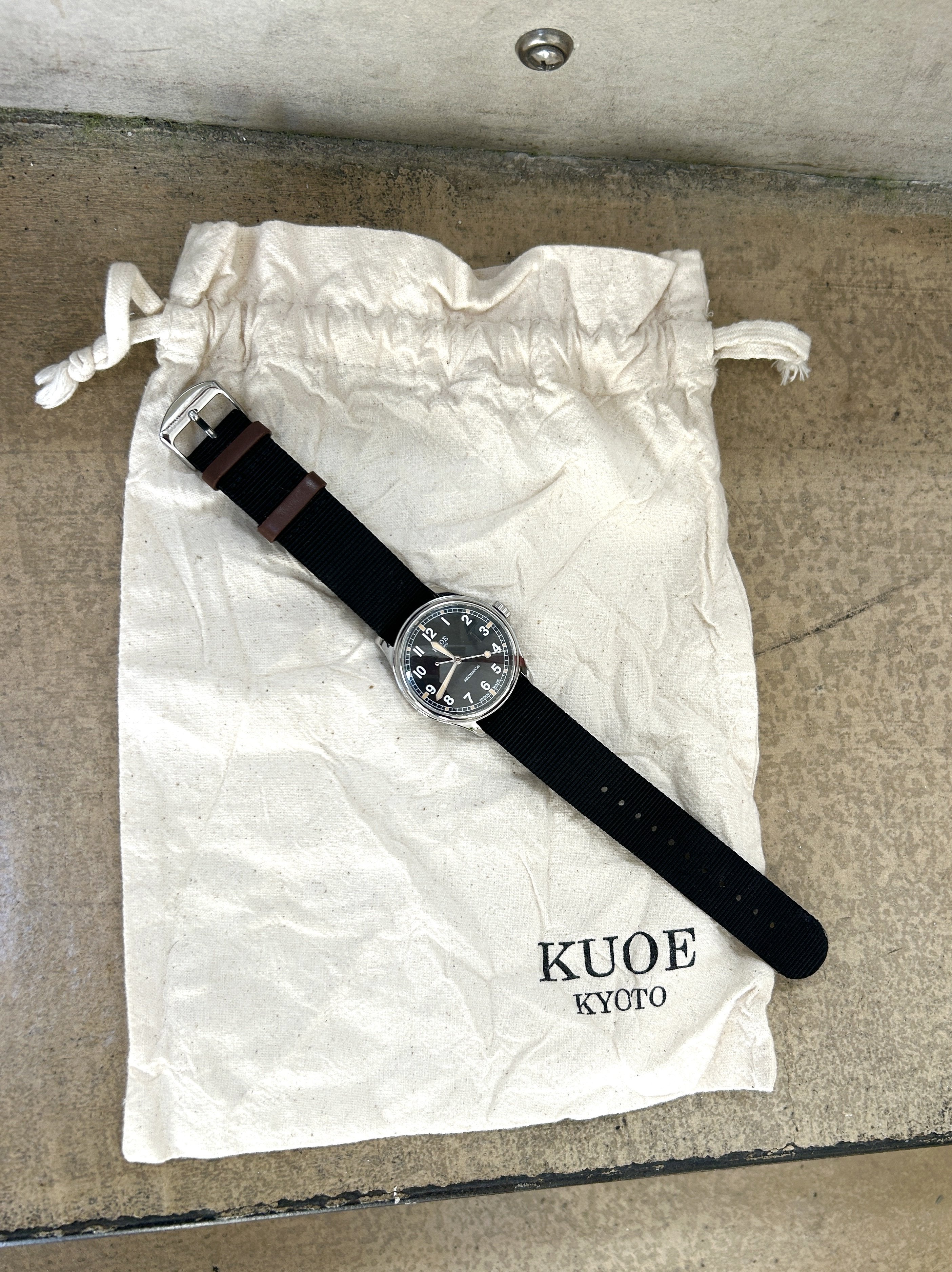 For sale is a Black dialed Kuoe Old Smith 38mm. This sale is for Watch and bag only. Excellent condition and a very nice textured dial with vintage inspired indices.