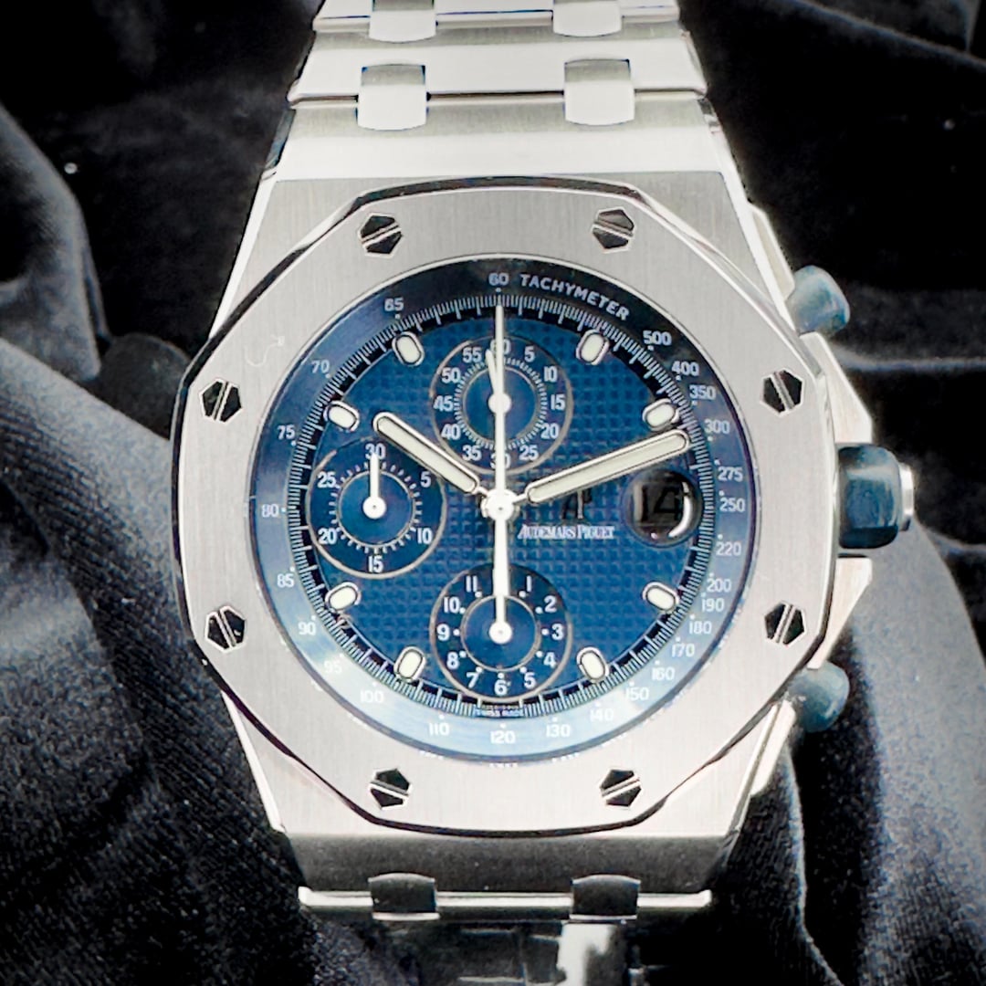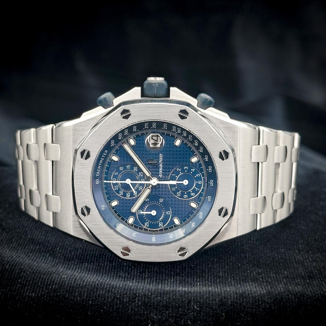 "Own the Watch That Changed the Game" Step into the world of horological mastery with the Audemars Piguet Royal Oak Offshore Chronograph Ref. 25721ST.OO.1000ST.01 — the piece that redefined luxury sport watches. Born from the visionary mind of Gerald Genta, the Royal Oak design was a daring leap into the future of watchmaking. Its bold octagonal bezel, integrated steel bracelet, and industrial elegance evolved into the Offshore, a watch so audacious it earned the nickname "The Beast." This is more than a timepiece — it's a legacy. Introduced in 1993, the Royal Oak Offshore took Genta's groundbreaking 1972 design and amplified it, pushing boundaries with its larger size and unapologetic presence. "The Beast" challenged conventions, combining rugged durability with refined artistry. Its meticulous craftsmanship and unparalleled detail make it a true icon of modern luxury. Whether you're closing deals or chasing adventure, this watch keeps pace with your every move, proving that boldness and elegance can coexist without compromise. For the one who dares to dream and achieves, "The Beast" isn't just an accessory; it’s your ally in a world of success. Owning this masterpiece isn't just about wearing a watch; it’s about embracing a lifestyle where limits are broken, and excellence is non-negotiable. Secure your legacy today. Contents: Watch, Instruction Manual, Warranty Booklet, Inner Wooden Box, Outer AP Box Timestamp: [https://www.dropbox.com/scl/fi/e49qtb62s1t0lv6v4s5lp/IMG\_4046.jpg?rlkey=59vk0oqxtymy9p141rqumq1gs&st=h3csqb51&dl=0](https://www.dropbox.com/scl/fi/e49qtb62s1t0lv6v4s5lp/IMG_4046.jpg?rlkey=59vk0oqxtymy9p141rqumq1gs&st=h3csqb51&dl=0) Price: $21,995 🔄 Trades always considered 📍 Dallas, TX 🚀 We ship fully insured overnight via FedEx Free of Charge 💯% being as described and authentic 📣 References available across many platforms, sites, and groups.