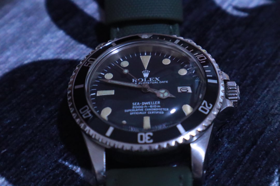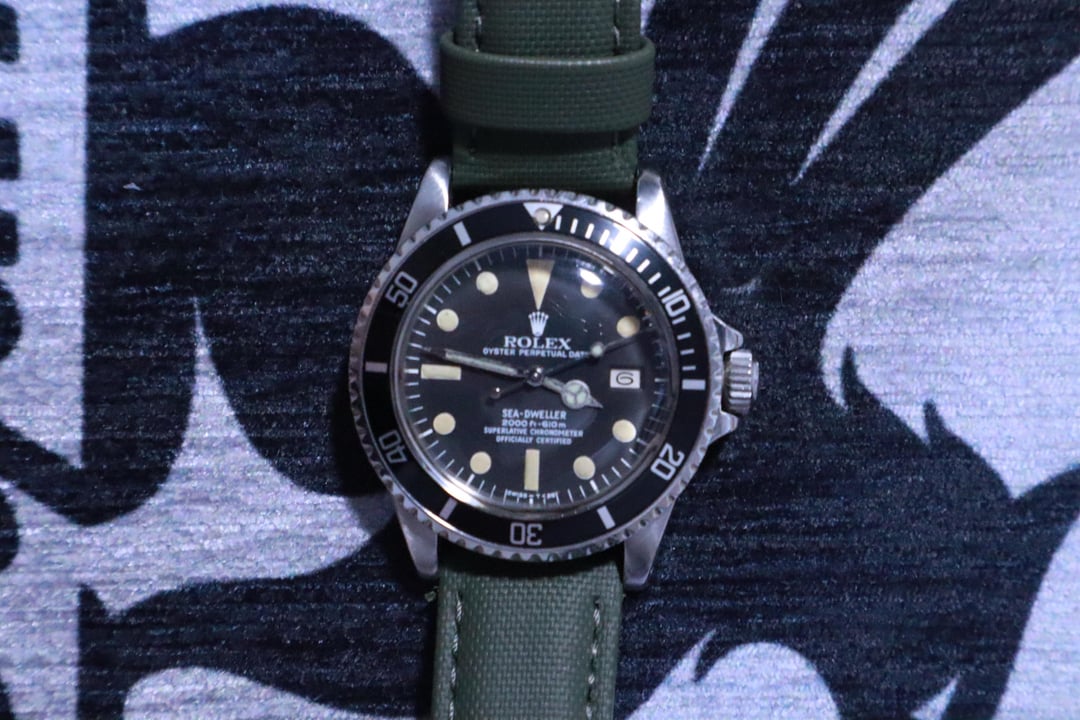 Good Afternoon! Up for sale today is my Great White that I have loved for quite some time. It is time for me to get something else to love, and im hoping this can go to a good home. Details: The Sea Dweller features a Self winding movement, Calibre 1570 in a 40mm case. The dial has creamy yellow markers, re-lumed, hands are definitely re-lumed pre 1997 which was the date of purchase. The head is in amazing condition for its age, and was never polished after I got it. There are no major dents, and there is only micro scratches on the oyster bracelet and case which is indicative of being well loved. Case also has 99% of a *Lucky Crown*, which is awesome. **Price: $13,500** PLEASE READ! Currently I have a third-party strap on, which looks great. I also have the original Oyster band with an extra link. But... One end link and spring bar needs replaced as one of them is bent and the spring bar is broken. This is the only issue, and as such my original list price that was planned has been reduced by $500 to account for possible repair/ purchase of a new end link and spring bar as this issue occurred recently. I am also willing to negotiate a possible trade, but keep in mind I am actively looking for a Rolex 1803 with a black dial for my personal collection and this selling price will go directly toward that purchase. I am currently accepting Wire transfer. We can negotiate payment arrangements if an interested buyer is secured. Thank you so much for reading! Timestamp for Contingency: [https://imgur.com/a/wNRGOS1](https://imgur.com/a/wNRGOS1)
