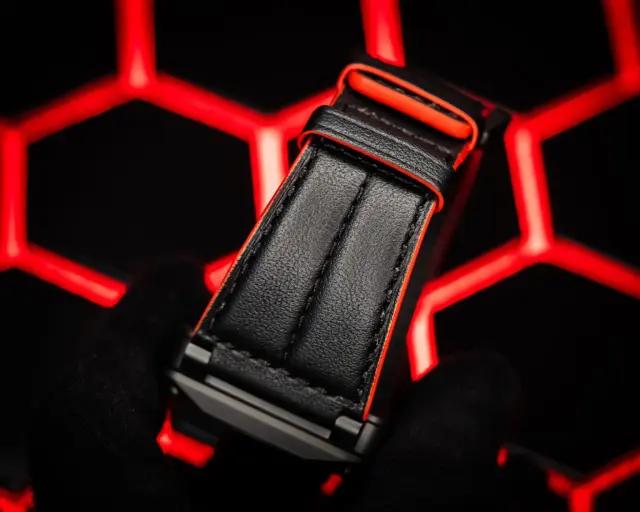 - Bracelet – OEM black & red calfskin, and OEM black synthetic straps.
