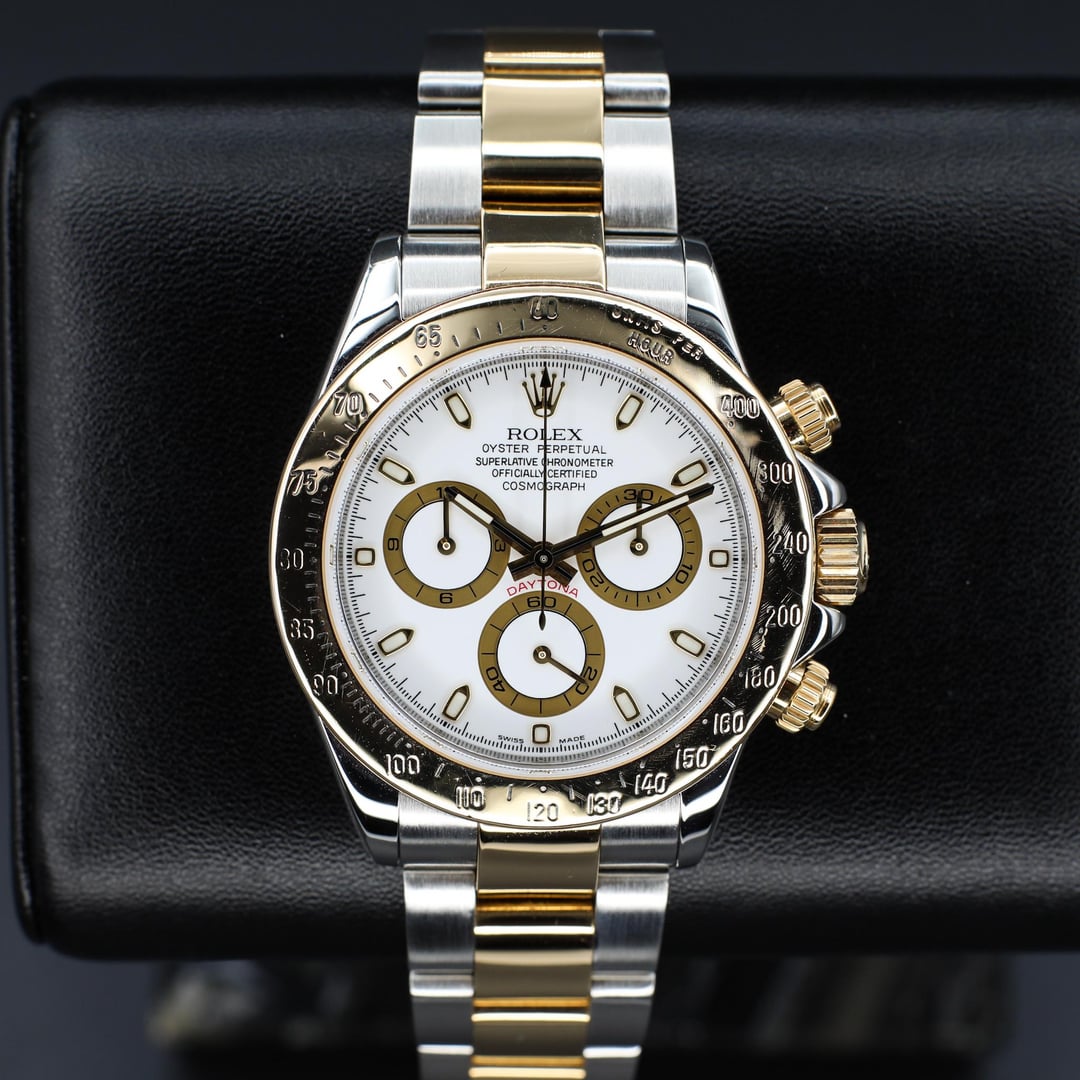 2007 MINT Rolex Daytona 116523 Chronograph Black Dial Steel Yellow Gold Two Tone