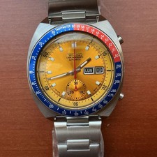 | SEIKO 61396002 Chronograph POGUE Automatic Watch Mens Yellow Dial Vinta G2U shipcycle (33631) |