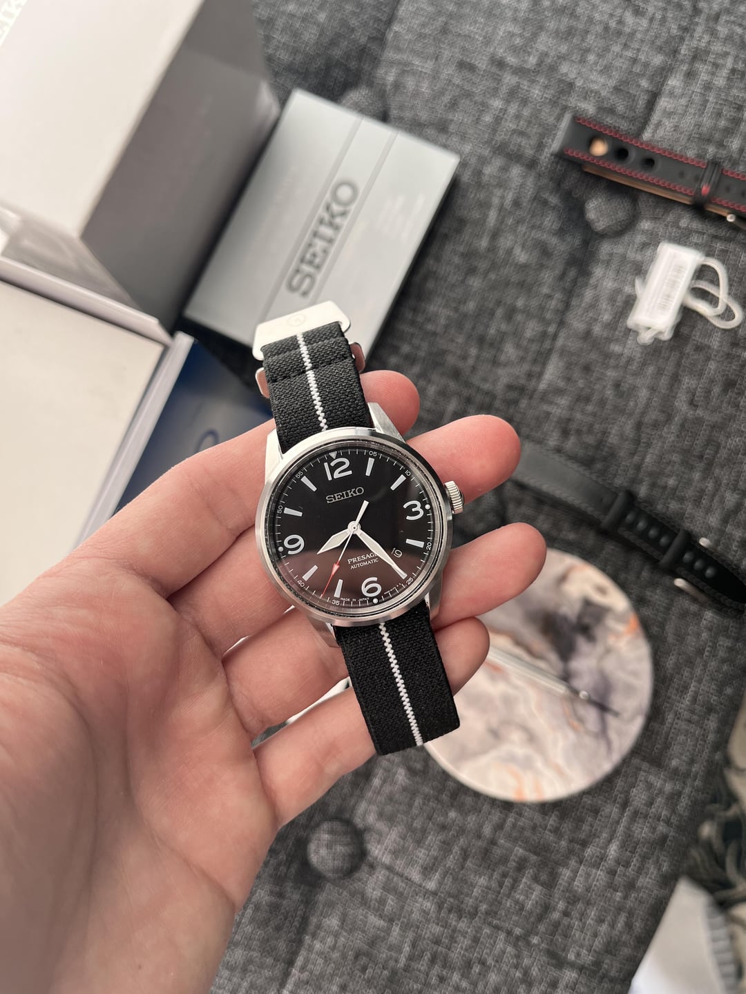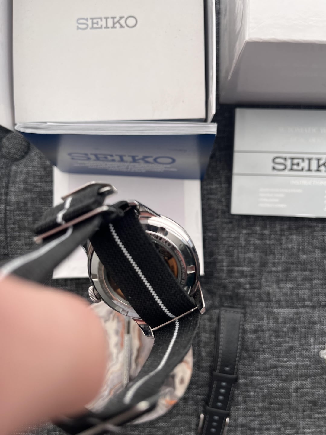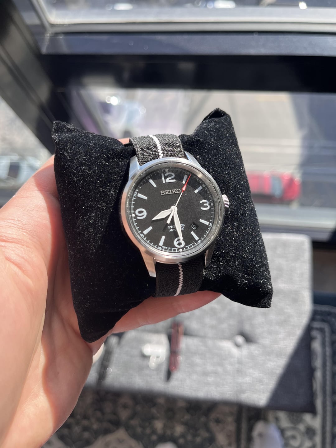 Hello Reddit WatchExchange, First post on here, and looking to sell my Seiko SRPB67J1, a rare JDM Seiko that one could argue is a nice budget alternative to the Sinn 556a RS and the Tudor Ranger. A rarely seen and unique watch, I have enjoyed my time with it greatly. It’s got a great sporty character to it, and is a strap monster. The reason for my selling is that I want to consolidate my collection as I save up for a dream watch to celebrate an upcoming milestone. This watch is in phenomenal condition, with minor hairline scratches along the polishing. I would rate the overall condition of the watch as a 9-9.5 out of 10, Near Mint. No scratches on the sapphire crystal, no dings nor dents to the metal. The watch recently had its hands reset this past fall by a local chicagoland watchmaker. Otherwise, during my time owning and enjoying it, I have not encountered any issues. I have included the following: * Original Box, manuals, outer box * Original OEM black leather strap (I personally didn’t like it, so I have worn it on just about anything else) * Longislandwatch Elastic Band (aka their budget erika’s strap) * Debeer Rally Black Leather Strap w/ Red Contrast Stitching Spec Wise from Seiko’s Website: * Diameter - 41.6mm * Thickness - 11.3mm * Lug to Lug - I would say around a 48.5mm, no official data but that would be my guesstimate * Movement - 4R35 * Water Resistance - 100m I am asking $550 shipped, US only, PayPal G&S only. I will happily cover the transaction fees. This is my first sale and transaction on watchexchange, so I’d happily FaceTime and or phone call/text if desired. I will ship within 2 days of payment and will provide tracking and updates, along with packing videos. Located in Chicago, so would be open to a face-face meetup to, both in the city and the Chicagoland suburbs. There have been others sold in the 400 range and also on Feebay, but those are heavily used with so many scratches you would think a cat got to them. You will not find a better condition watch with a complete set anywhere, unless you can find NOS (new old stock). Thanks for looking! :)