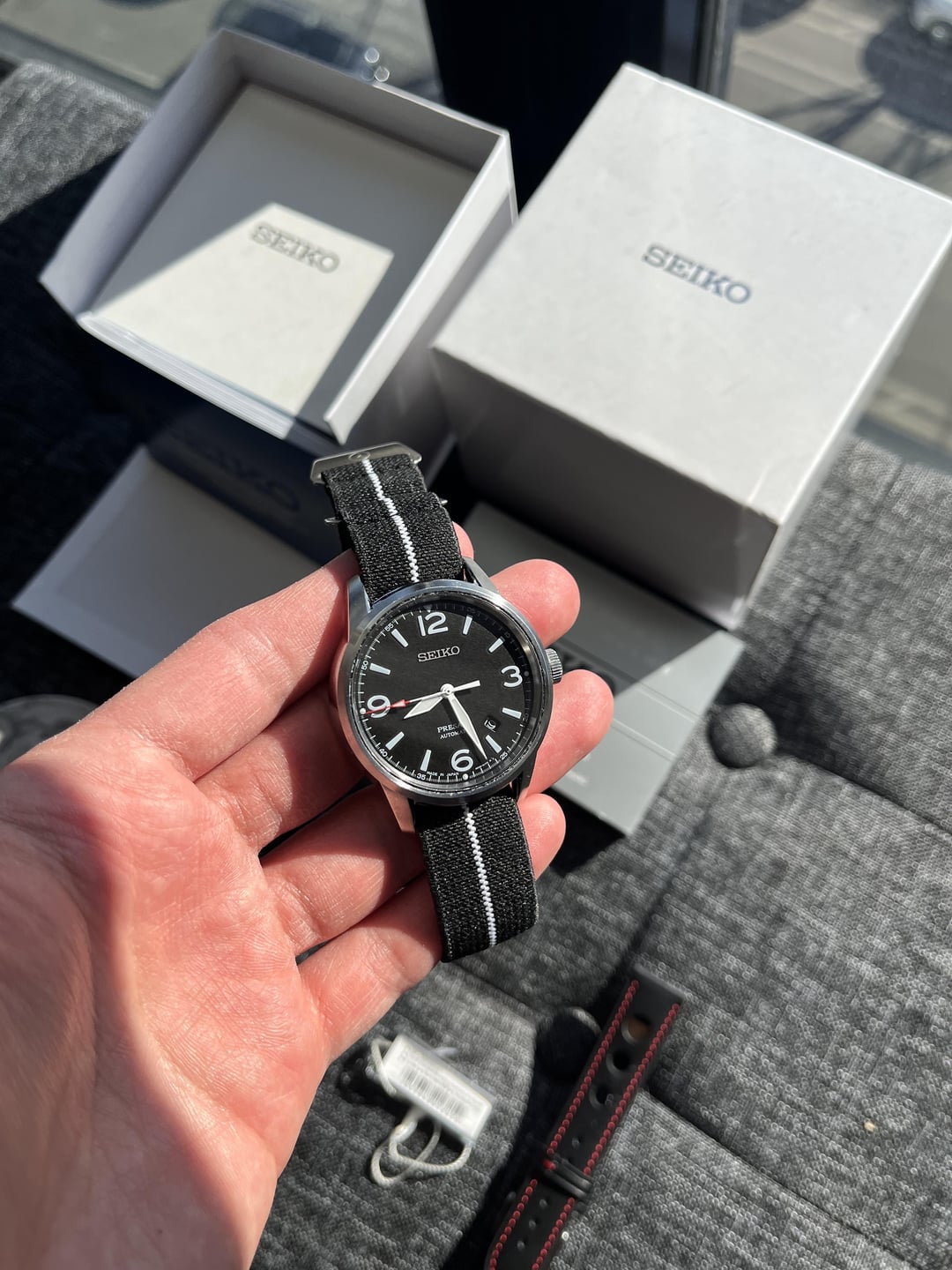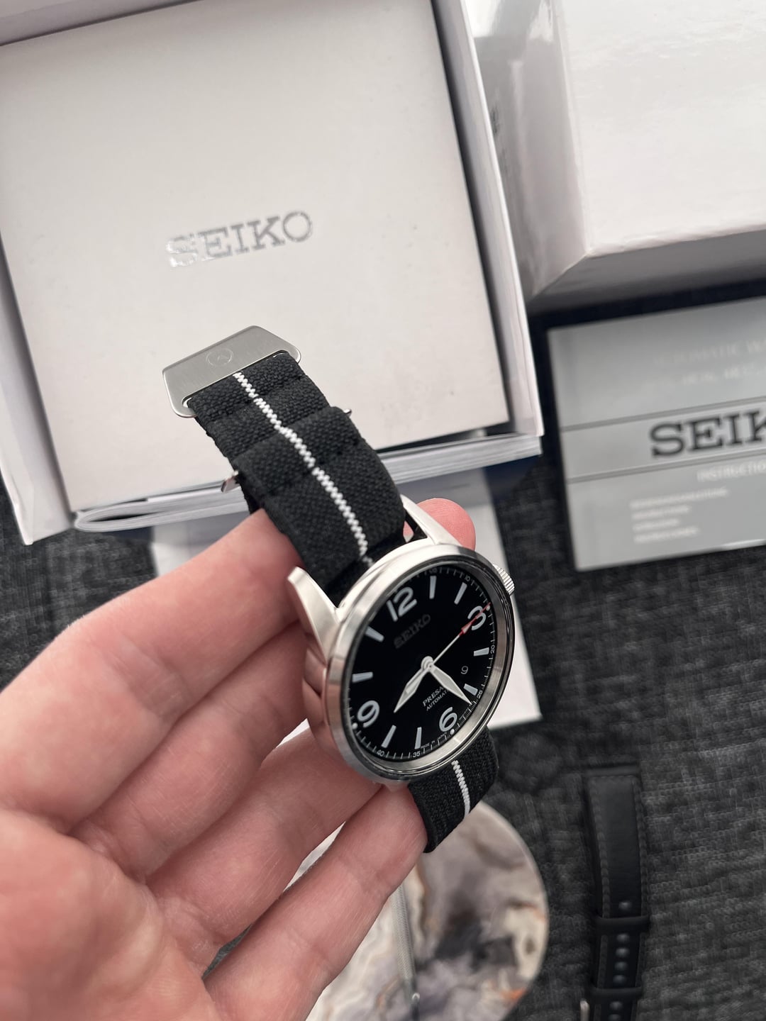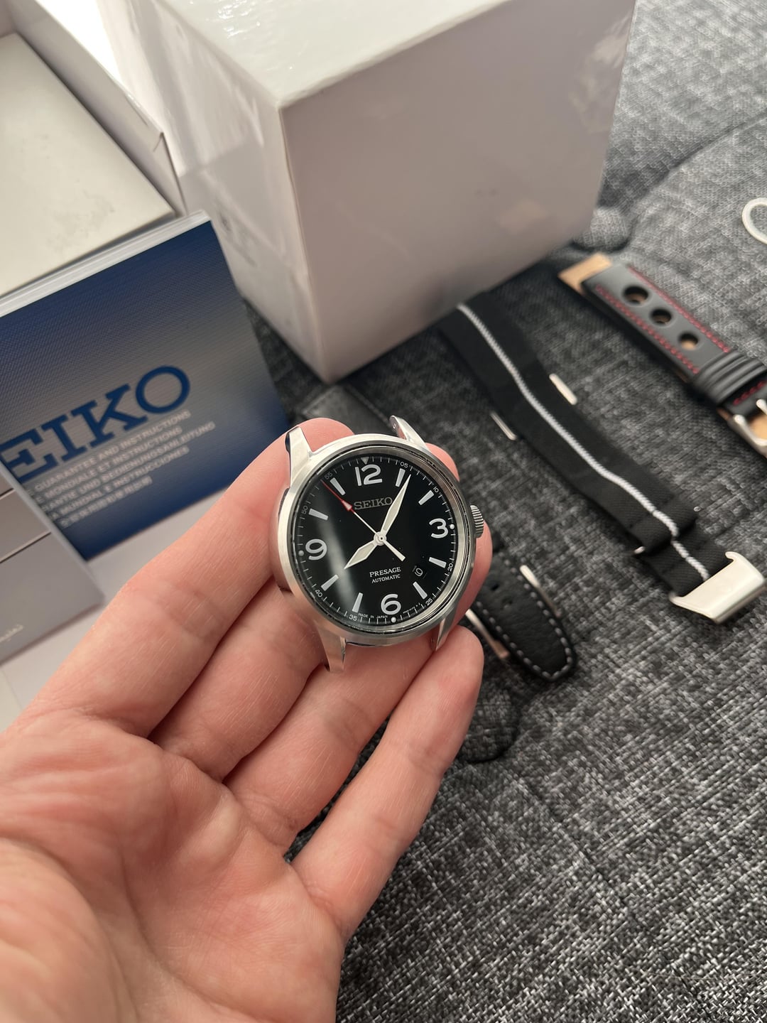 Hello Reddit WatchExchange, First post on here, and looking to sell my Seiko SRPB67J1, a rare JDM Seiko that one could argue is a nice budget alternative to the Sinn 556a RS and the Tudor Ranger. A rarely seen and unique watch, I have enjoyed my time with it greatly. It’s got a great sporty character to it, and is a strap monster. The reason for my selling is that I want to consolidate my collection as I save up for a dream watch to celebrate an upcoming milestone. This watch is in phenomenal condition, with minor hairline scratches along the polishing. I would rate the overall condition of the watch as a 9-9.5 out of 10, Near Mint. No scratches on the sapphire crystal, no dings nor dents to the metal. The watch recently had its hands reset this past fall by a local chicagoland watchmaker. Otherwise, during my time owning and enjoying it, I have not encountered any issues. I have included the following: * Original Box, manuals, outer box * Original OEM black leather strap (I personally didn’t like it, so I have worn it on just about anything else) * Longislandwatch Elastic Band (aka their budget erika’s strap) * Debeer Rally Black Leather Strap w/ Red Contrast Stitching Spec Wise from Seiko’s Website: * Diameter - 41.6mm * Thickness - 11.3mm * Lug to Lug - I would say around a 48.5mm, no official data but that would be my guesstimate * Movement - 4R35 * Water Resistance - 100m I am asking $550 shipped, US only, PayPal G&S only. I will happily cover the transaction fees. This is my first sale and transaction on watchexchange, so I’d happily FaceTime and or phone call/text if desired. I will ship within 2 days of payment and will provide tracking and updates, along with packing videos. Located in Chicago, so would be open to a face-face meetup to, both in the city and the Chicagoland suburbs. There have been others sold in the 400 range and also on Feebay, but those are heavily used with so many scratches you would think a cat got to them. You will not find a better condition watch with a complete set anywhere, unless you can find NOS (new old stock). Thanks for looking! :)